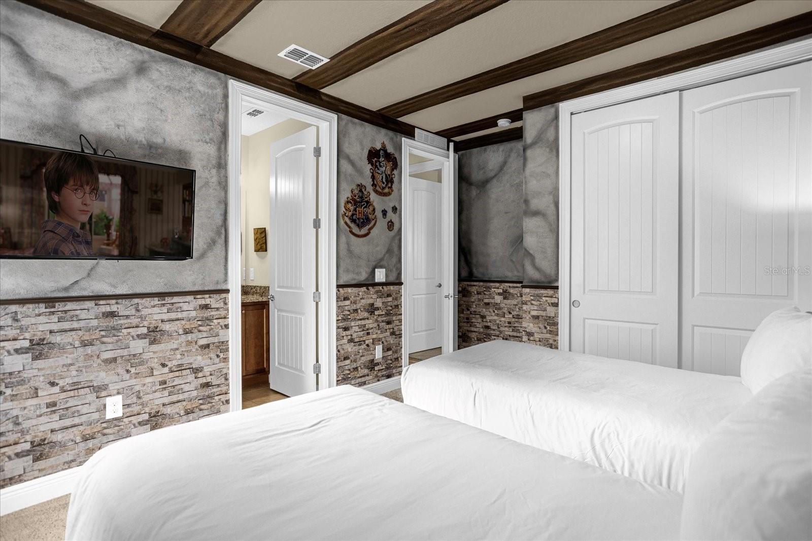 (Preço reduzido. Preço para VENDA). MENOS DE 6 MILHAS DA DISNEY E MARGARITAVILLE, A POUCOS MINUTOS DE OUTROS PARQUES TEMÁTICOS, E.G. ESTÚDIOS UNIVERSAIS, A UM QUARTEIRÃO DA ZIP LINE DO ORLANDO TREE TREK PARK E MUITO MAIS! Diversão, diversão, diversão aguarda o comprador, que está pensando em um excelente retorno sobre o investimento em aluguéis de curto prazo/Airbnb, desta casa com piscina de luxo ultraluxuosa, projetada com bom gosto e totalmente mobiliada em um dos principais destinos de aluguel familiar de Orlando Encore - lar de proprietários de celebridades, o mais famoso dos quais é a lenda da NFL Dan Marino. Localizada neste Reunion Encore Resort fechado 24 horas por dia, esta residência de dois andares apresenta acabamentos de design impressionantes para um estilo de vida relaxante e uma experiência de fuga inesquecível, incluindo todas as bancadas de granito, uma bela cozinha ISLAND, lindo piso, quarto todo decorado inspirado em Harry Potter, sala Disney do Mickey Mouse e Minnie Mouse, uma sala de cinema no loft completa com TV ENORME e um canto de pipoca. Piscina privativa cintilante, spa convidativo e amplo deck pavimentado com área de estar com varanda coberta são perfeitos para atividades familiares e lembranças de férias. ESTA CASA VEM COM PAINÉIS SOLARES TOTALMENTE PAGOS, NOVO AC E NOVO AQUECEDOR DE PISCINA. As atualizações de qualidade incluem exterior de pedra na frente, calçada pavimentada, piso de cerâmica nas principais áreas de estar internas, luminárias modernas, bancadas de granito e muito mais! A cozinha totalmente equipada conta com eletrodomésticos de aço inoxidável e amplo espaço na bancada para acomodar estadias multifamiliares. As comodidades de classe mundial incluem parque aquático, academia de ginástica, restaurantes, bares, piscina infantil, piscina para adultos e muito mais... no extraordinário clubhhouse. Esta é a casa de férias / casa AirBNB de 'prateleira exclusiva' que a maioria dos compradores deseja possuir.