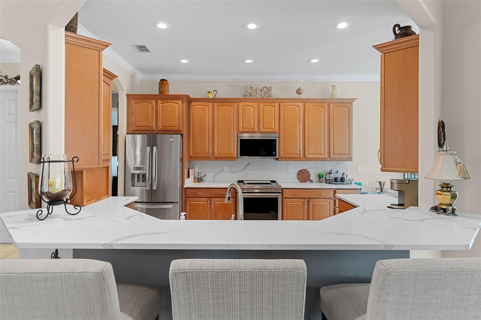 CARRINHO DE GOLFE INCLUÍDO NA VENDA DA CASA!! Situada no coração da premiada comunidade Solivita 55+, esta lindamente mantida casa com CAMPO DE GOLFE e PISCINA PRIVADA DE ÁGUA SALGADA em Verona oferece a combinação perfeita de conforto, elegância e vida ativa. A partir do momento em que chegar, você ficará impressionado com a atratividade do meio-fio, o paisagismo exuberante e a entrada convidativa. Entre para descobrir tetos altos e uma planta aberta, com 3 quartos, 2,5 banheiros, um escritório doméstico e 2.442 áreas de estar cuidadosamente projetadas. A cozinha atualizada tem bancadas de quartzo totalmente novas e eletrodomésticos atualizados com menos de um ano. A espaçosa suíte principal oferece um retiro tranquilo com 2 grandes closets, portas francesas que dão para o pátio e um banheiro privativo com pias duplas e um chuveiro grande de vidro sem moldura. Ao lado da garagem há uma despensa com uma geladeira extra grande e uma pia. Aproveite a vida na Flórida o ano todo em seu pátio com vista para a piscina de água salgada e o campo de golfe no seu quintal. Destaques adicionais incluem piso de cerâmica, sistema de alto-falantes em toda a casa e varanda, painéis solares para piscina, sancas e acabamentos atualizados nas janelas e portas, dando um toque adicional de elegância. Viver em Solivita significa acesso a comodidades de classe mundial, incluindo 2 campos de golfe profissionais, 14 piscinas, academias de ginástica de última geração, quadras de pickleball e tênis, trilhas para caminhada, mais de 200 clubes sociais e um charmoso Village Center com restaurantes, lojas e eventos regulares. Isto é mais do que uma casa – é um estilo de vida. Não perca a chance de morar em uma das mais de 55 comunidades principais da Flórida! Agende hoje mesmo seu tour privado. A casa é vendida totalmente mobilada para maior comodidade!