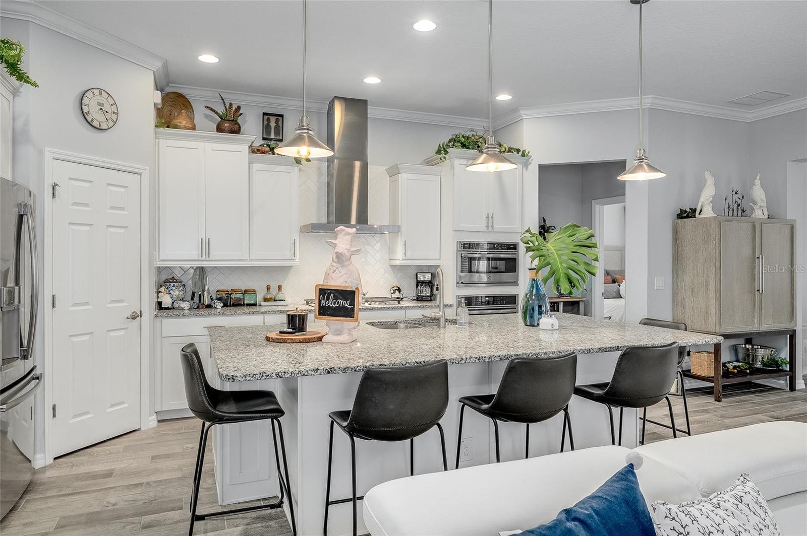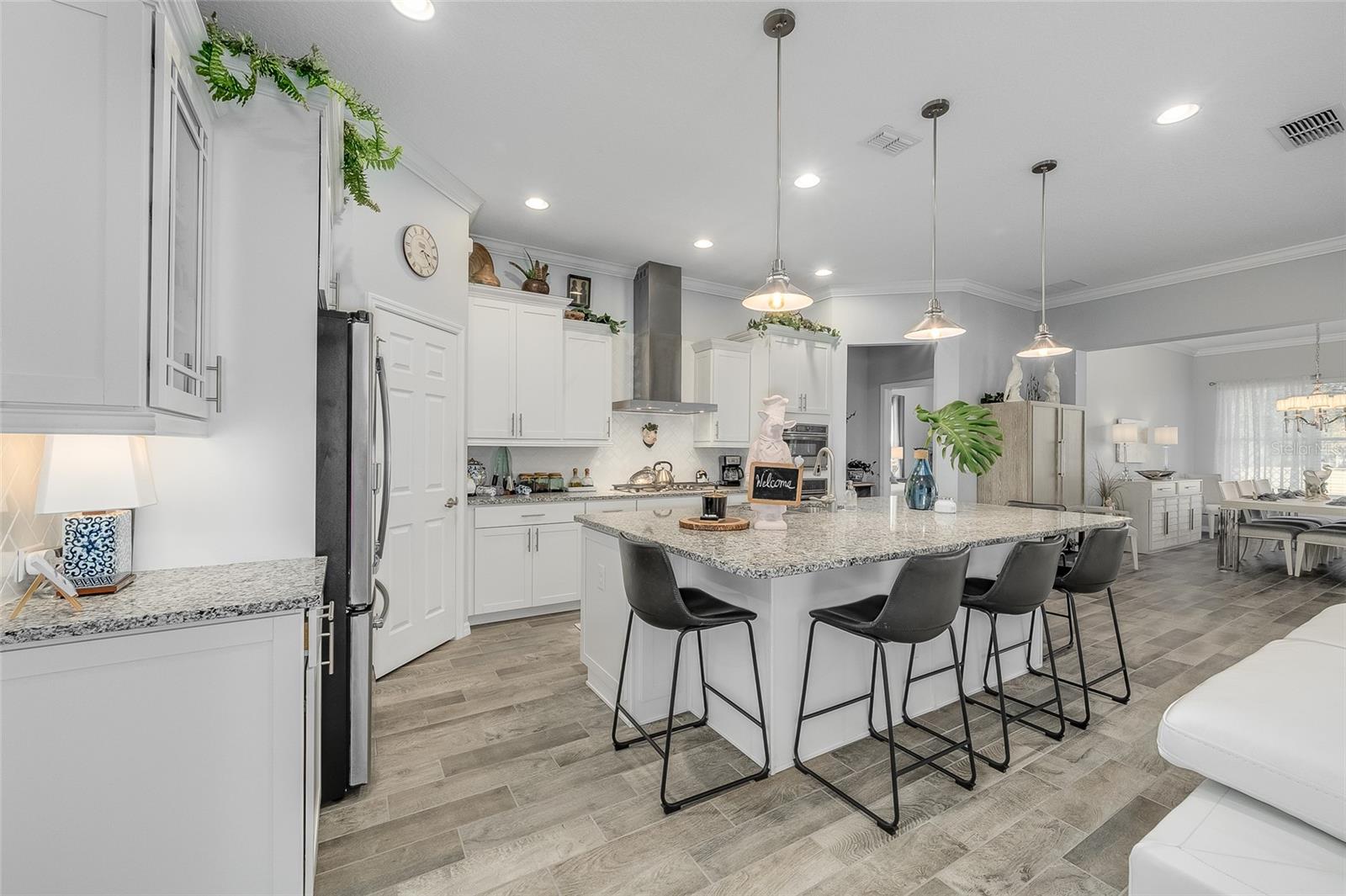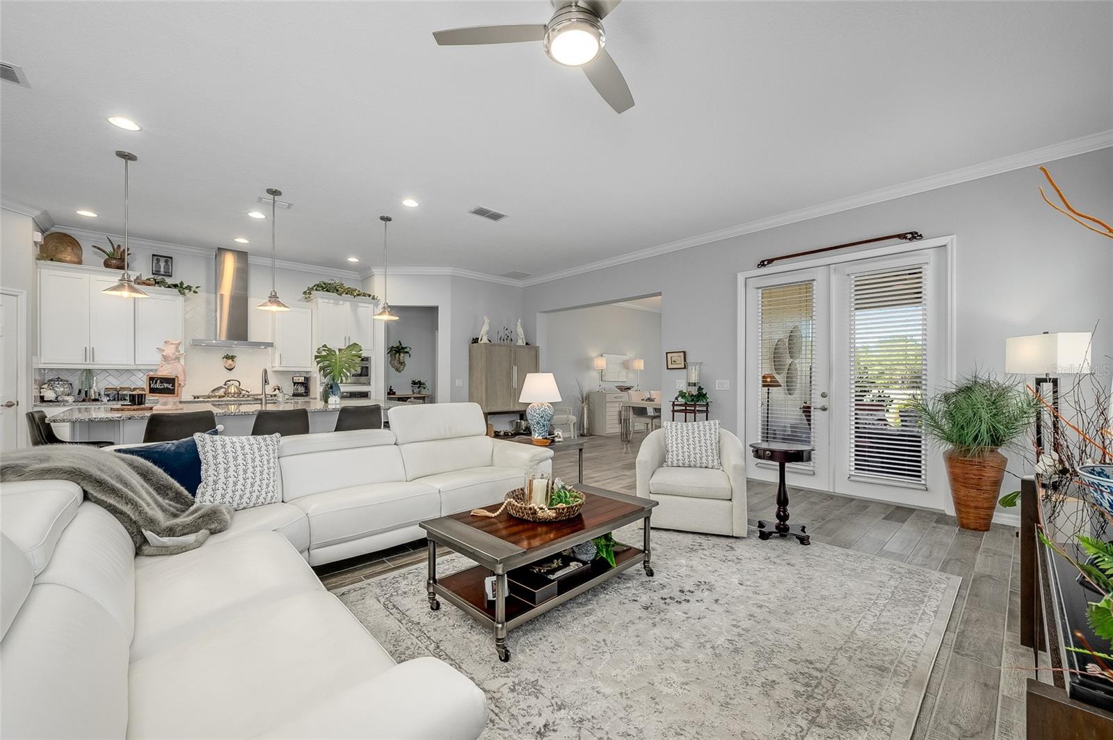 GRANDE AJUSTE DE PREÇO! Venha visitar este modelo de Barbados do condomínio fechado Four Season 55+ localizado na porta do Walt Disney World. O proprietário ampliou este modelo que ampliou o quarto principal, a sala de jantar e a varanda. Esta bela casa tem vista para o primeiro buraco do campo de golfe profissional de 18 buracos Mystic Dunes. Ao entrar, você verá o orgulho da propriedade brilhar! Dos tetos de 3 metros de altura às sancas, aos azulejos com aparência de madeira nas áreas de estar e úmidas e ao carpete macio nos quartos, você ficará impressionado! A cozinha tem fogão a gás, ampla despensa de canto, bancada em granito, grande ilha que funciona como balcão de pequeno almoço. O proprietário optou por abrir o 3º quarto original para usar como escritório e escritório, mas dará uma concessão para convertê-lo novamente em um quarto completo. O quarto de hóspedes tem um banheiro completo do lado de fora da porta. A lavanderia interna facilita a vida. Garagem dupla com área de estacionamento para carrinhos de golfe e arrecadação adicional. O luxuoso clube de 12.000 pés quadrados é o centro de atividades. Apresentando uma academia de ginástica de última geração, salão social, sala de jogos, bilhar, sala de artes e ofícios e muito mais! Um diretor de atividades em tempo integral também está no local. Se você não gosta de golfe, pode fazer aulas de dança ou ioga ou jogar pickleball, tênis, bocha, nadar na piscina, hidroginástica e muito mais! Suas dívidas também cobrem a manutenção do gramado. Venha hoje mesmo dar uma olhada na sua nova casa! Os móveis estão disponíveis separadamente.