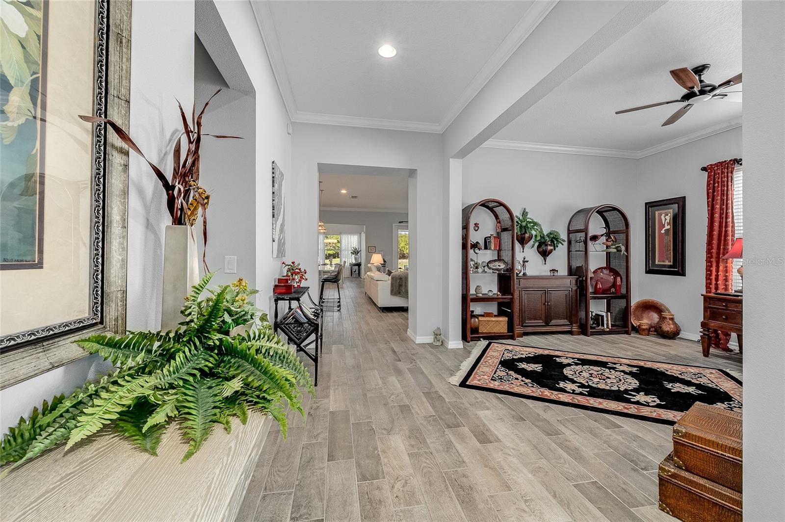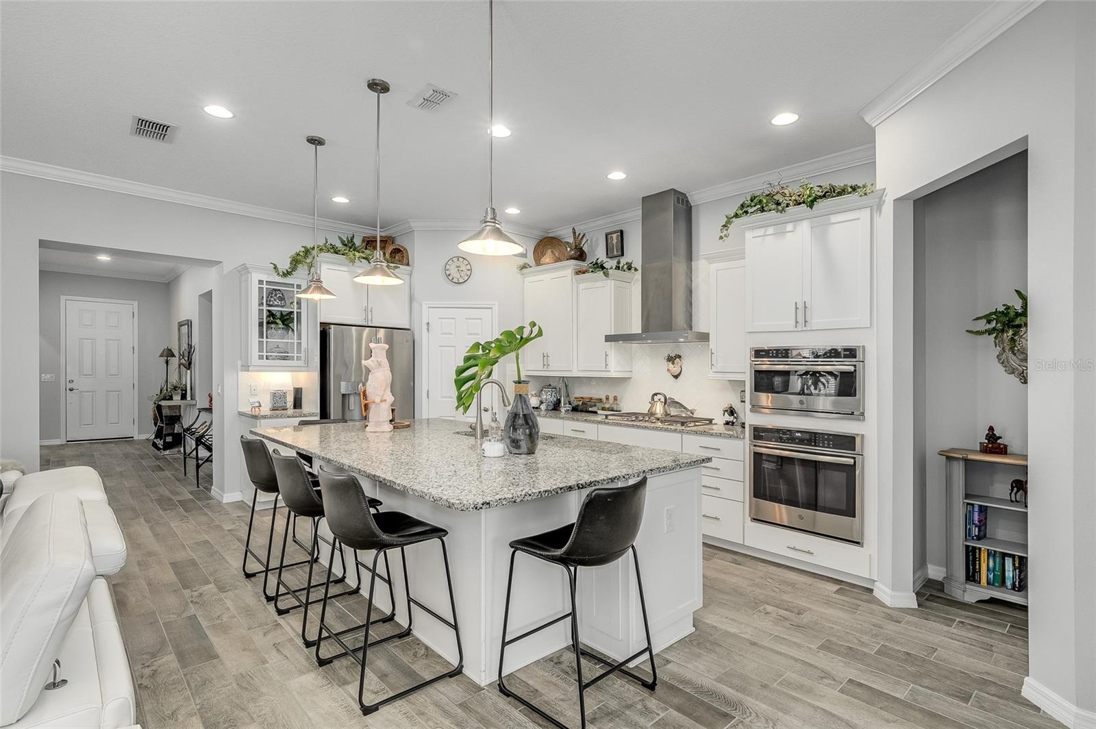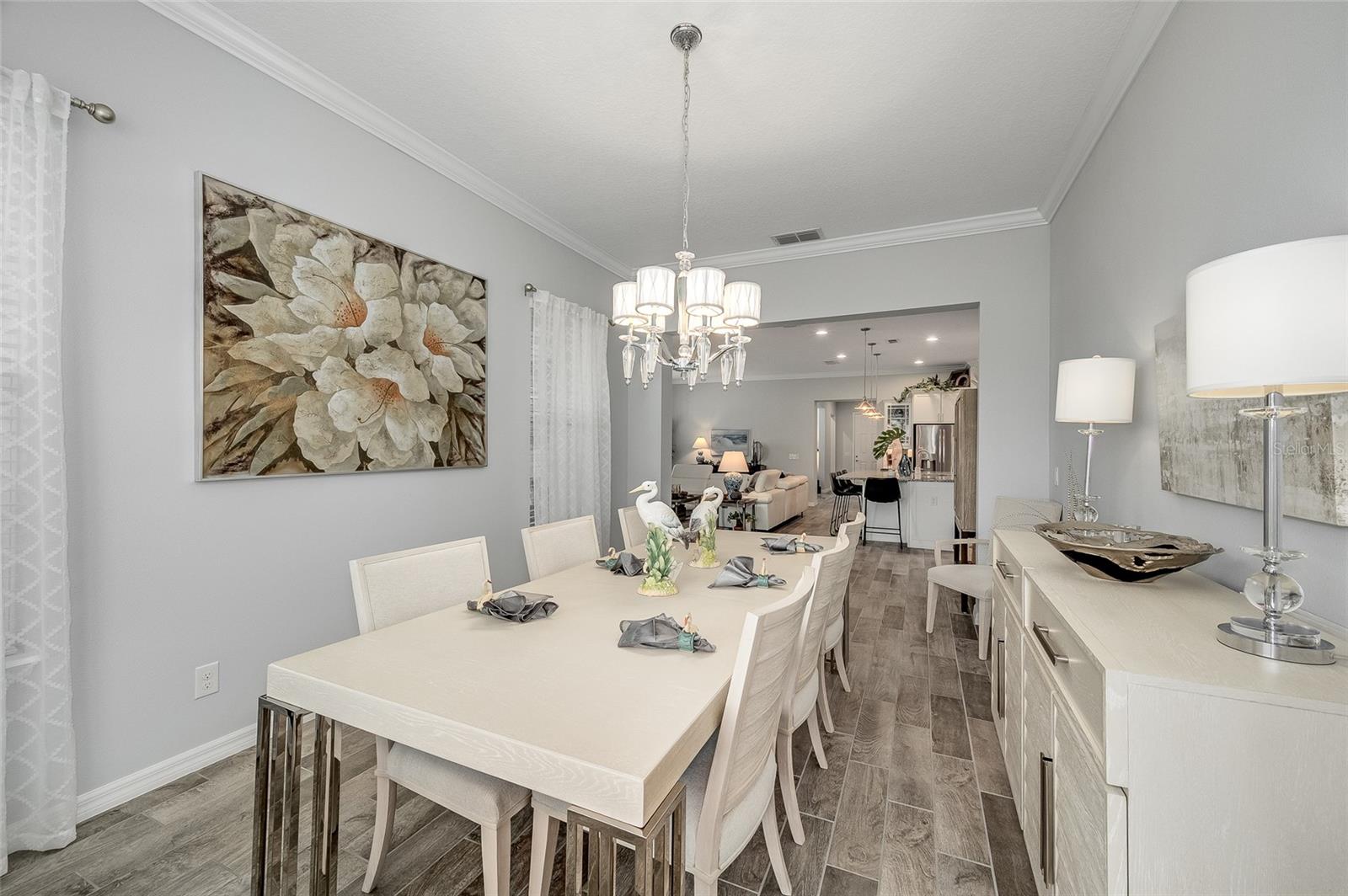 GRANDE AJUSTE DE PREÇO! Venha visitar este modelo de Barbados do condomínio fechado Four Season 55+ localizado na porta do Walt Disney World. O proprietário ampliou este modelo que ampliou o quarto principal, a sala de jantar e a varanda. Esta bela casa tem vista para o primeiro buraco do campo de golfe profissional de 18 buracos Mystic Dunes. Ao entrar, você verá o orgulho da propriedade brilhar! Dos tetos de 3 metros de altura às sancas, aos azulejos com aparência de madeira nas áreas de estar e úmidas e ao carpete macio nos quartos, você ficará impressionado! A cozinha tem fogão a gás, ampla despensa de canto, bancada em granito, grande ilha que funciona como balcão de pequeno almoço. O proprietário optou por abrir o 3º quarto original para usar como escritório e escritório, mas dará uma concessão para convertê-lo novamente em um quarto completo. O quarto de hóspedes tem um banheiro completo do lado de fora da porta. A lavanderia interna facilita a vida. Garagem dupla com área de estacionamento para carrinhos de golfe e arrecadação adicional. O luxuoso clube de 12.000 pés quadrados é o centro de atividades. Apresentando uma academia de ginástica de última geração, salão social, sala de jogos, bilhar, sala de artes e ofícios e muito mais! Um diretor de atividades em tempo integral também está no local. Se você não gosta de golfe, pode fazer aulas de dança ou ioga ou jogar pickleball, tênis, bocha, nadar na piscina, hidroginástica e muito mais! Suas dívidas também cobrem a manutenção do gramado. Venha hoje mesmo dar uma olhada na sua nova casa! Os móveis estão disponíveis separadamente.