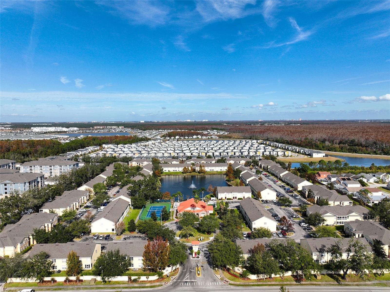 Localizada em um condomínio fechado de 24 horas perto de parques temáticos da Disney, esta casa de 2 andares é totalmente mobiliada, recém-pintada, para uma compra de chave na mão. É perfeito para uma residência primária, escapada de férias ou até uma oportunidade de aluguel. O layout funcional começa com um quarto no térreo e é ideal para quem prefere não enfrentar escadas. Adjacente ao quarto há um banheiro completo com duas portas de acesso separadas. Um se conecta diretamente ao quarto, criando uma opção privada de banheiro privativo, enquanto outra porta se abre para permitir um uso conveniente para hóspedes e família. Um layout sem costura que une a sala de jantar formal, a área de estar e a cozinha é perfeita para o estilo de vida de hoje. A cozinha está totalmente equipada e inclui uma ilha com assentos para 2. Logo de fora da sala estão as portas deslizantes que levam a um lanai exibido sem vizinhos traseiros. Para completar o andar de baixo, há uma lavanderia considerável com lavadora/secadora. Viaje para o andar de cima até uma espaçosa suíte do proprietário. O grande armário oferece amplo armazenamento e o banheiro privativo possui vaidades de pia dupla dividida, armário de água privado, banheira de jardim e chuveiro separado. No final do corredor, há 2 quartos adicionais e banheiro completo. Esta comunidade popular oferece uma piscina refrescante, fitness center, playground, tênis e quadras de basquete. Convenientemente localizado perto das principais estradas e uma variedade de compras e restaurantes.