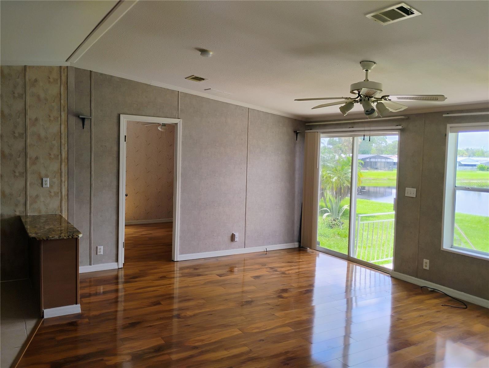 2005, Palm Harbor, Open Plan Doublewide 3/2 Modelo de Bristol Aninhado na comunidade serena em Broadmoor, onde você possui sua terra. Telhado mais recente, A/C (menos de 4 anos) de entrada de automóveis + pavimentadoras adicionadas para garagem mais ampla, e o pátio traseiro tem menos de 6 meses de idade. As vistas de água de tirar o fôlego podem ser vistas em toda a casa, desde a espaçosa cozinha de plano aberto, que se orgulha, bancadas em granito e uma barra de café da manhã. Ambos os banheiros atualizados têm bancadas em granito, a casa inteira tem um piso de ladrilho ou laminado, e alguns quartos foram pintados recentemente. A comunidade oferece uma bela piscina grande, clube, tênis, vôlei, basquete, boliche, shuffleboard e muito mais, para um estilo de vida ativo e divertido. As taxas de HOA cobrem cuidados, a cabo, a Internet e o gramado. Você está perto de ótimas escolas, compras, medicina, restaurantes, atrações, bando no lago à beira do lago/centro da cidade e Poinciana Sun Rail. Estão incluídas câmeras de segurança externa, monitor de segurança e um NVR com 1 terabyte de memória sem taxa mensal. A casa possui um título de cupim que é transferível para o novo proprietário e o vendedor oferece uma garantia de um ano com oferta aceitável.