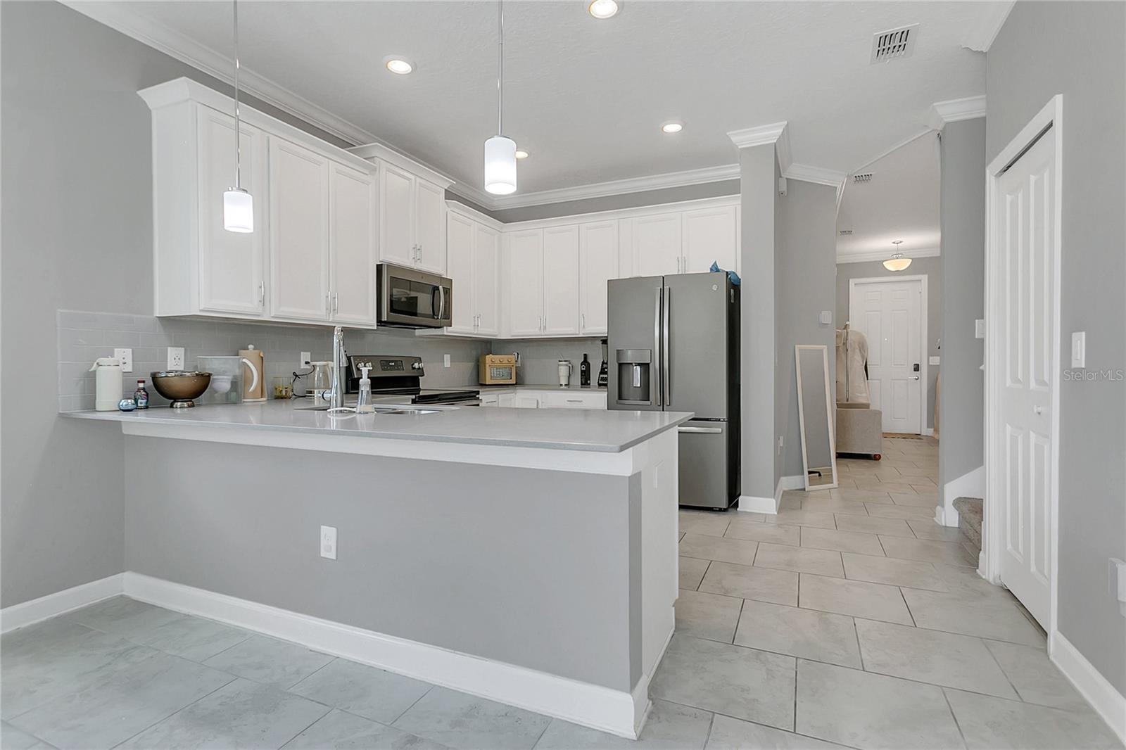 *A unidade de canto Townhouse Privado com estacionamento de mergulho em grandes dimensões fica em um condomínio fechado com 3 quartos, 2,5 banheiros e quase 1.800 pés quadrados de espaço de estar, esta casa mantida impecavelmente foi construída em 2018. A casa se desenrola em um paraíso de conceito aberto, misturando perfeitamente a cozinha, os restaurantes e as áreas de estar. A cozinha é o sonho de um chef, com armários brancos atemporais com moldagem por coroa, um elegante backsplash, elegantes bancadas de quartzo cinza e utensílios de aço inoxidável de primeira linha. For the convenience of your guests, a well-appointed half bathroom is also conveniently situated on this level. Ascending the stairs, you will discover all three (3) bedrooms, including the generously proportioned primary bedroom suite. Offering ample space for a king-size bed and adorned with tray ceilings. The primary bathroom is a luxurious retreat, showcasing a WALK-IN SHOWER, double vanity with quartz countertops, and a separate water closet. Os dois (2) quartos adicionais podem ser facilmente adaptados para uso como espaço de escritório ou acomodações de hóspedes. The community has true BUILT IN VALUE, taking care of not only exterior maintenance but also providing CABLE, INTERNET, and PHONE services. Furthermore, a wealth of amenities awaits, including a CLUBHOUSE, FITNESS CENTER, DOG PARK, PLAYGROUND, and a RESORT-STYLE SWIMMING POOL. Outra característica notável desta moradia é o seu recurso de casa inteligente, permitindo controlar a trava da porta da frente, o termostato, a porta da garagem, as luzes pendentes e a iluminação sub-cabinete, tudo do conforto da sua casa. The property also comes equipped with Wi-Fi extenders for seamless connectivity. Localização ideal, com compras, restaurantes e parques temáticos, tudo de fácil acesso. The townhome is situated just 1 mile from the nearest Target, 2 miles from the nearest Publix, and a mere 6 miles from Disney property. Se você estiver procurando por uma casa que combine perfeitamente atualizações, recursos domésticos inteligentes, comodidades comunitárias e um local privilegiado perto de compras, parques temáticos e opções de refeições, sua pesquisa termina aqui. Contact us NOW, let’s set up your private showing, TODAY!