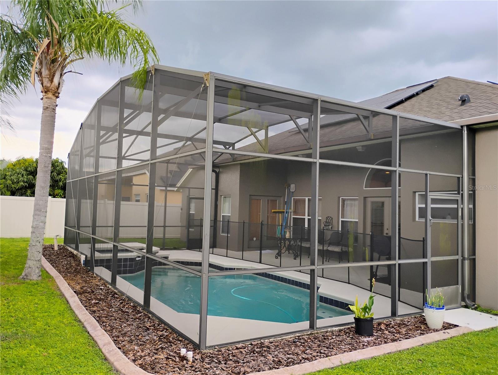 Elegível para financiamento de 100% com empréstimo do USDA. BAIXO HOA, SEM CDD e o imóvel avaliado acima do preço de listagem, portanto patrimônio líquido instantâneo. Grande casa com piscina com varanda sob o telhado e cercada no quintal e vista tranquila para o lago na frente da casa. Aproveite o sol brilhante da Flórida enquanto relaxa na banheira de hidromassagem ou flutua na piscina azul fria e cintilante. Esta casa contemporânea tem tetos altos, quartos em plano dividido, jantar em plano aberto, mas formal, sala de estar e uma excelente planta baixa. O quarto principal, a sala de estar e o banheiro de hóspedes têm portas externas que levam à piscina/área de entretenimento ao ar livre. A cozinha tem uma copa separada, uma bancada para café da manhã e uma despensa de bom tamanho. O quarto principal é grande e o banheiro principal tem um chuveiro grande. Perto de comércio, restaurantes, hospitais, escolas e principais rodovias.