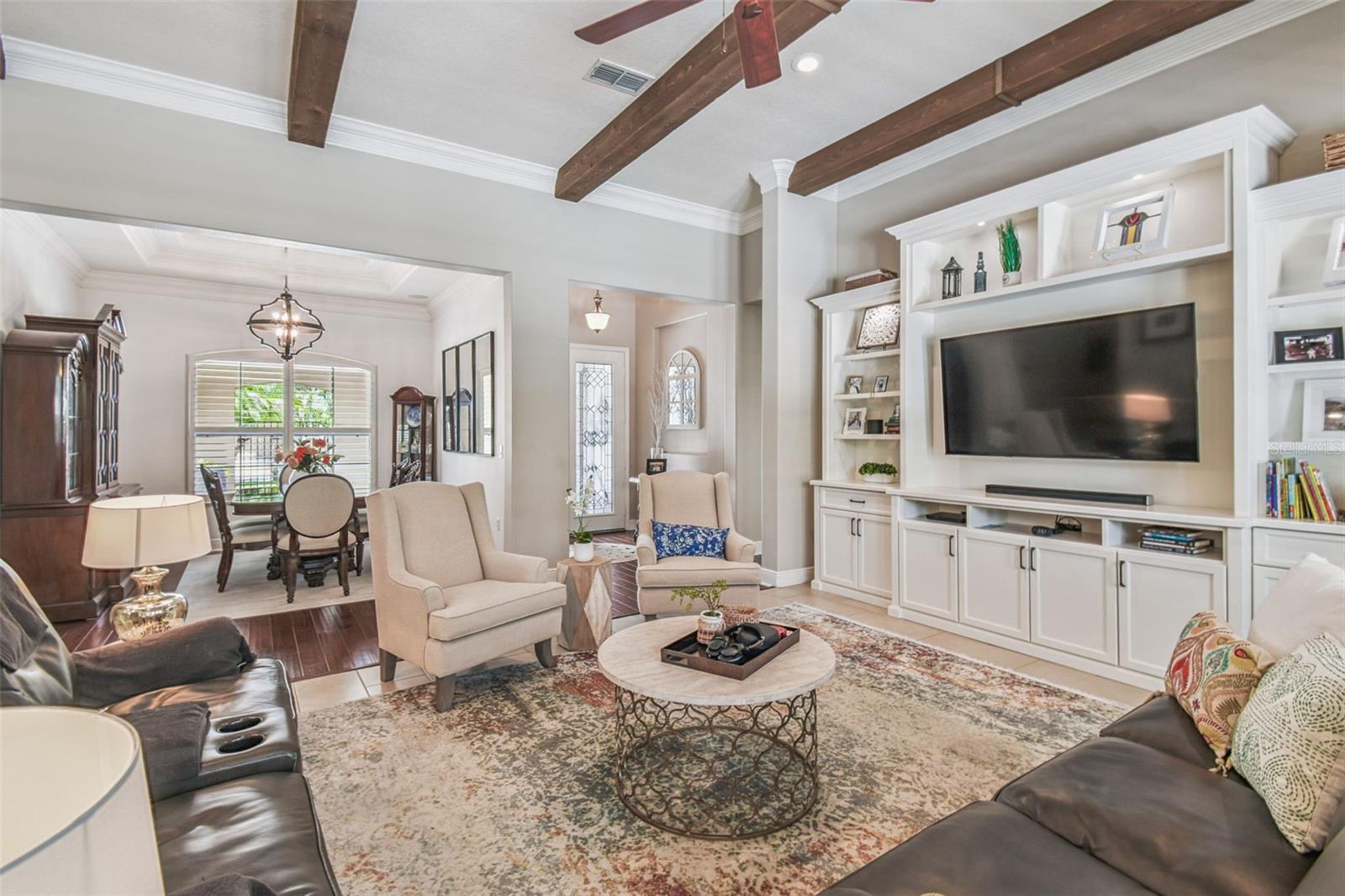 Este requintado modelo de piscina veneziana está localizado perto do Centro de Comodidades do Palms Resort em um lote de conservação extra grande, oferecendo a mistura perfeita de privacidade, espaço e luxo. Com 4 quartos, 4,5 banheiros, uma cabana de hóspedes, sala de jantar, Den/Study, uma piscina e spa personalizados e uma garagem de 3 carros, esta casa foi projetada para elegância e conforto. Entre através de um pátio fechado com plantadores de pedra personalizados na entrada exibida e impressionantes portas de vidro com dois com chumbo duplo. A grande sala de boas-vindas possui vigas aéreas, uma estante de TV de 75 "e abre para vistas deslumbrantes da piscina, Lanai e cenário de conservação. A cozinha do chef é um verdadeiro destaque com um grande bar de e comer, um poço de quartzo, que não é de um poço de madeira. Vistas de conservação e um banho de spa, com vantagens duplas, armários duplos divididos, uma banheira de imersão e um chuveiro Fora da Lanai Cobertada Extratória e aproveite a piscina e o spa personalizados com o gabinete estendido, todos emoldurados por paisagismo exuberante e uma vista privada de conservação. Roldes e rolam telas em Lanai. Funcionando o estilo de vida com mais de 230 clubes, esportes e atividades para escolher.