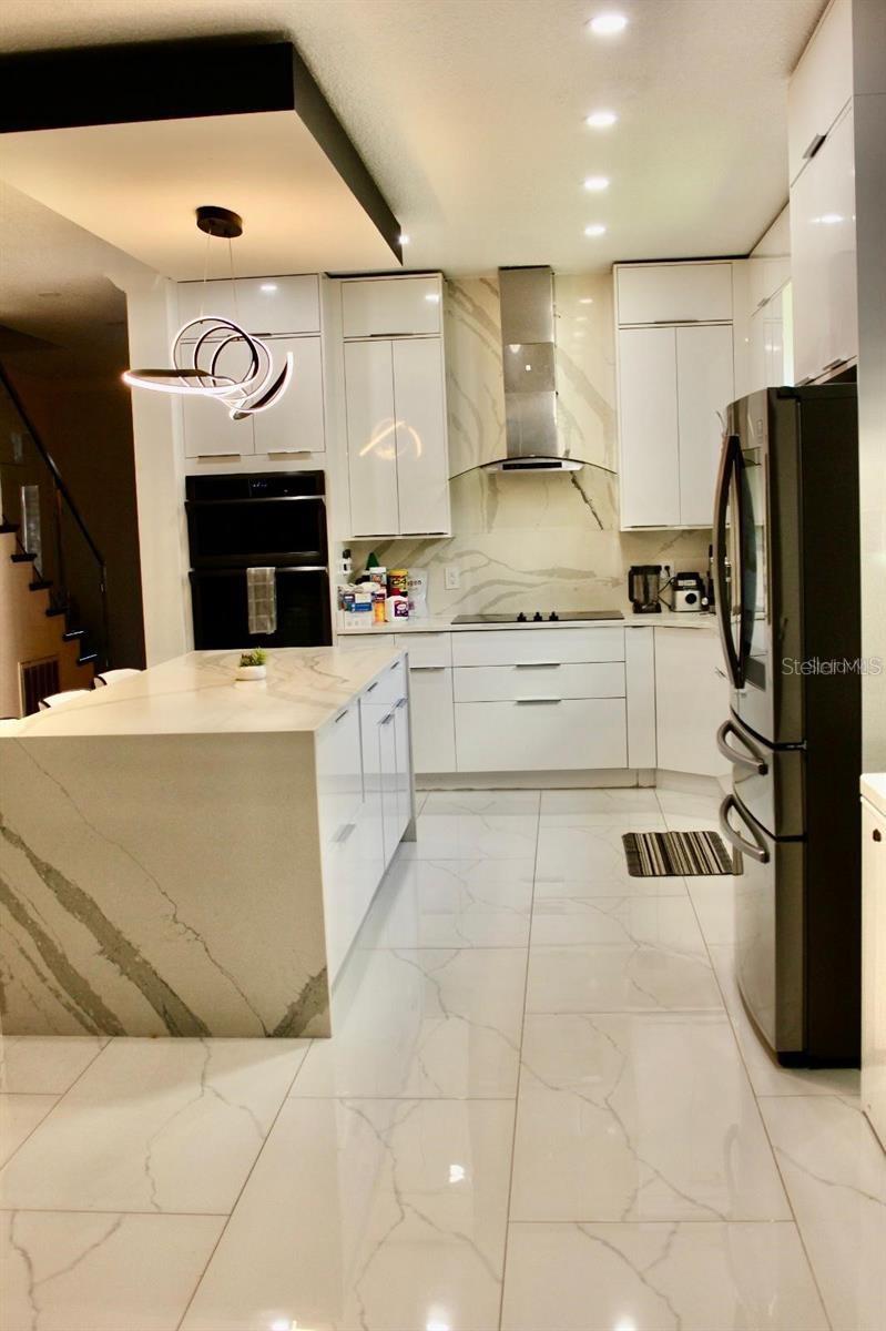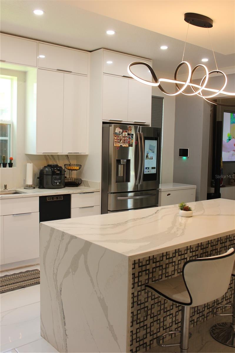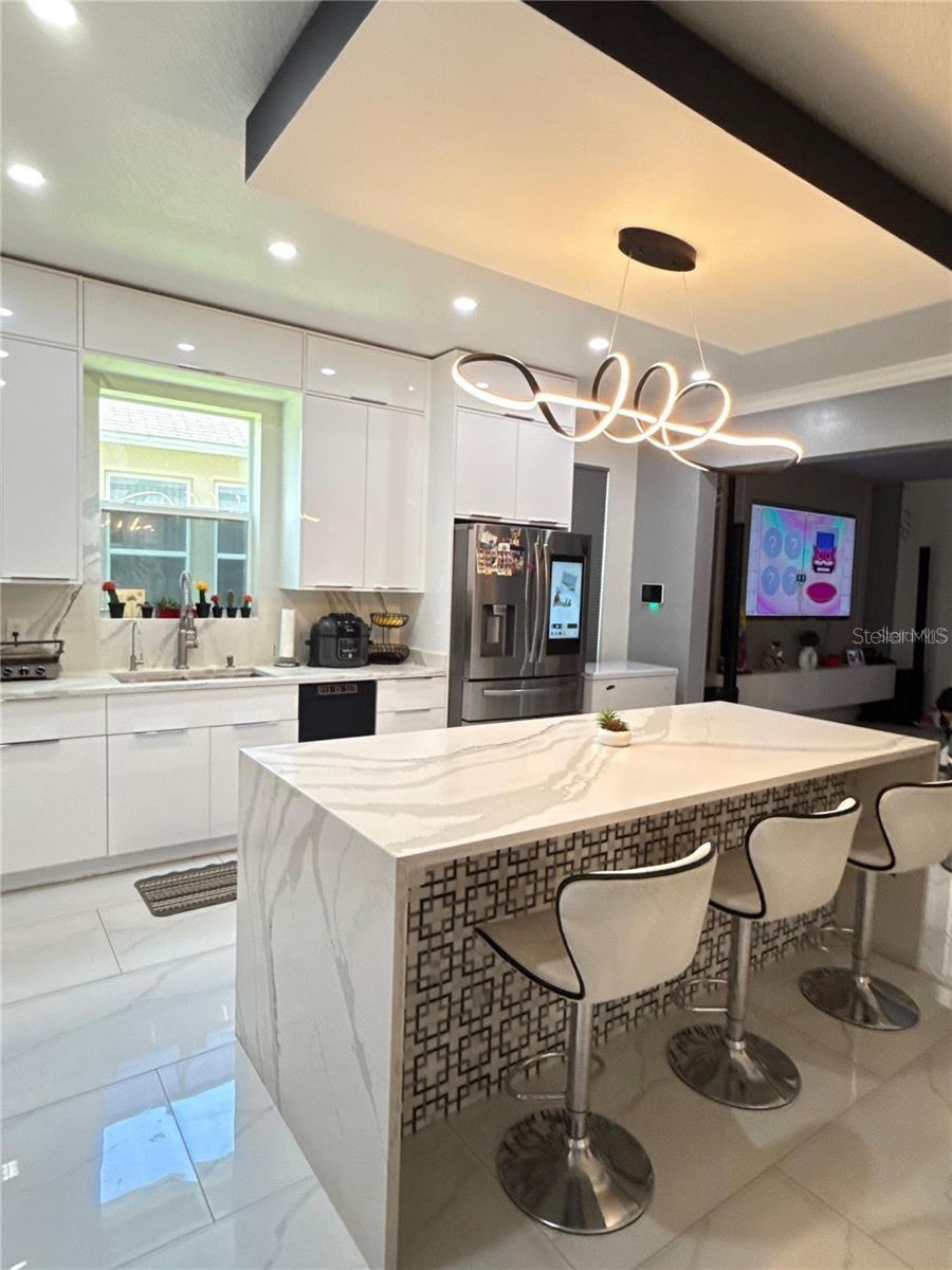 Esta luxuosa casa de 5 quartos e 3,5 banheiros foi completamente remodelada com acabamentos de ponta e acabamentos bonitos. Está localizado em um bairro muito familiar, perto de uma variedade de lojas, restaurantes, escolas, centros médicos e a poucos minutos do Aeroporto Internacional de Orlando e da Walt Disney World. Com inúmeras atualizações, incluindo uma combinação de LVT e pisos de madeira de engenharia por toda parte, tetos altos, um sistema de segurança, iluminação sofisticada, armários de walk-in em cada quarto e um espaçoso quintal cercado com uma pérgola e área de estar com uma fogueira, esta casa oferece amplo espaço para entretenimento. A cozinha aberta possui uma área de jantar adicional, bar de café da manhã, bancadas em granito, armários altos, um backsplash de ladrilhos e utensílios de aço inoxidável. Uma espaçosa sala de estar ao lado da cozinha e abre para o quintal. O quarto principal do primeiro andar, com banheiro privativo, apresenta pias duplas, uma banheira de imersão, um chuveiro separado, um armário de água e um grande armário. Um loft espaçoso recebe você no topo da escada e leva aos quatro quartos restantes no segundo andar. Dois quartos estão conectados a um banheiro compartilhado com uma banheira e chuveiro, vaso sanitário separado e pias. Esta casa está esperando você e sua família para criar memórias inesquecíveis. O melhor de tudo é que o consumo de energia é baixo graças aos painéis solares e é totalmente pago pelo seu prazer. Além disso, a taxa de manutenção é baixa! Vendedor motivado!