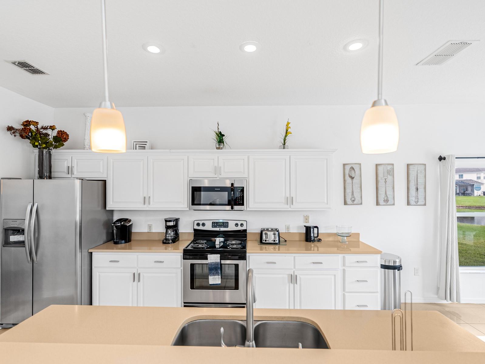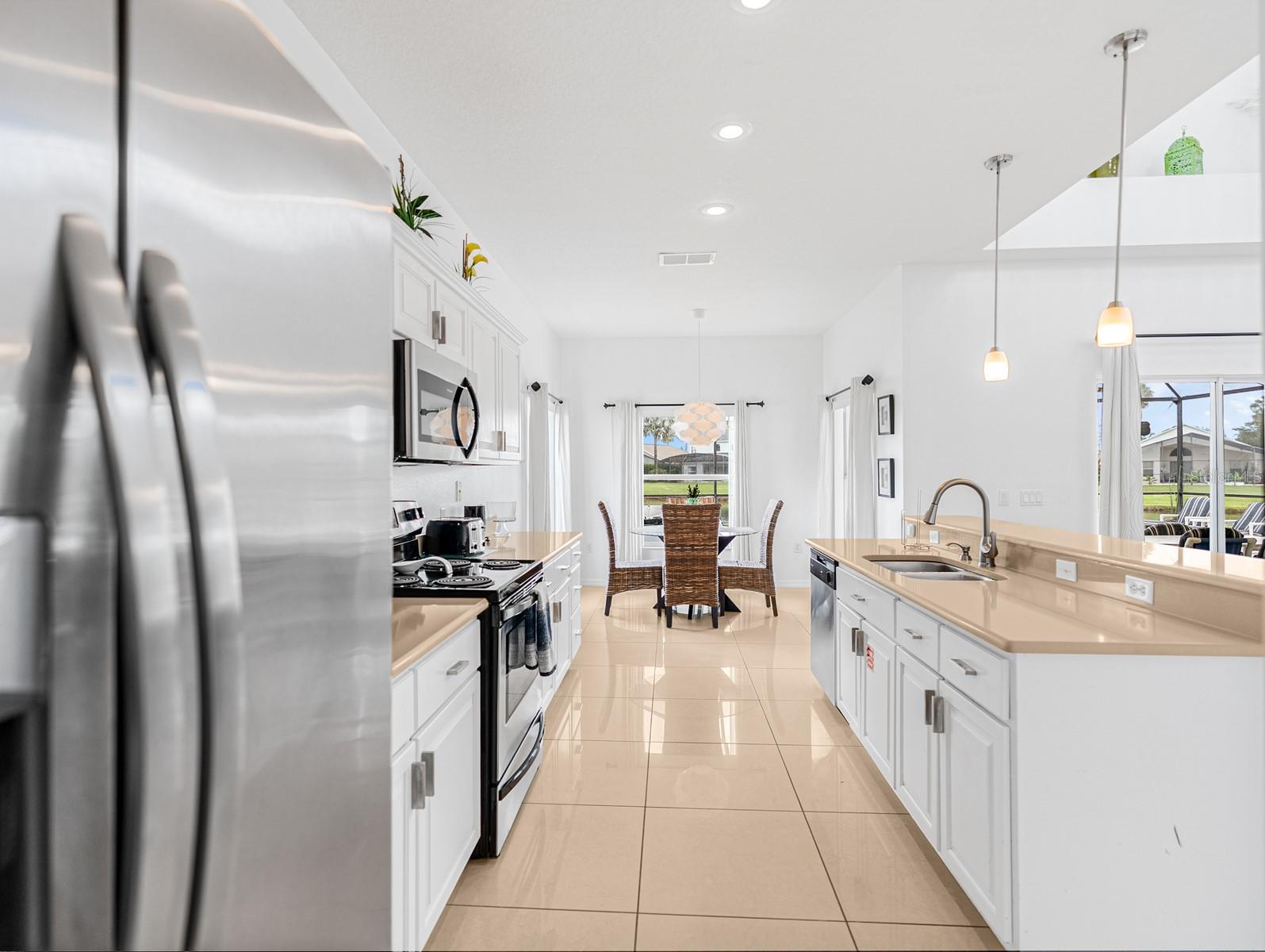 Bem-vindo à casa dos seus sonhos, onde o luxo e a serenidade se misturam harmoniosamente num encantador condomínio fechado. Esta residência cuidadosamente projetada oferece grande conforto e espaço generoso, perfeitamente adequada para famílias ou receber convidados. Um telhado recém-instalado e uma entrada pavimentada lhe dão as boas-vindas em casa. Ao entrar pelo hall de entrada de azulejos, a escada leva você ao nível superior, para uma varanda aberta com vista para a sala de família abaixo. No andar de cima você encontrará uma segunda suíte principal, dois quartos de hóspedes adicionais, banheiro familiar e uma área de loft repleta de luz - ideal para um escritório doméstico ou recanto de leitura tranquilo. No andar de baixo, logo na entrada, a ampla sala recebe você com piso laminado bonito e durável e um layout que acomoda perfeitamente espaços formais de estar e jantar. Na parte traseira da casa fica o verdadeiro coração da propriedade: uma cozinha bem equipada com eletrodomésticos de aço inoxidável, amplo balcão e armários, e uma ilha espaçosa com assentos, que se abre para a convidativa sala familiar. A área de estar impressiona com tetos altos de pé direito duplo e janelas de popa que inundam o espaço com luz natural, criando um ambiente caloroso e acolhedor. Com quatro quartos – incluindo duas suítes primárias luxuosas – esta casa oferece um equilíbrio ideal entre privacidade e flexibilidade. A suíte principal no térreo oferece vistas serenas e acesso direto à área da piscina, proporcionando um retiro tranquilo. No andar de cima, a segunda suíte principal é igualmente impressionante, também completa com um banheiro inspirado em spa com banheira de jardim, box amplo e closets duplos. Saia para o seu oásis privativo, onde uma grande varanda coberta e um amplo deck da piscina convidam você a relaxar, se divertir e jantar ao ar livre com estilo. Seja aproveitando o sol ou recebendo convidados, observando a vida selvagem do seu ponto de vista ao lado do grande lago, este espaço ao ar livre certamente impressionará. Um novo aquecedor de água, instalado em 2024, acrescenta-se à lista de atualizações cuidadosas da casa. Perfeitamente localizado perto da Rodovia 192, da Cidade Velha e de parques temáticos mundialmente famosos, com uma variedade de restaurantes, lojas especializadas e supermercados a poucos minutos de distância.