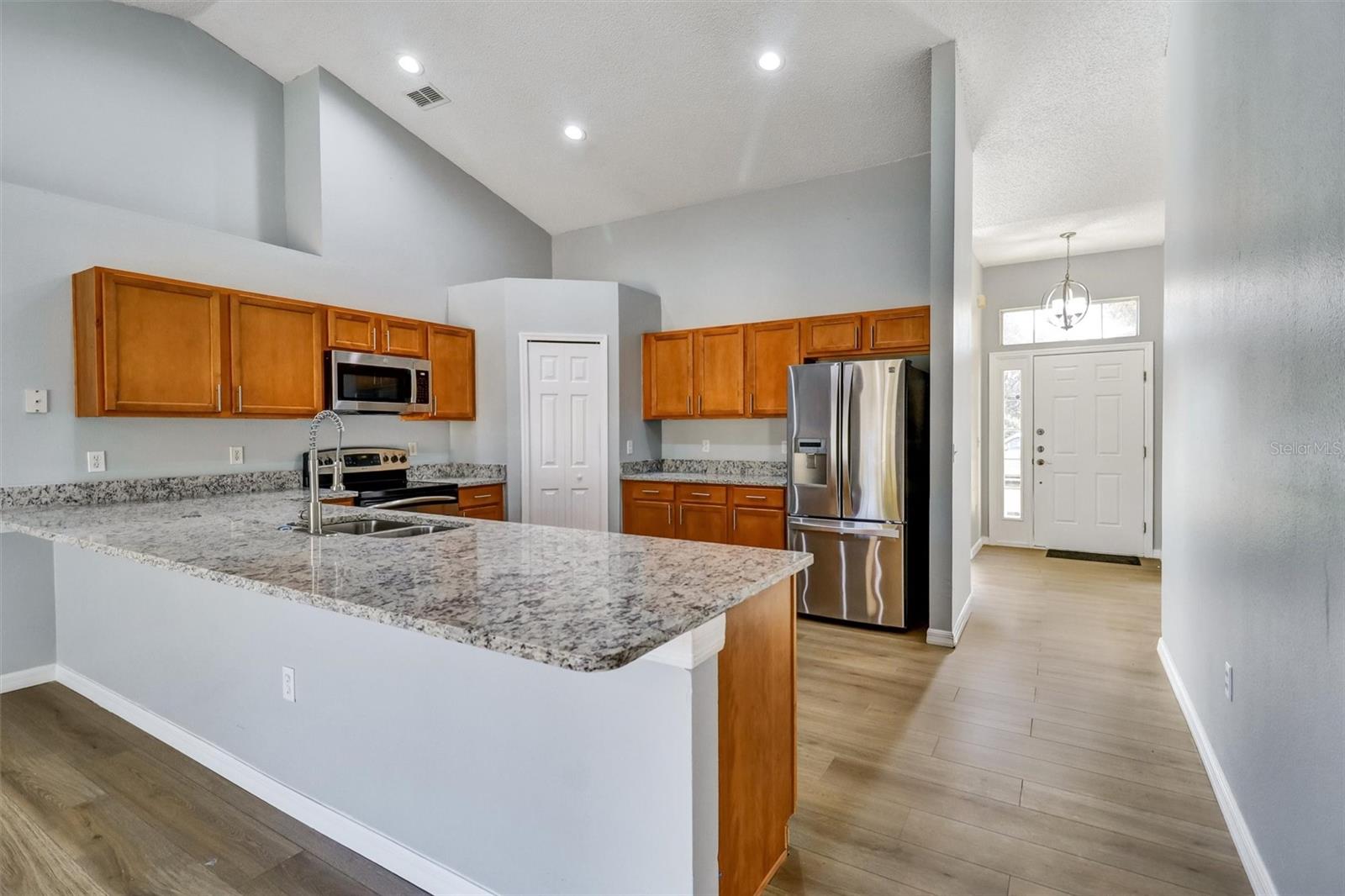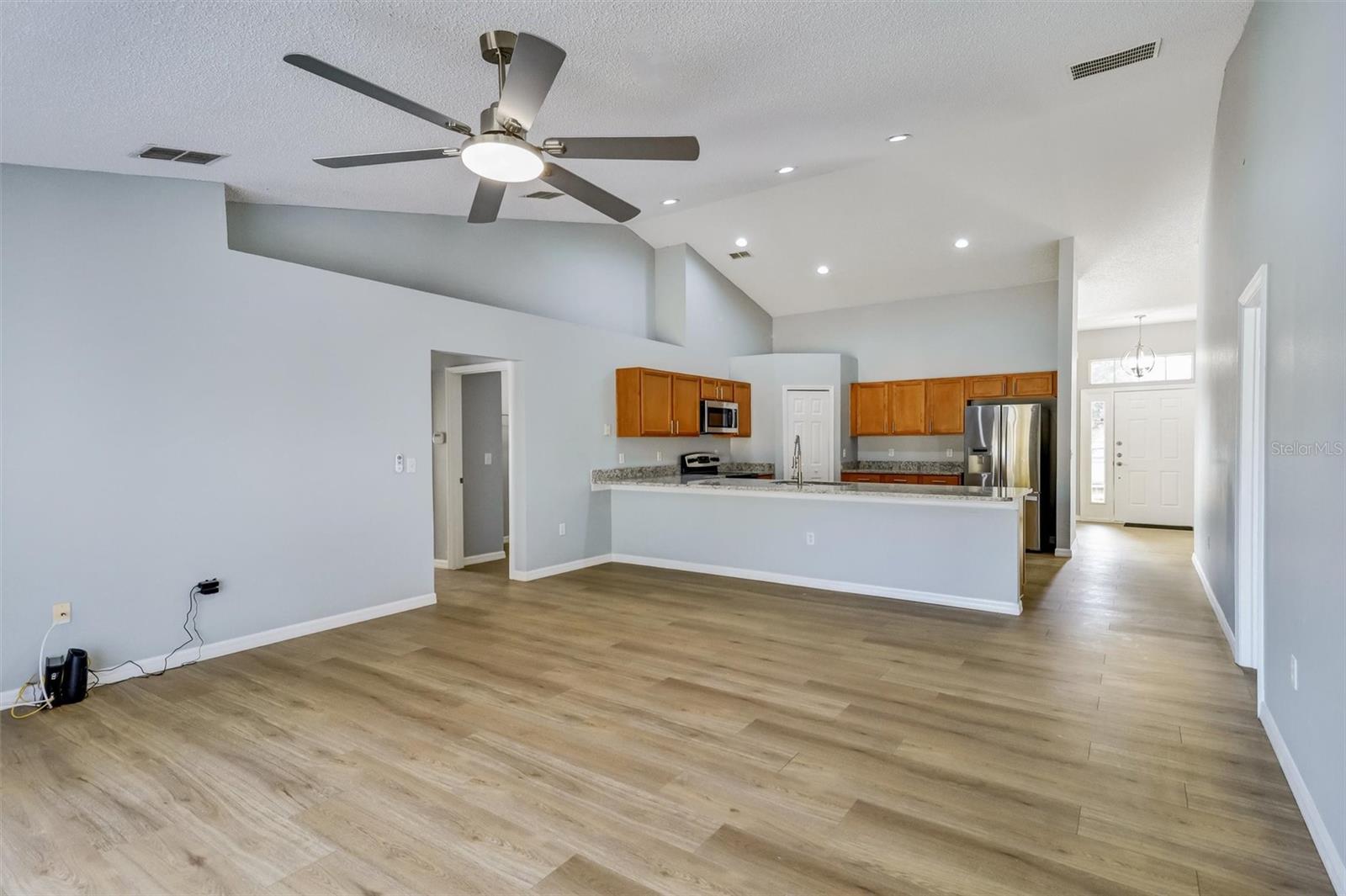 Esta casa com seu grande quintal cercado "Parece CASA". Esta casa muito espaçosa foi pintada por dentro e por fora. Novo piso laminado à prova d'água projetado por toda parte, atualização de iluminação, novas bancadas de granito, eletrodomésticos de aço inoxidável na cozinha, banheiro com novas penteadeiras com bancadas de granito. O quarto principal é muito grande, com um espaçoso closet e um amplo banheiro principal com banheiro novo, pias duplas e área de banheiro separada. Existem ventiladores de teto em todos os quartos. A casa tem planta de quartos divididos, com uma grande sala familiar aberta no centro. Existe um sistema de filtragem de água com amaciante de água. As taxas mensais do HOA incluem Internet, telefone e TV online. Os PAINÉIS SOLARES da Casa manterão suas contas de energia BAIXAS.