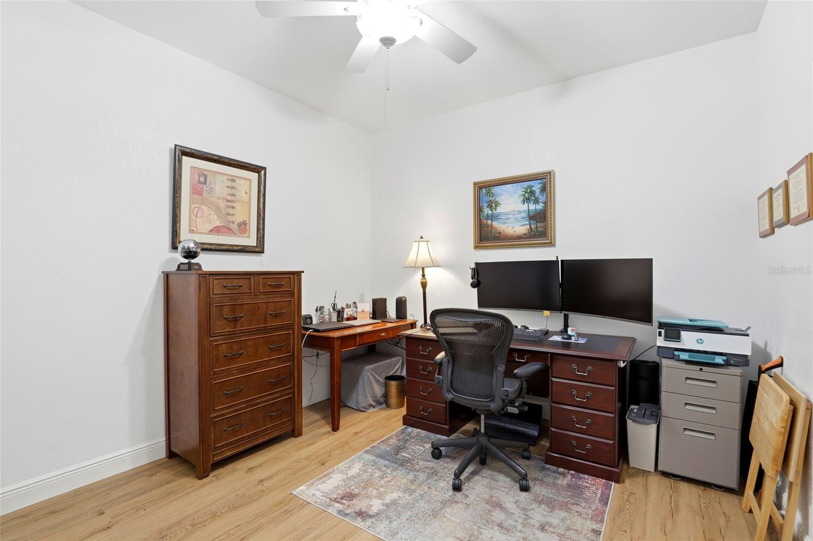 Desfrute de uma vida livre de manutenção nesta residência urbana lindamente atualizada de 2 quartos e 2 banheiros, com um quarto/escritório bônus atualmente usado como escritório doméstico, planta de quartos divididos e garagem para 1 carro, oferecendo 1.397 pés quadrados de espaço bem equipado. Localizada no Club Villas, um condomínio fechado 24 horas dentro do condomínio Remington Golf Course, esta casa combina conforto e conveniência. A cozinha atualizada apresenta armários de madeira personalizados e bancadas de quartzo, complementadas por eletrodomésticos de aço inoxidável cor ardósia GE, e oferece espaço para uma área de jantar, tornando-a funcional e convidativa. A cozinha se abre para uma espaçosa área de estar, ideal para a vida cotidiana e entretenimento. Os banheiros foram reformados com penteadeiras de madeira coordenadas e bancadas de quartzo próprias, proporcionando um design moderno e coeso em toda a casa. Esta casa apresenta piso de pranchas de vinil com núcleo rígido à prova d'água, tetos de pipoca removidos e textura de parede atualizada, criando uma sensação limpa e contemporânea. As portas deslizantes levam a uma varanda coberta, fechada e com tela, piso de cerâmica, ventilador de teto, painéis deslizantes de proteção solar e belas vistas do campo de golfe. A suíte do proprietário oferece um retiro confortável e privativo, com dois closets e um banheiro privativo totalmente atualizado com acabamentos modernos e box amplo. A sala bônus adicional oferece um espaço flexível ideal para um escritório doméstico, escritório ou sala de hobby, enquanto o layout de quarto dividido aumenta a privacidade. Os destaques adicionais incluem armário de lavanderia, garagem para um carro, A/C substituído em 2022 e aquecedor de água sem tanque. Os residentes do Club Villas desfrutam de exteriores e áreas comuns mantidas pelo HOA nesta subdivisão. Os moradores também têm acesso à bela comunidade de campos de golfe mantidos em Remington, quadras de tênis e trilhas para caminhada e corrida. Convenientemente localizado a poucos minutos de East Lake Tohopekaliga, centro de Saint Cloud, Saint Cloud Commons e Florida's Turnpike.