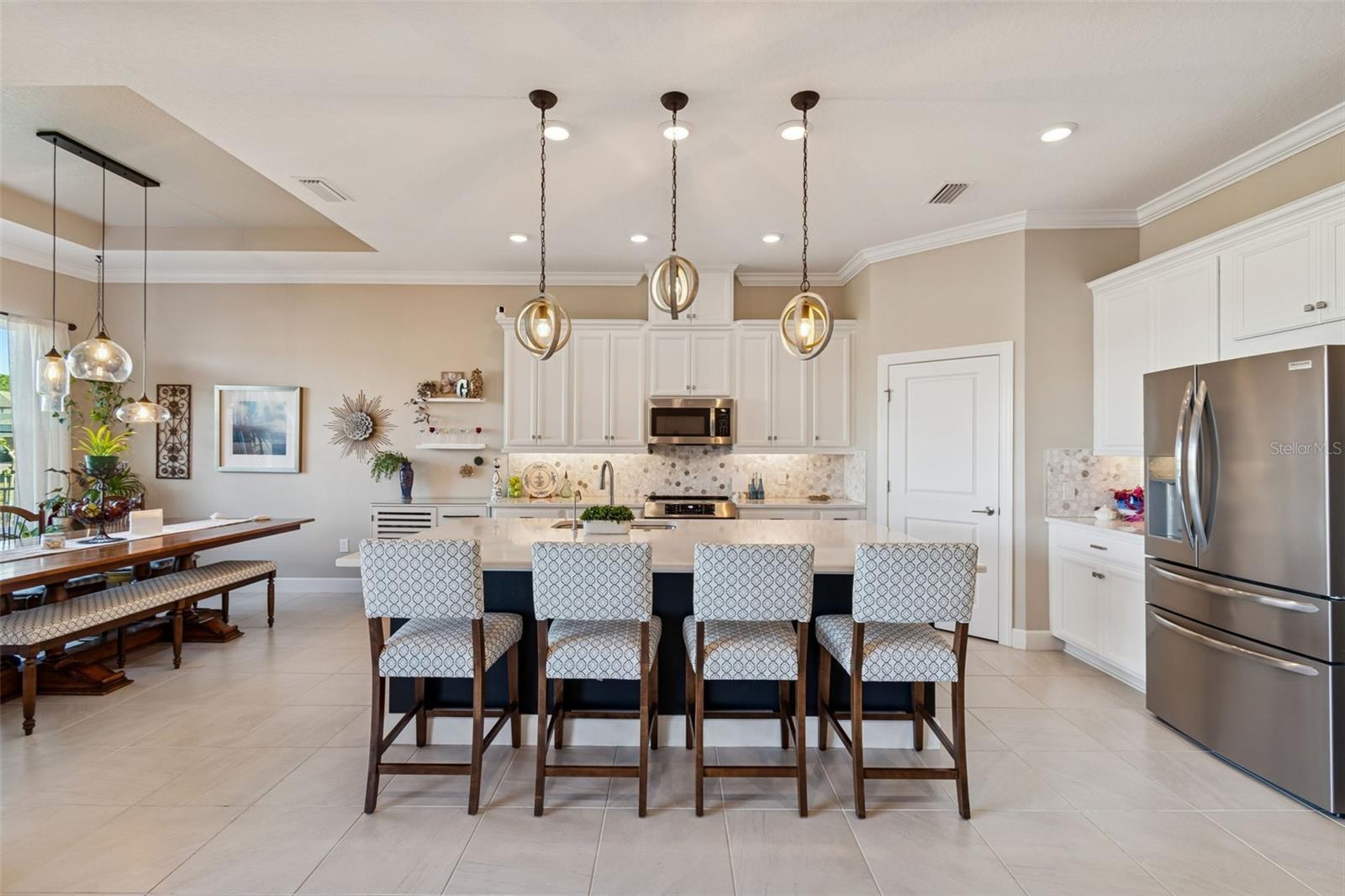 Procurado loteamento de VERSILIA, a poucos passos do VILLAGE CENTER com 3 restaurantes, farmácia, clubhouse, piscinas interiores e exteriores e centro de fitness. ENTRE nesta linda casa a partir de uma varanda coberta e você será recebido por uma elegante porta frontal de VIDRO COM CHUMBO que se abre para um grande FOYER com TETOS DE BANDEJA. Há piso de porcelanato na maior parte da casa, quartos com carpete macio e pranchas de vinil no escritório/arrumos. Este modelo LETIZIA de design exclusivo oferece 3 áreas de dormir separadas, cada ala com seu próprio banheiro para privacidade e conveniência. A ala frontal dispõe de 2 QUARTOS, 1 CASA DE BANHO com poliban, o ESTUDO / COZINHA com portas duplas situada em frente ao hall de entrada tem piso em TÁBUAS DE VINIL. No final do corredor da garagem você encontrará o QUARTO 3 com fácil acesso a um hall BANHEIRO com banheira e pia grande com pia única. A LAVANDERIA tem uma lavadora e secadora FRONT LOAD que fica em um armário de armazenamento para fácil acesso e você tem uma pia para limpezas rápidas. Localizada ao lado da Sala Grande fica a SUÍTE MASTER PRIMÁRIA, com suas amplas janelas que oferecem uma linda vista da LAGOA, o BANHEIRO DA SUÍTE oferece pias duplas, ducha WALK-IN e um amplo closet para duas pessoas com CAIBENIDADE PERSONALIZADA com gavetas embutidas. Esta casa MAIS NOVA CONSTRUÍDA em 2022 oferece muitas atualizações, desde seu paisagismo FRONTAL profissional até a LANAI ESTENDIDA traseira com vista para a LAGOA, e há uma área de churrasco pavimentada de tijolos ABERTA para grelhar e o quintal traseiro é cercado para privacidade. Aproveite a brisa da LAGOA enquanto assiste TV em sua Lanai e aprecie NÃO ter vizinhos traseiros. Esta cozinha de conceito aberto com sua grande ilha, balcões de quartzo, backsplash de azulejos de mosaico, aparelhos de aço inoxidável e uma grande despensa. A GRANDE área da sala oferece 3 portas de vidro deslizantes que se abrem para a LANAI e é ótima para receber familiares e amigos. Em toda a casa você encontrará TETOS DE BANDEJA, tratamentos de janela personalizados, MOLDURA DE COROA, VENTILADORES DE TETO, parede decorativa na suíte Primária e toda a casa oferece uma paleta neutra. A garagem para dois carros tem piso em EPÓXI e racks de armazenamento de metal OVERHEAD. Não perca esta casa excepcional, ligue para vir vê-la hoje mesmo. A HOA mantém PAISAGEM E IRRIGAÇÃO em toda a comunidade e para residências individuais, também mantém as estradas na comunidade (sendo repavimentadas). Este é um condomínio fechado com portões de guarda tripulados e patrulha móvel, incluindo a patrulha do xerife do condado de POLK. Os PORTÕES são AUTOMATIZADOS para os moradores o que permite fácil acesso através de leitores de placas. Suas taxas de manutenção também incluem internet e cabo de fibra óptica. SOLIVITA oferece DOIS CAMPOS DE GOLFE, 3 restaurantes, campo de SOFTBALL, PICKLEBALL, quadras de TÊNIS, SHUFFLEBOARD, 14 PISCINAS AQUECIDAS, TOT Lots, 2 parques para cães e muito mais.... Diretamente do outro lado da Cypress Parkway, no portão principal de Solivita, você encontrará um HOSPITAL e o recém-construído shopping center Poinciana Lakes Plaza, completo com uma mercearia, restaurantes (casual e fast food), bancos, Walgreens e muito mais por vir.