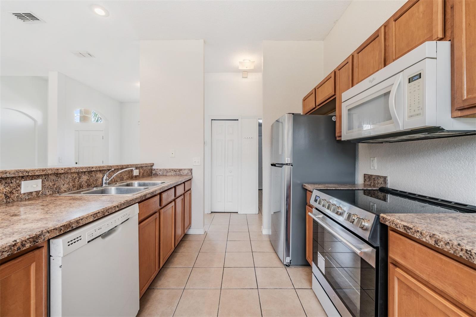 Uma ou mais fotos foram praticamente encenadas. Bem -vindo à sua nova casa! Esta impressionante casa de 3 quartos e 2 banheiros no estilo da fazenda está situada em um belo lote de canto, com paisagismo requintado que vai tirar o fôlego. A casa possui uma espaçosa garagem de 2 carros e um piso plano aberto com um design de quarto dividido para maior privacidade. A cozinha elegante está equipada com bancadas modernas, utensílios de cozinha novos, uma barra de café da manhã e áreas de jantar informais e formais, perfeitas para entreter os hóspedes. A grande sala de estar oferece amplo espaço para relaxamento e reuniões de família. Cada um dos quartos é de tamanho generoso, com a suíte primária oferecendo um luxuoso banheiro privativo completo com um chuveiro independente e uma banheira de jardim suave. A casa também inclui um novo aquecedor de água e um sistema CA de 4 anos. O teto foi substituído em 2023 e o exterior foi pintado em 2018. Aproveite a conveniência do cabo e da Internet coberto por taxas baixas de HOA. A casa está idealmente localizada perto de conservas e lagos naturais, proporcionando um ambiente sereno enquanto ainda oferece acesso conveniente à I-4 e à costa Hwy. Essa localização privilegiada concede um fácil acesso às praias locais, shopping centers, atividades recreativas e muito mais. Não perca a oportunidade de fazer desta linda casa sua casa!