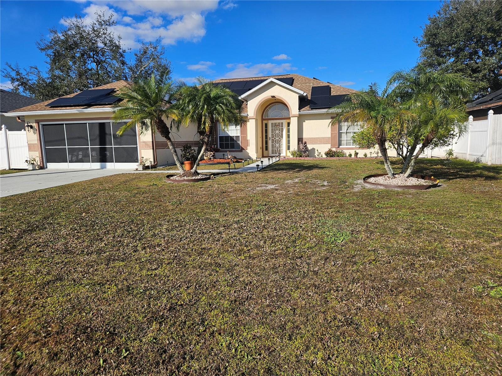 Bem -vindo à nova casa da sua família! Esta espaçosa casa de 4 quartos e 2 banheiros tem um piso plano aberto e uma cozinha atualizada com lindas bancadas de quartzo. Os tetos abobadados aumentam o caráter e o brilho da casa. O grande quarto principal tem uma banheira de jardim, pias duplas e chuveiro separado. Sua garagem de 2 carros tem uma tela de privacidade, permitindo que você trabalhe ininterrupto. Entre no pátio traseiro selecionado para admirar o espaçoso quintal e os vários tipos de árvores frutíferas maduras (mangas, limas e toranjas). O quintal é completamente cercado em aumentar sua privacidade. Aproveite a economia desta casa do painel solar !!! Esta comunidade apresenta parques próximos com quadras de basquete e playground. Este é o que você estava esperando!