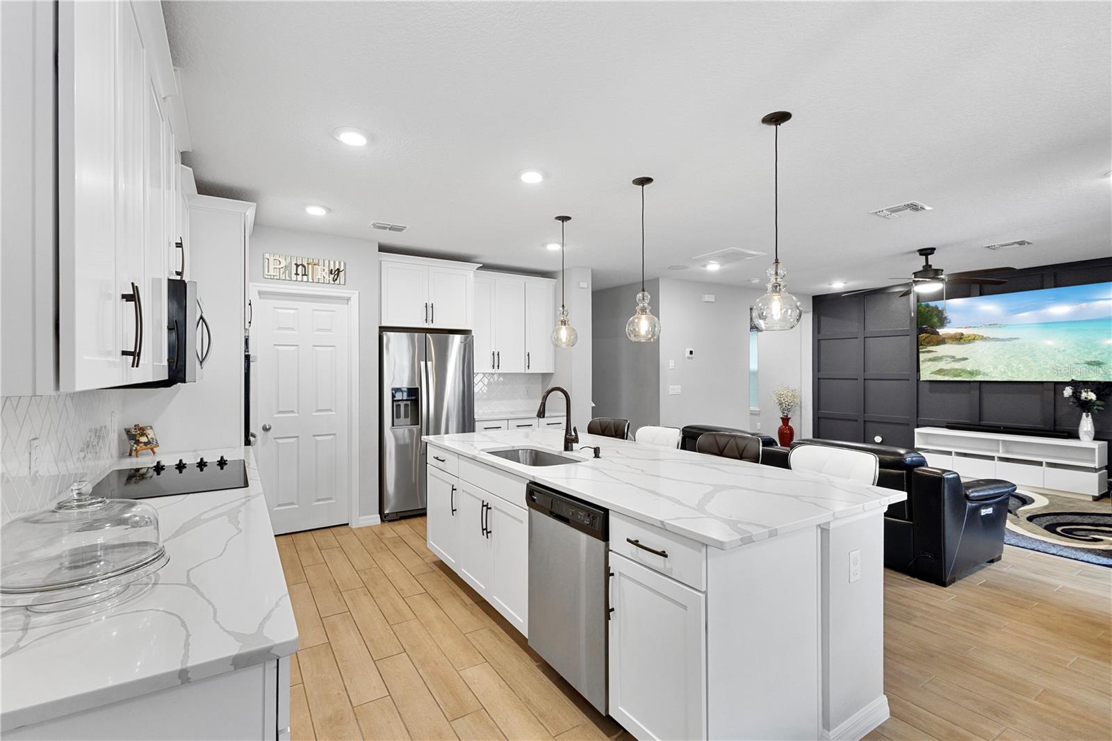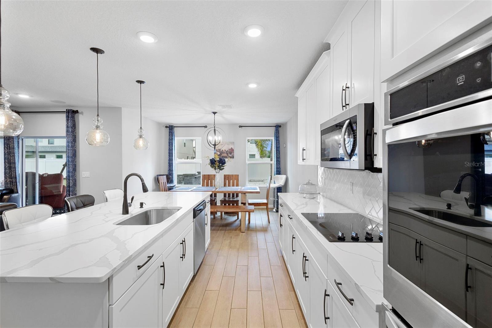 Melhoria de preços! Entre na vida refinada nesta estrela energética certificada por 4 quartos, 3 banheiros em casa com uma garagem de 2 carros e lanchonete coberto. The open-concept layout features wood-look tile flooring, a gourmet kitchen with 42" cabinets, quartz countertops, stainless steel appliances (including double ovens and cooktop), and a walk-in pantry. Built-in surround system and speakers in the great room. Upstairs, the luxurious Primary Suite offers dual walk-in closets, a granite dual-sink vanity, glass-enclosed shower and a private water closet. All Os quartos e a lavanderia estão localizados no segundo nível.