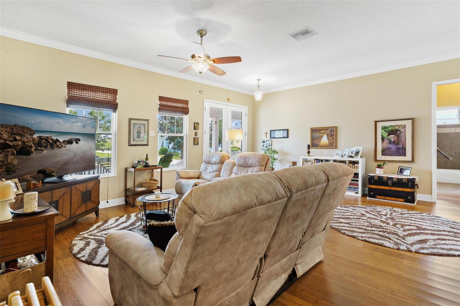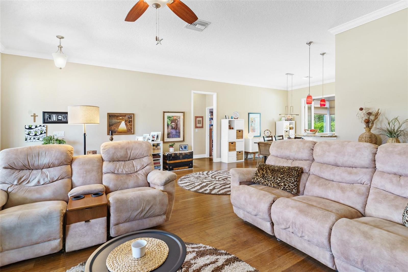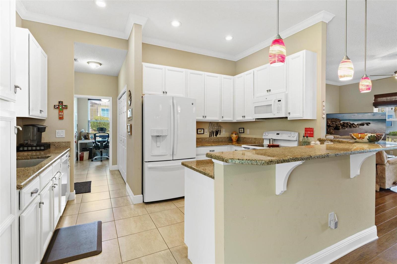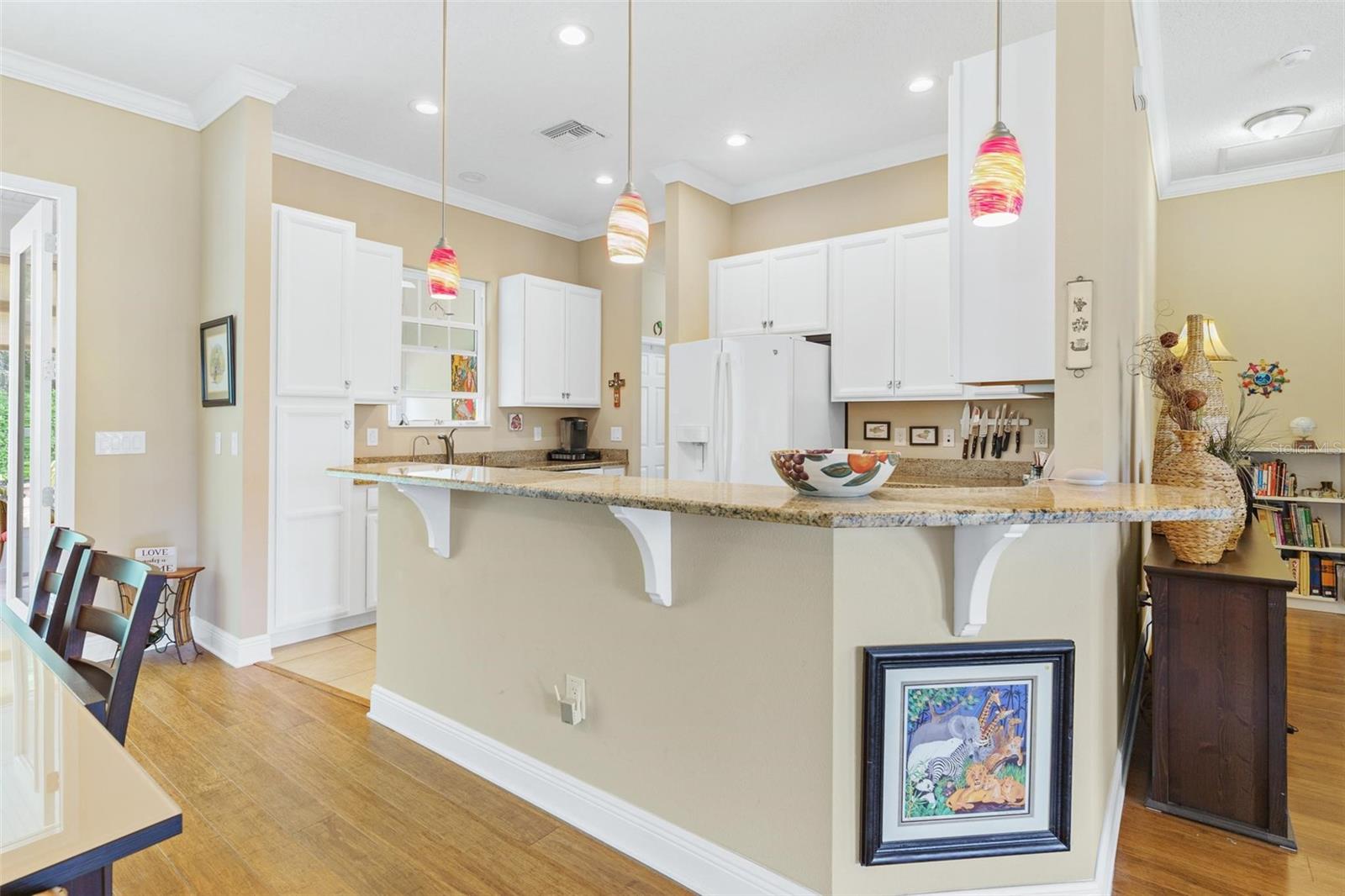 Green Key Village em Lady Lake foi construído para eficiência energética e fechado com o estilo arquitetônico tropical de Florida Keys. Ao entrar na comunidade você apreciará o paisagismo bem cuidado, a piscina, as quadras de tênis/pickleball e muito mais. Este três quartos mais uma sala tem dois banheiros e uma planta aberta, ótima para visitar a família e amigos. A cozinha tem armários em madeira maciça, bancada em granito e fácil acesso ao armário da lavandaria, arrumos e garagem. Diretamente fora da cozinha há uma sala bônus que leva a um pátio tropical no quintal e a uma fogueira. A espaçosa suíte principal tem banheiro privativo com dois closets, pias duplas de granito, box amplo com portas de vidro transparente e vaso sanitário privativo. Acabamentos de luxo com sancas, teto de três metros, venezianas Bahama na ampla varanda frontal, piso de bambu e azulejo, painéis solares, isolamento adicional na área do sótão e uma longa entrada que leva à garagem de entrada lateral. Esta comunidade tem HOA e contas de luz baixas. Venha ver esta comunidade popular hoje!