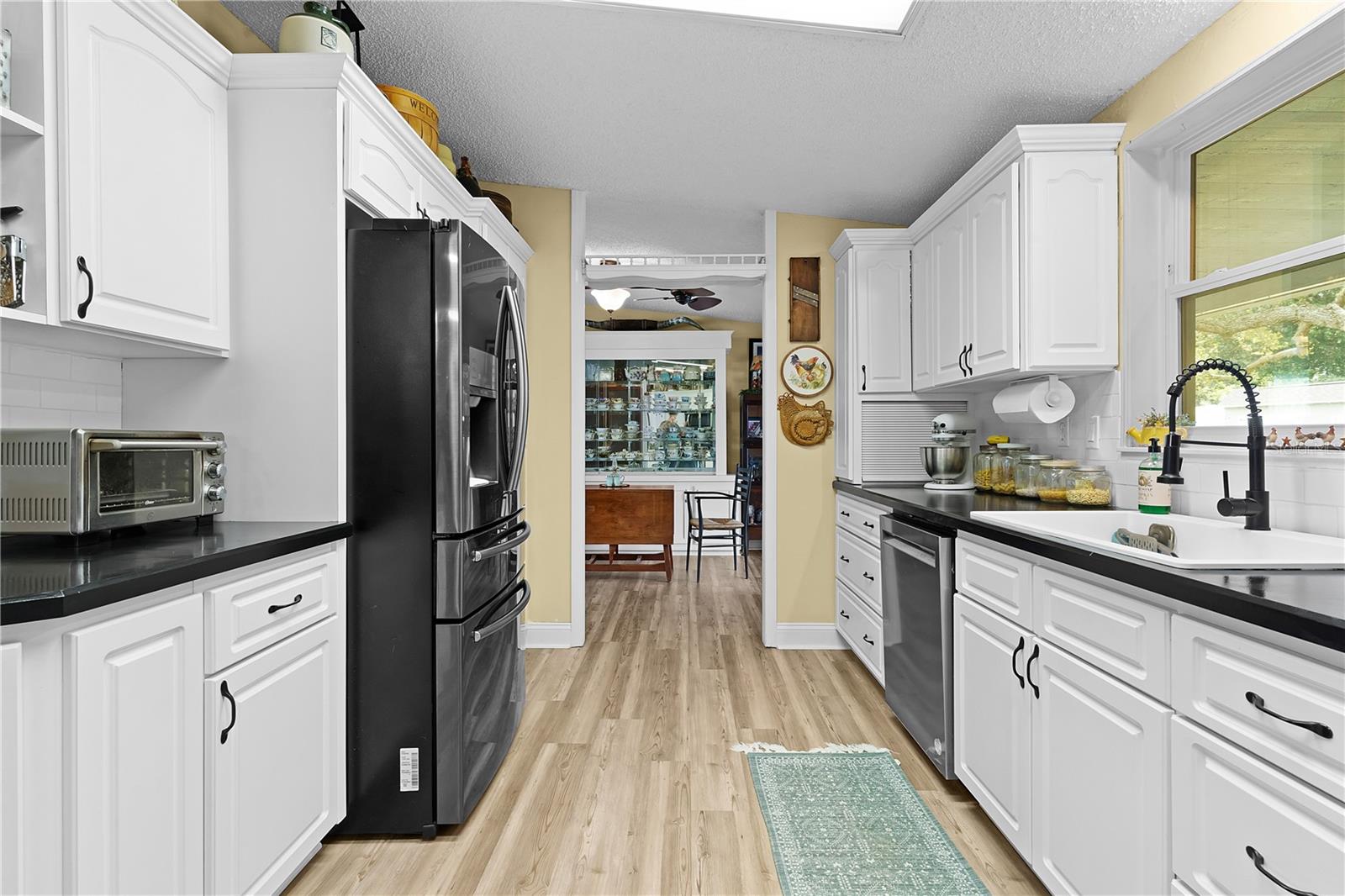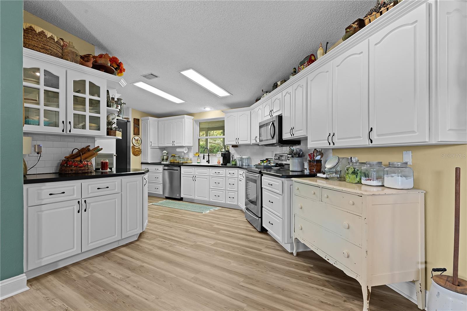 Uau! A LINDA CASA E ESPAÇOSA PROPRIEDADE QUE VOCÊ SONHOU ESTÁ AQUI! Situada em um enorme lote GRANDE de 0,7 acres com amplo espaço para trailers, barcos e brinquedos aquáticos, sem restrições de escritura e sem HOAs, fazem desta propriedade incrível o lugar ideal para chamar de lar. Situada na tranquila e altamente desejável comunidade de Oakland Hills e perto de tudo, esta casa tem tudo o que você procura e muito mais! PLANTA ABERTA espaçosa com tetos abobadados, muitas cascatas de luz natural em todos os cômodos e NOVO piso laminado de luxo em toda a casa. Cozinha de tamanho generoso com armários personalizados com gavetas, bancadas chanfradas e eletrodomésticos de AÇO INOXIDÁVEL, NOVA pia de casa de fazenda e NOVA torneira expansível sob uma grande janela, lavanderia INTERIOR com armários adicionais e balcão que leva a uma varanda coberta e telada que se estende toda a extensão da casa e com vista para o amplo quintal. IMPRESSIONANTES REMODELAÇÕES nos banheiros primários e de hóspedes e NOVO piso de cerâmica, NOVO box de vidro no banheiro principal, pias duplas, shiplap, grade de cadeira e NOVA combinação de banheira/chuveiro de azulejos no banheiro de hóspedes, ambos os banheiros possuem NOVAS pias, pias, ferragens e iluminação . PRONTO PARA MUDAR COM NOVAS JANELAS E NOVAS PORTAS. ATUALIZADO e meticulosamente mantido, com três galpões adicionais incluindo um galpão de armazenamento com cabine rústica 10x12 e os outros dois aproximadamente 10x15. Garagem e Oficina 20x30 isolada e varanda coberta de 8' com piso RECÉM-azulejo com vista para o enorme quintal TOTALMENTE CERCADO com muito espaço para piscina. Lindo paisagismo maduro e apelo ao meio-fio cercam a propriedade. TELHADO NOVO, A/C 2012. Agende sua exibição HOJE!