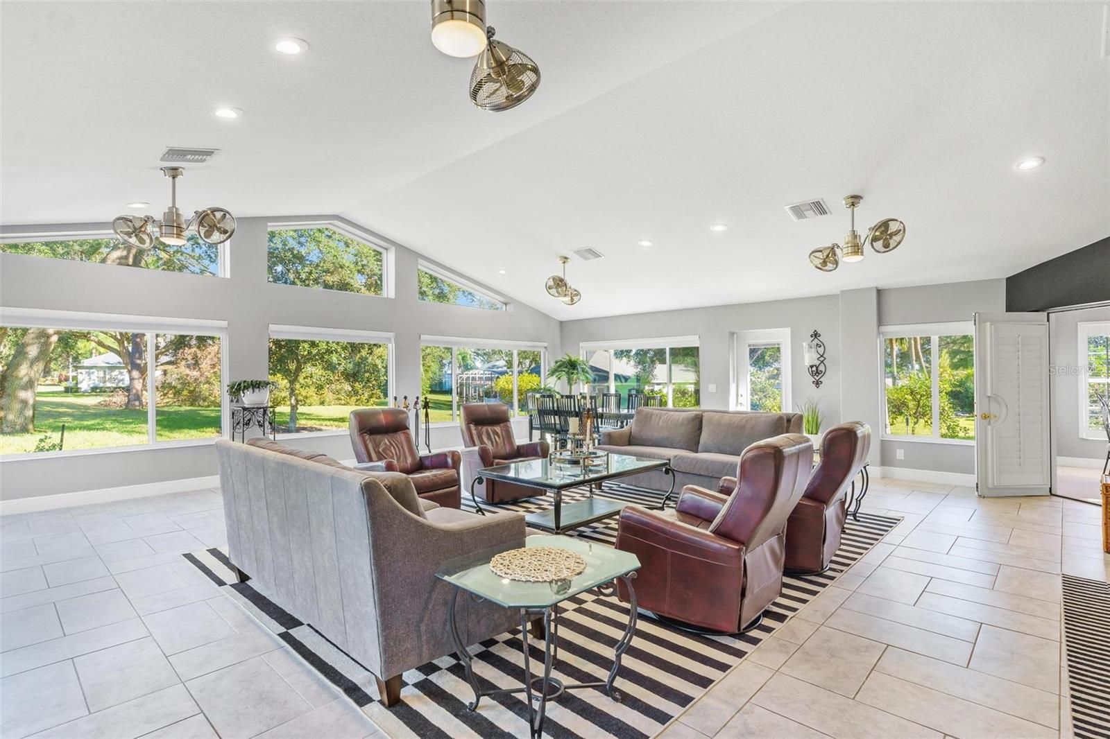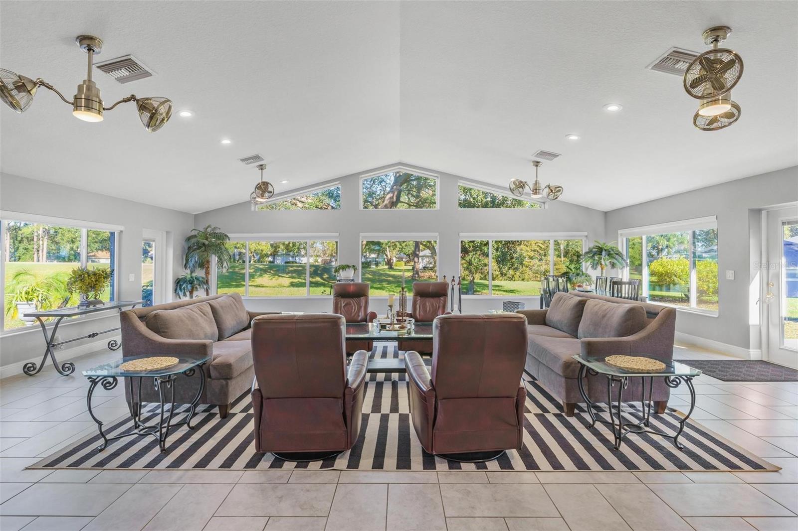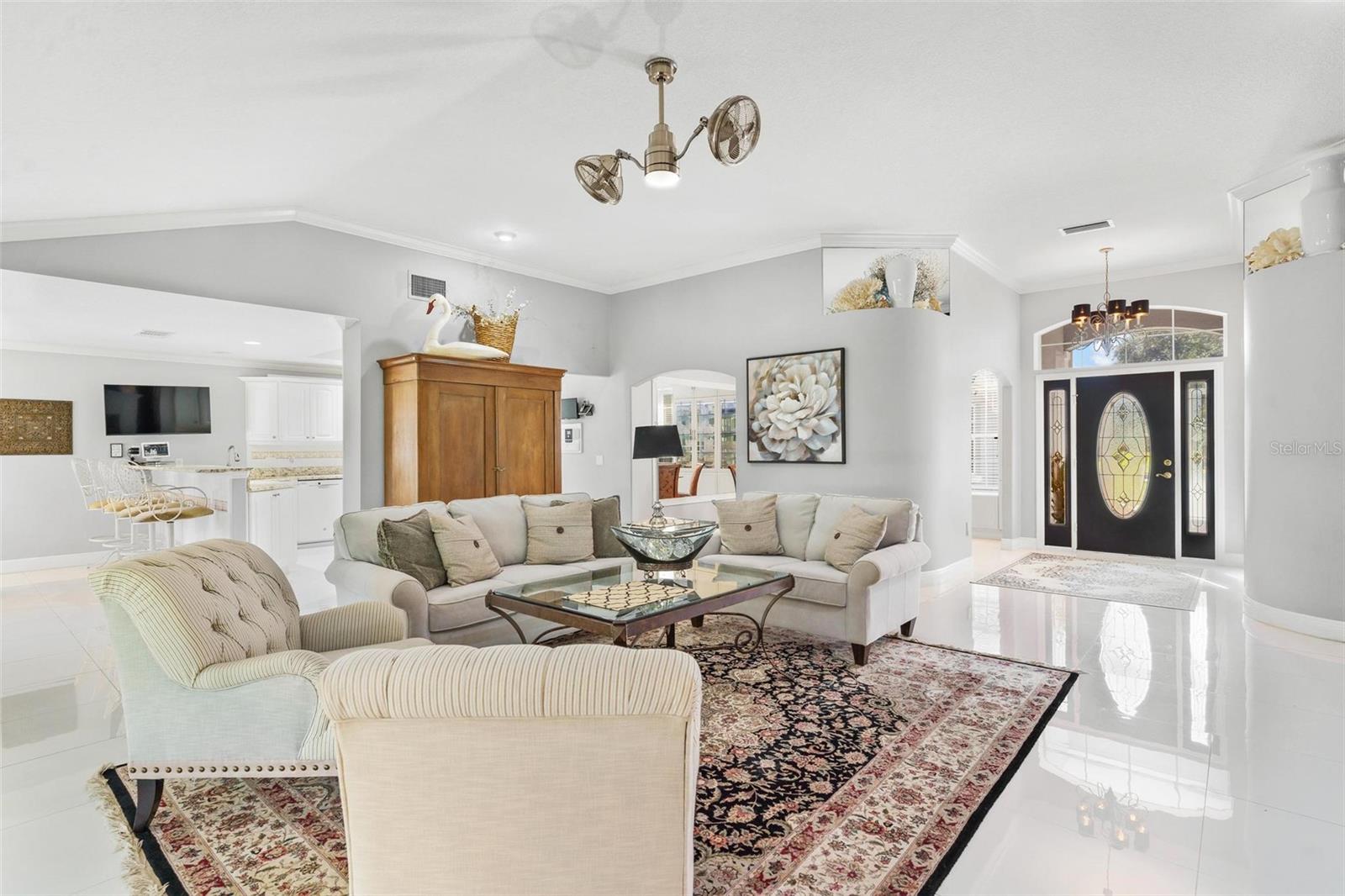 IMPRESSIONANTE CASA DE FRENTE DE GOLFE...MEIO ACRE! "Welcome Home" a esta residência excepcional, localizada no 15th Tee e originalmente construída em 1997 com os mais altos padrões e cuidadosamente remodelada e transformada em uma obra de arte impressionante! Esta casa com campo de golfe oferece uma mistura incomparável de luxo, conforto e estilo, perfeita para entretenimento e para a vida cotidiana. Você vai adorar a garagem enorme para 2 carros, além de uma garagem separada para carrinhos de golfe! Esta casa oferece uma adesão OPCIONAL ao Social e ao Clube por uma taxa separada, ao contrário de outras casas nesta comunidade de golfe!! Ainda aproveite o benefício e sinta-se "seguro e protegido" neste bairro GUARD GATED 24 horas por dia, 7 dias por semana! O vendedor adicionou recentemente um gerador automático "Generac" para toda a casa que garante energia ininterrupta para toda a sua casa! A adição de uma grande sala de 900 pés quadrados, projetada com paredes reforçadas e isoladas e janelas de impacto de 140 MPH foi adicionada, proporcionando vistas panorâmicas do campo de golfe de classe mundial! Este quarto espaçoso possui quatro ventiladores Pendersen duplos de 42 polegadas, sete persianas com controle remoto e quatro portas deslizantes que conectam perfeitamente a sala de estar, reunindo uma atmosfera interna e externa. A área de estar formal possui uma lareira elétrica controlada automaticamente para noites românticas em casa. Por toda parte, você encontrará sancas, rodapés elevados e lindos pisos de cerâmica 24x24. As janelas são adornadas com venezianas de madeira atualizadas para uma aparência clássica e atemporal. A cozinha é completa com armários planejados com garrafeira, bancada de quartzo, fogão a gás, geladeira Samsung e micro-ondas. A sala de jantar formal adiciona um toque de elegância, apresentando um armário personalizado construído em China com gavetas de estilo europeu e um impressionante espelho de 10' x 6'. A Suíte Primária é um "verdadeiro retiro" com portas francesas que levam à grande sala e um amplo banheiro. O banheiro inclui box amplo com jatos de parede, chuveiro com efeito de chuva e de mão, banheira de hidromassagem e vaso sanitário equipado com bidê. O closet profundo oferece amplo armazenamento. Grandes quartos, dois e três, compartilham um banheiro remodelado que apresenta um grande box amplo e penteadeira com bancada de mármore. Ao lado da lavanderia fica o conveniente lavabo para os hóspedes! A casa está repleta de atualizações para incluir clarabóias para iluminação natural adicional, sistema de aspiração central, circuito de 20 A, sistema de filtragem de água para toda a casa e antenas especiais no sótão que eliminam os custos de serviço de cabo. O fogão a gás e o aquecedor de água sob demanda aumentam a conveniência. Abundam as comodidades de alta tecnologia, incluindo abridores de porta de garagem Bluetooth com controle remoto e termostato. Aproveite o gramado paisagístico com árvores frutíferas como laranjeiras, limoeiros, limas, figueiras, toranjas, bem como plantas de mamão e abacaxi. Os recursos externos incluem detectores de movimento, holofotes e impressionantes faixas de luz de 6 pés que iluminam a entrada frontal e as portas da garagem. Localização conveniente minutos The Villages shopping…. Prepare-se para ser cativado por esta casa de tirar o fôlego!