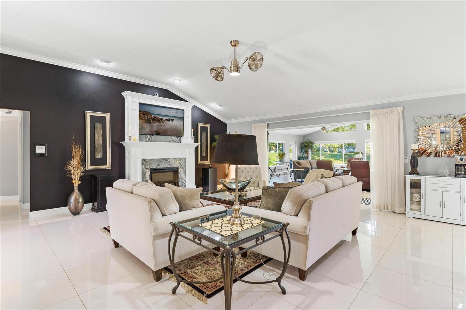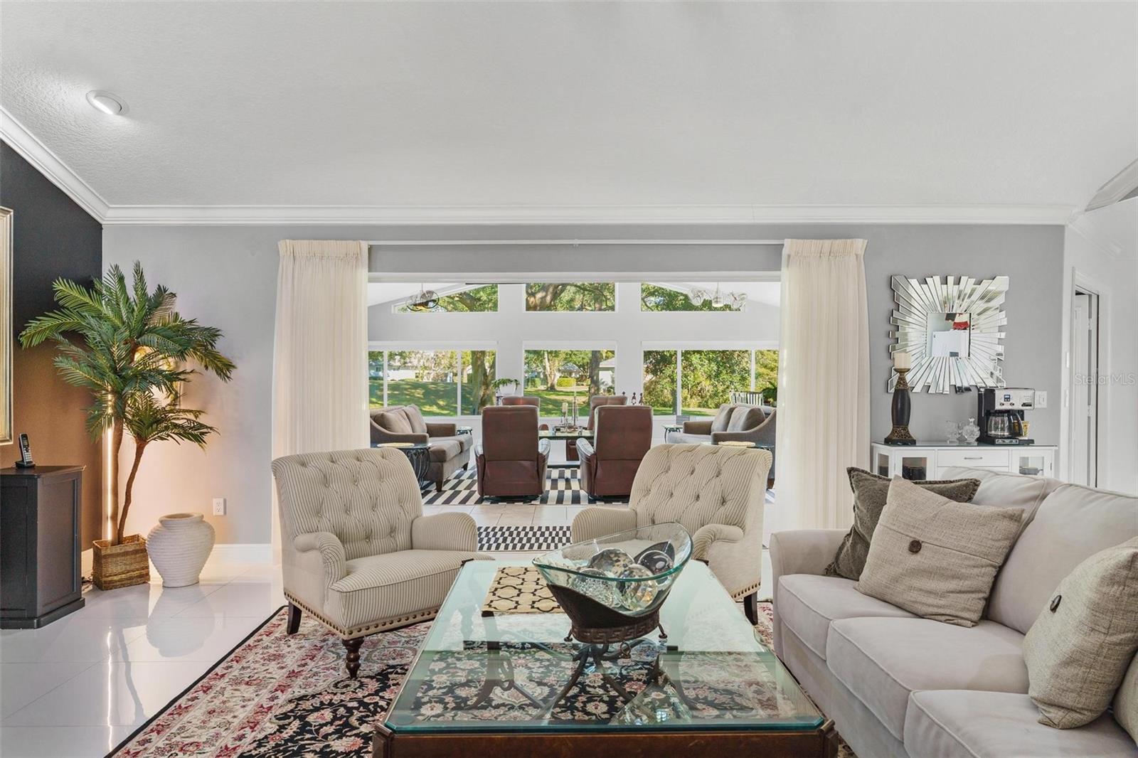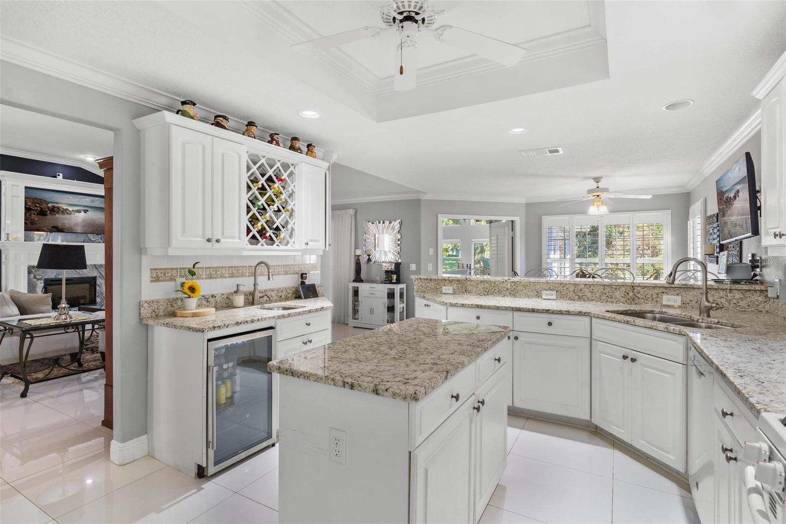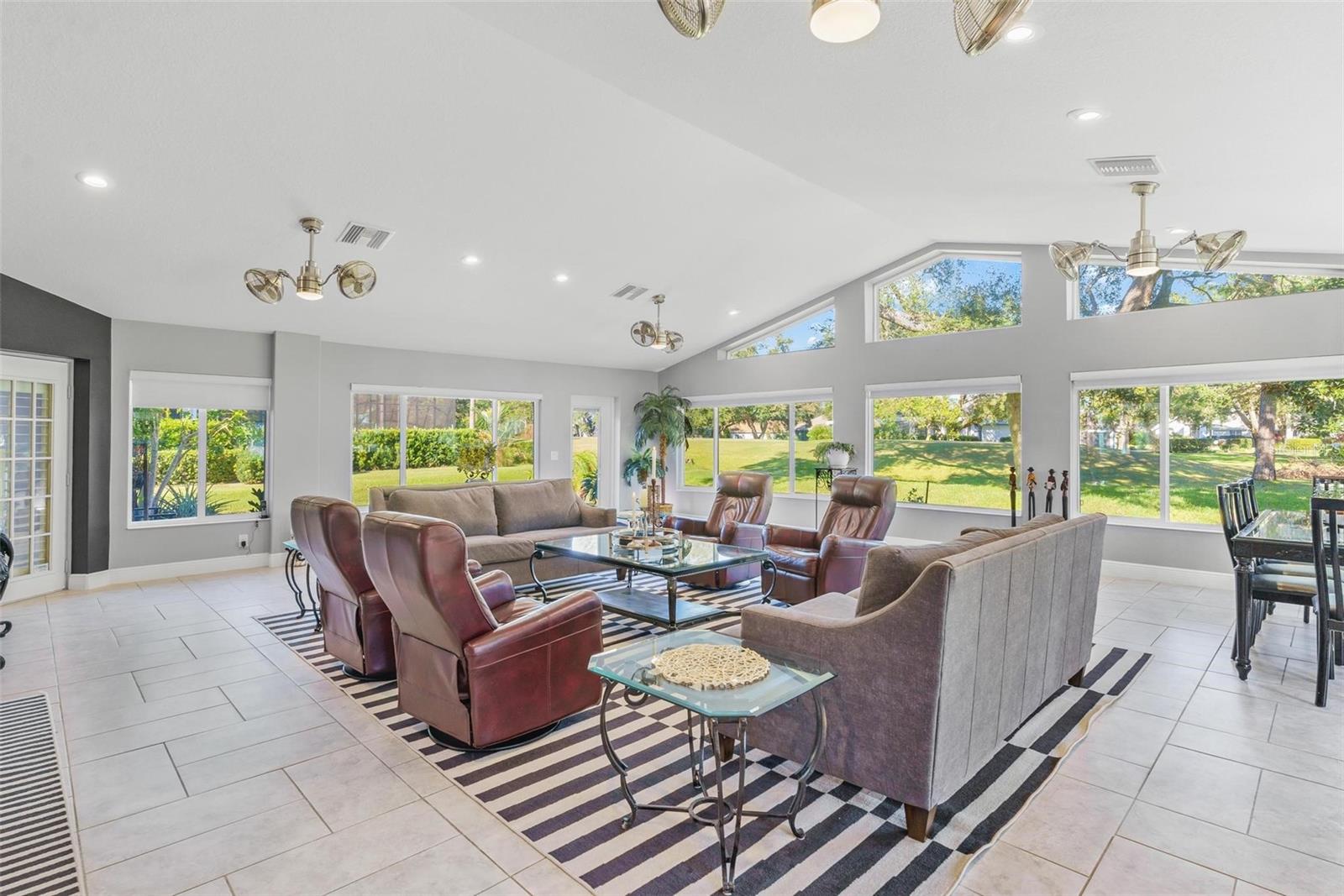 IMPRESSIONANTE CASA DE FRENTE DE GOLFE...MEIO ACRE! "Welcome Home" a esta residência excepcional, localizada no 15th Tee e originalmente construída em 1997 com os mais altos padrões e cuidadosamente remodelada e transformada em uma obra de arte impressionante! Esta casa com campo de golfe oferece uma mistura incomparável de luxo, conforto e estilo, perfeita para entretenimento e para a vida cotidiana. Você vai adorar a garagem enorme para 2 carros, além de uma garagem separada para carrinhos de golfe! Esta casa oferece uma adesão OPCIONAL ao Social e ao Clube por uma taxa separada, ao contrário de outras casas nesta comunidade de golfe!! Ainda aproveite o benefício e sinta-se "seguro e protegido" neste bairro GUARD GATED 24 horas por dia, 7 dias por semana! O vendedor adicionou recentemente um gerador automático "Generac" para toda a casa que garante energia ininterrupta para toda a sua casa! A adição de uma grande sala de 900 pés quadrados, projetada com paredes reforçadas e isoladas e janelas de impacto de 140 MPH foi adicionada, proporcionando vistas panorâmicas do campo de golfe de classe mundial! Este quarto espaçoso possui quatro ventiladores Pendersen duplos de 42 polegadas, sete persianas com controle remoto e quatro portas deslizantes que conectam perfeitamente a sala de estar, reunindo uma atmosfera interna e externa. A área de estar formal possui uma lareira elétrica controlada automaticamente para noites românticas em casa. Por toda parte, você encontrará sancas, rodapés elevados e lindos pisos de cerâmica 24x24. As janelas são adornadas com venezianas de madeira atualizadas para uma aparência clássica e atemporal. A cozinha é completa com armários planejados com garrafeira, bancada de quartzo, fogão a gás, geladeira Samsung e micro-ondas. A sala de jantar formal adiciona um toque de elegância, apresentando um armário personalizado construído em China com gavetas de estilo europeu e um impressionante espelho de 10' x 6'. A Suíte Primária é um "verdadeiro retiro" com portas francesas que levam à grande sala e um amplo banheiro. O banheiro inclui box amplo com jatos de parede, chuveiro com efeito de chuva e de mão, banheira de hidromassagem e vaso sanitário equipado com bidê. O closet profundo oferece amplo armazenamento. Grandes quartos, dois e três, compartilham um banheiro remodelado que apresenta um grande box amplo e penteadeira com bancada de mármore. Ao lado da lavanderia fica o conveniente lavabo para os hóspedes! A casa está repleta de atualizações para incluir clarabóias para iluminação natural adicional, sistema de aspiração central, circuito de 20 A, sistema de filtragem de água para toda a casa e antenas especiais no sótão que eliminam os custos de serviço de cabo. O fogão a gás e o aquecedor de água sob demanda aumentam a conveniência. Abundam as comodidades de alta tecnologia, incluindo abridores de porta de garagem Bluetooth com controle remoto e termostato. Aproveite o gramado paisagístico com árvores frutíferas como laranjeiras, limoeiros, limas, figueiras, toranjas, bem como plantas de mamão e abacaxi. Os recursos externos incluem detectores de movimento, holofotes e impressionantes faixas de luz de 6 pés que iluminam a entrada frontal e as portas da garagem. Localização conveniente minutos The Villages shopping…. Prepare-se para ser cativado por esta casa de tirar o fôlego!