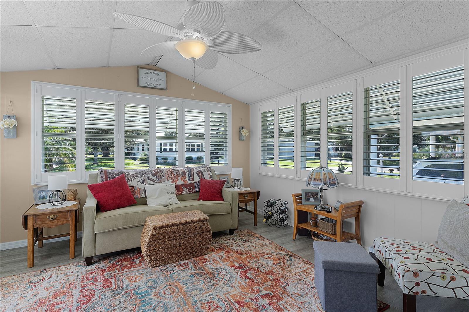 Bem-vindo à sua casa perfeita em The Villages! Esta é a sua chance de possuir sua casa e viver o estilo de vida The Villages SEM VÍNCULO e SEM CDD! Esta residência lindamente atualizada de 2 quartos e 2 banheiros oferece 1.300 pés quadrados de espaço bem projetado, ideal para conforto e entretenimento. A cozinha tem lindos armários brancos que oferecem muita arrumação e tem uma bancada perfeita para o seu café da manhã! O layout de conceito aberto cria um fluxo contínuo em toda a casa, tornando-a espaçosa e acolhedora. Com venezianas em toda a casa, permitem muita luz natural. Esta casa tem piso de vinil luxuoso para uma aparência elegante e moderna, fácil de limpar e manter. A espaçosa suíte master é o seu santuário privado, oferecendo muito espaço para relaxar. Fora da área de estar, você tem uma marquise/arrumos adicional que não só tem uma porta que leva ao pátio externo, mas também foi aprimorada com um charmoso porta deslizante do celeiro para oferecer flexibilidade para um escritório, sala de hobby ou retiro aconchegante. A sala de jantar dispõe de um armário/bar embutido, perfeito para receber amigos e familiares e para arrumação adicional! O quintal meticulosamente paisagístico é um espaço convidativo para reuniões ao ar livre ou relaxamento tranquilo e tem um apelo maravilhoso. A entrada pintada adiciona um toque adicional atraente de apelo ao meio-fio a esta casa já charmosa. Atualizações recentes, incluindo um telhado de telhas com 3 anos de idade, garantem tranquilidade e durabilidade a longo prazo. Você também encontrará uma garagem/oficina anexa para carrinhos de golfe, oferecendo espaço extra para armazenamento ou projetos, e um gerador doméstico Generac para manter as coisas funcionando perfeitamente, independentemente do clima. Não perca a oportunidade de torná-lo seu e agende sua visita hoje mesmo!
