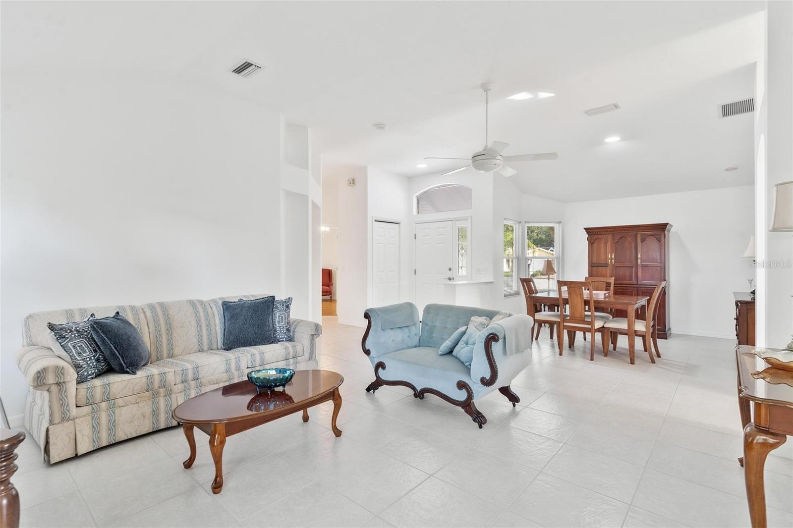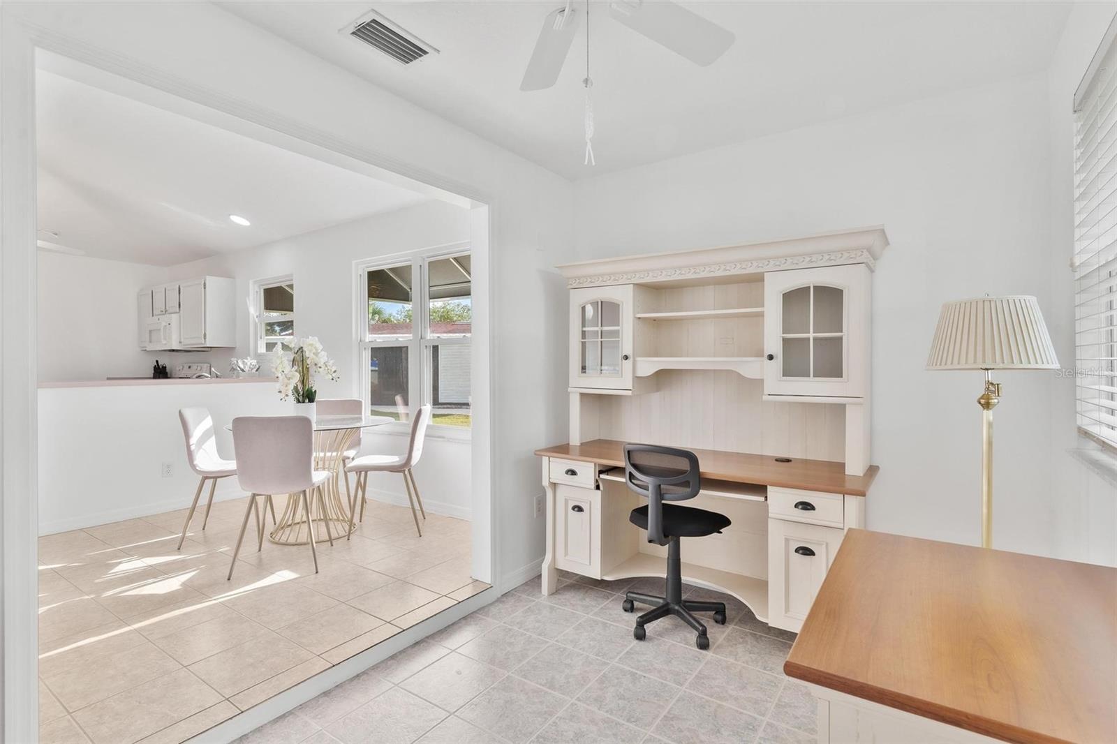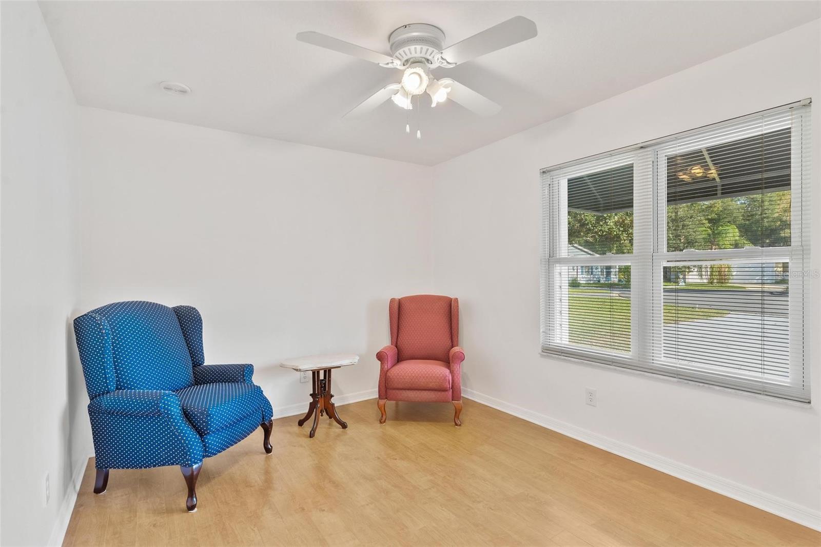Não perca este! Esta incrível casa em Villages está bem escondida em um beco sem saída aconchegante, tornando-a o lugar perfeito para dias tranquilos. Esta é uma casa maravilhosa e de fácil manutenção, com dois quartos e duas casas de banho, além de uma divisão adicional que pode facilmente ser um escritório ou arrumos. O quarto principal tem banheiro privativo com pias duplas e um espaçoso closet. O banheiro de hóspedes dispõe de banheira vertical. A cozinha tem um belo balcão para café da manhã e espaço para mesa, muitos armários e balcão e flui bem da garagem facilitando a entrega das compras! Falando em garagem, esta garagem de entrada lateral tem piso vedado e pode abrigar dois carros! Aproveite tudo o que Villages tem a oferecer, próximo à praça Spanish Springs e com muita comida e compras!