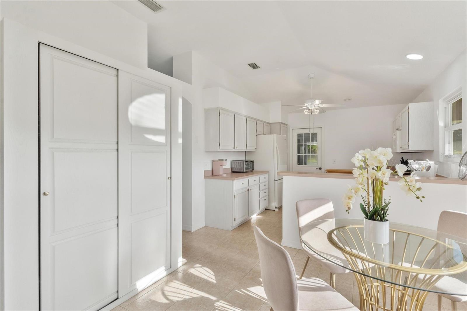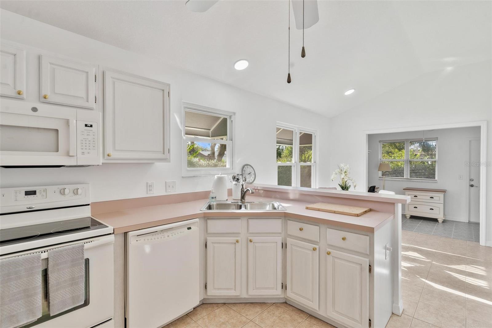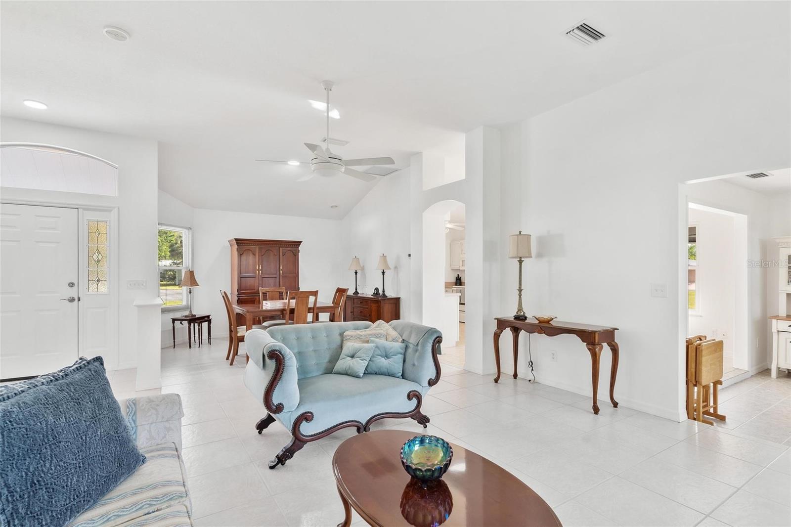 Não perca este! Esta incrível casa em Villages está bem escondida em um beco sem saída aconchegante, tornando-a o lugar perfeito para dias tranquilos. Esta é uma casa maravilhosa e de fácil manutenção, com dois quartos e duas casas de banho, além de uma divisão adicional que pode facilmente ser um escritório ou arrumos. O quarto principal tem banheiro privativo com pias duplas e um espaçoso closet. O banheiro de hóspedes dispõe de banheira vertical. A cozinha tem um belo balcão para café da manhã e espaço para mesa, muitos armários e balcão e flui bem da garagem facilitando a entrega das compras! Falando em garagem, esta garagem de entrada lateral tem piso vedado e pode abrigar dois carros! Aproveite tudo o que Villages tem a oferecer, próximo à praça Spanish Springs e com muita comida e compras!