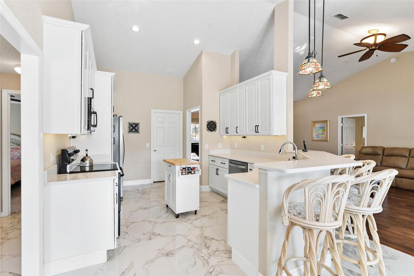 Vistas para o campo de golfe, vida à beira da piscina e mais de US$ 13.000 em atualizações externas - bem-vindo ao seu oásis em Harbour Hills! Esta deslumbrante casa com piscina fica em um terreno enorme com vista para o 17º fairway e oferece a combinação perfeita de elegância, conforto e estilo de vida da Flórida. Bem-vindo à casa dos seus sonhos no pitoresco e fechado condomínio de golfe de Harbour Hills! Esta deslumbrante casa com piscina de 3 quartos e 2 banheiros oferece mais de 2.100 pés quadrados de espaço bem projetado e está situada em um terreno de grandes dimensões com vistas deslumbrantes do 17º fairway. A partir do momento em que chegar, você se apaixonará pelas calçadas de tijolos que levam você até a convidativa entrada. No interior, a sala de jantar e de estar de conceito aberto recebe você com tetos altos, venezianas e elegante piso de madeira projetada, criando uma atmosfera iluminada e arejada. Para quem gosta de cozinhar e se divertir, a cozinha reformada é um empecilho. Possui elegantes bancadas de quartzo, armários com fechamento suave, despensa embutida com prateleiras removíveis e pisos de porcelanato mais recentes que se estendem até o recanto da cozinha. Este é um espaço onde tanto as refeições do dia a dia como os encontros especiais são extraordinários. A planta dividida garante privacidade, com a espaçosa suíte principal servindo como seu retiro pessoal. Este quarto possui tetos retangulares, carpetes aconchegantes e portas de correr que levam ao amplo quarto Florida. O banheiro privativo é igualmente luxuoso, oferecendo pia dupla, banheira de hidromassagem de jardim, box amplo e closet generoso. Dois quartos adicionais estão localizados no lado oposto da casa, juntamente com um banheiro de hóspedes bem equipado com uma combinação de banheira e chuveiro. Saia para o seu paraíso particular! A Sala Florida, que se estende por quase toda a extensão da casa, convida à luz natural e oferece vistas panorâmicas sobre o campo de golfe. Um pouco além, a área da piscina com deck de tijolos é perfeita para relaxar ou organizar festas à beira da piscina. Há até um pátio aberto adjacente para tomar sol ou grelhar. As atualizações práticas incluem uma casa reformada, um novo filtro de piscina, uma cozinha lindamente remodelada e muito mais. A garagem para 2 carros e a despensa interna agregam comodidade e funcionalidade a esta incrível casa. Viver em Harbor Hills é mais do que apenas ter uma casa própria; é um estilo de vida. Com acesso fechado 24 horas por dia, 7 dias por semana e associações opcionais, golfe ou associação social podem ser adicionadas por taxas adicionais para incluir clubhouse, campo de golfe, piscina, centro de fitness e quadras de tênis, etc., você se sentirá como se estivesse de férias todos os dias. Não perca a oportunidade de chamar esta casa deslumbrante de sua! Agende sua exibição privada hoje e experimente a combinação perfeita de elegância, conforto e comunidade.