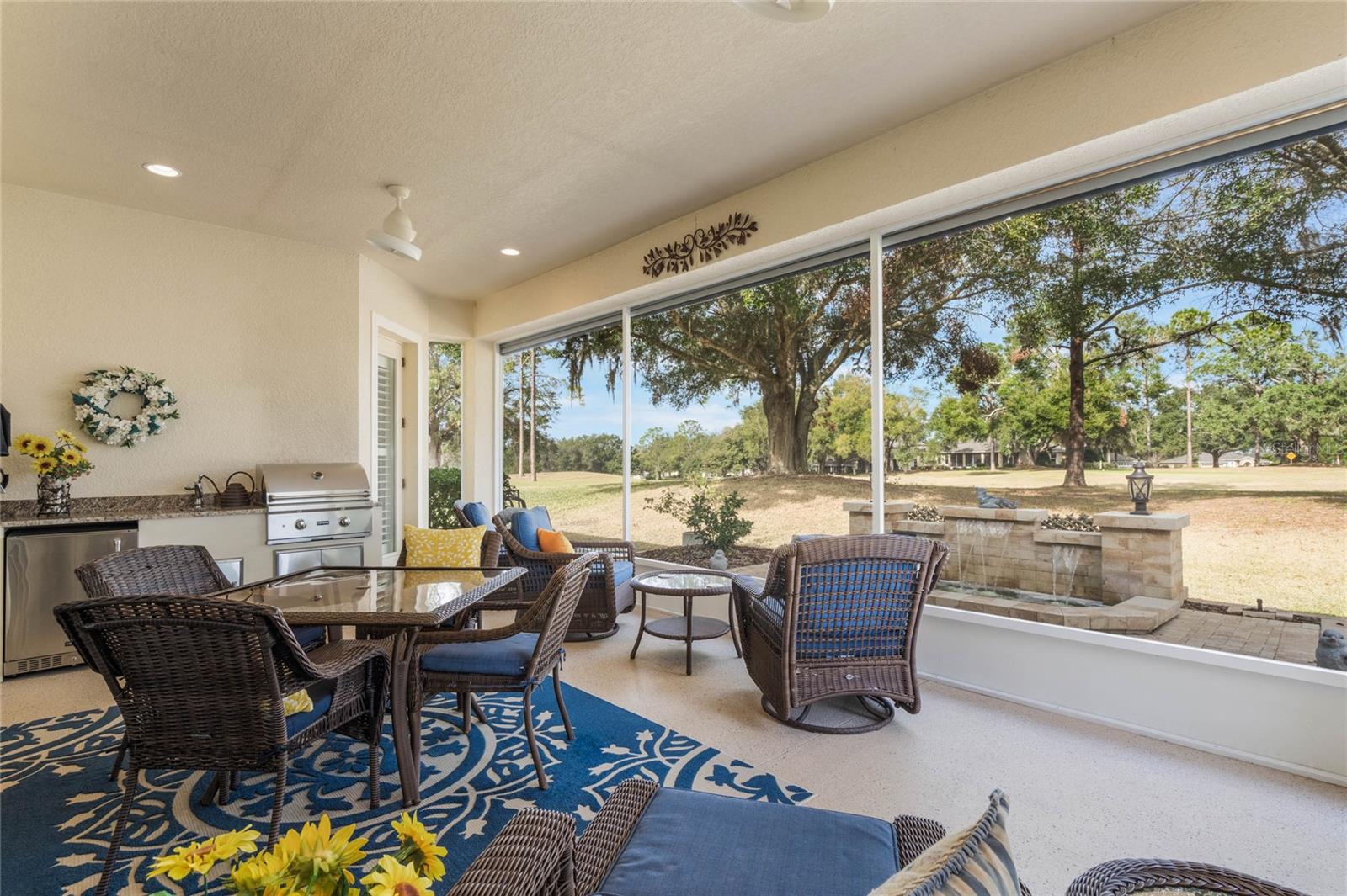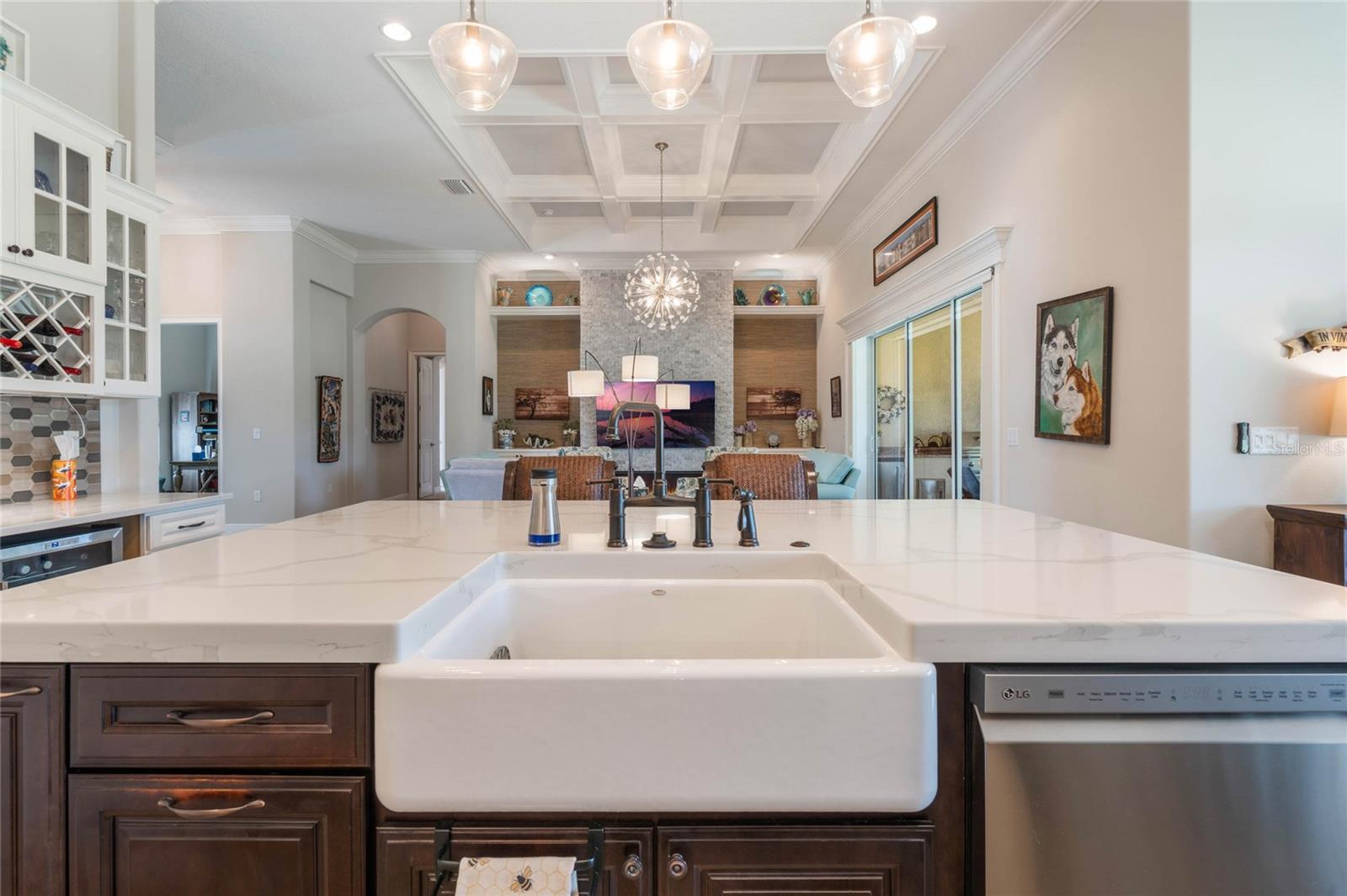 Elegante casa de campo de golfe com design excepcional e vistas serenas. Situada em um tranquilo campo de golfe, esta deslumbrante casa de 2.768 pés quadrados oferece uma combinação perfeita de luxo, funcionalidade e tranquilidade. Com 3 quartos, uma sala, 2,5 casas de banho e garagem para 3 carros, esta residência cuidadosamente desenhada é ideal para quem procura um estilo de vida requintado mas confortável. Ao entrar, você notará imediatamente os tetos altos adornados com sancas e uma bela iluminação que aumentam a sensação de espaço e elegância da casa. A planta aberta conecta perfeitamente a sala de estar à varanda através de amplas portas de vidro deslizantes, criando um espaço excepcional para entretenimento ou simplesmente desfrutar das vistas deslumbrantes do campo de golfe e da cachoeira iluminada personalizada. A cozinha gourmet é um verdadeiro empecilho, com armários personalizados, bloco de açougueiro de quartzo, uma pia profunda de fazenda, uma grande ilha e uma aconchegante copa iluminada por uma janela saliente de vidro que fornece ampla luz natural e tem vista para a terceira caixa de tee. A suíte master é um retiro privado, completo com um luxuoso banheiro que inclui um amplo chuveiro, banheira de imersão e penteadeiras separadas para ele e para ela. O banheiro Jack-and-Jill, compartilhado pelos quartos secundários, oferece acesso privativo e possui espelhos personalizados e portas de box de vidro que adicionam um toque de sofisticação. Detalhes arquitetônicos exclusivos, como uma pia iluminada no lavabo e paredes amplas perfeitas para exibir arte, elevam ainda mais o design desta casa. Saia para a varanda com tela, onde uma cozinha externa embutida o aguarda, tornando-o o espaço ideal para refeições ao ar livre ou relaxar ao ar livre. O jardim paisagístico, realçado por uma romântica cascata iluminada, contribui para o ambiente sereno desta propriedade. Persianas e telas remotas elétricas proporcionam estilo e funcionalidade, enquanto o gerador automático para toda a casa garante tranquilidade. A praticidade encontra a elegância com amplo armazenamento em toda a casa, incluindo gavetas removíveis profundas, despensa e armários personalizados. A espaçosa lavanderia e a despensa separada proporcionam conveniência e versatilidade adicionais. A garagem para 3 carros foi projetada pensando nas necessidades modernas, com tomadas de carregamento elétrico de fácil acesso e muito espaço para veículos e armazenamento. Localizada num bairro tranquilo que exala beleza e serenidade, esta casa faz parte de uma comunidade ativa e sociável que oferece um equilíbrio perfeito entre tranquilidade e envolvimento. Cada detalhe desta casa foi meticulosamente elaborado para proporcionar um estilo de vida de conforto, beleza e sofisticação. Agende hoje mesmo o seu tour privado e experimente o charme excepcional desta notável casa com campo de golfe.
