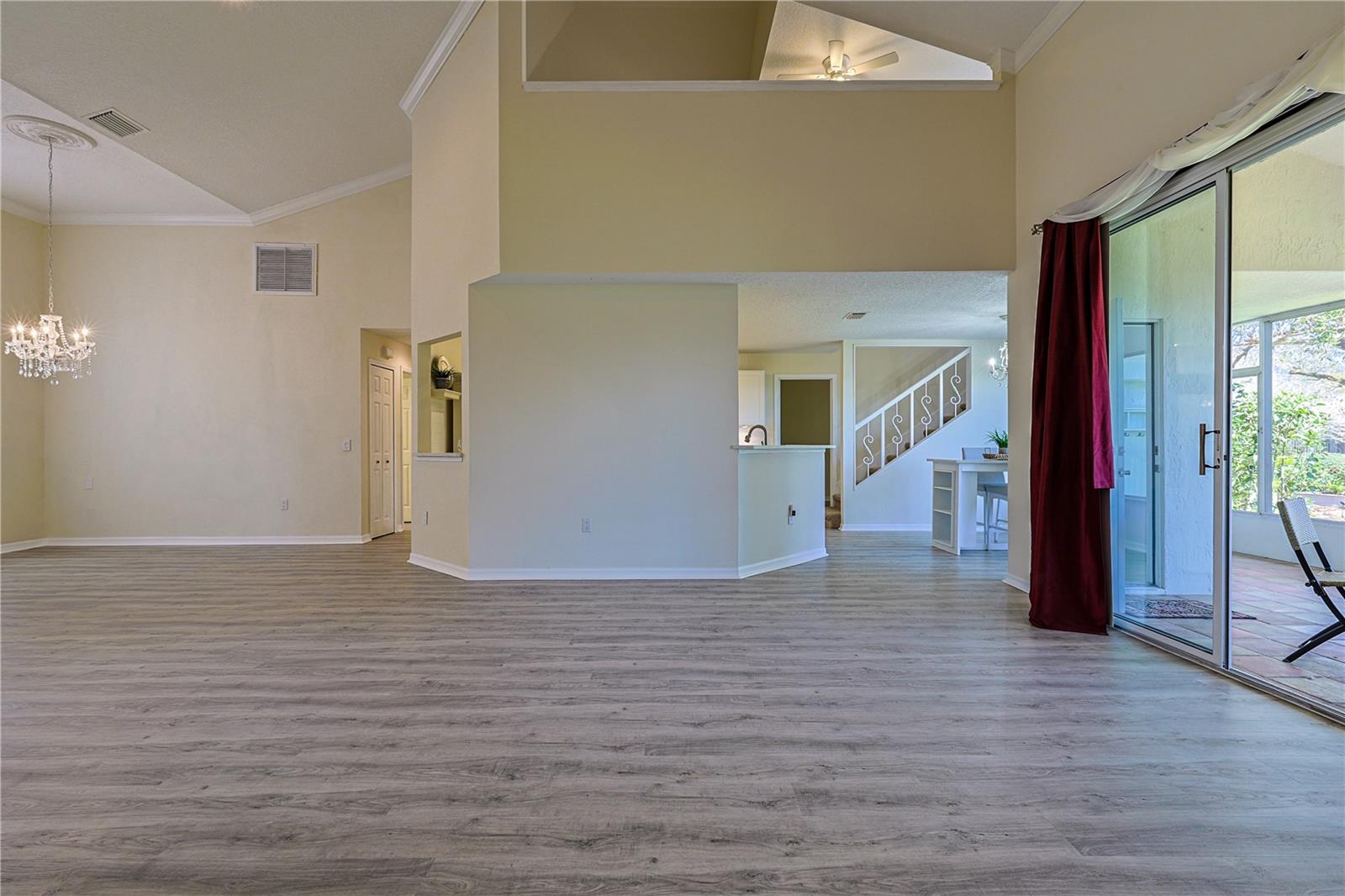 Assumável 2,5% de hipoteca ------ Desfrute de um ambiente tranquilo e relaxante na bela comunidade de golfe e clube de campo de Harbor Hills. Esta casa de dois quartos e meio e meio tem uma sala de bônus no andar de cima com um armário e pode servir como um quarto extra, se necessário. Entrando em casa, você encontrará um escritório à direita, que também possui um armário. À esquerda da entrada, você encontra a sala de jantar formal que abre para a sala da família. Este espaço tem tetos de volume e abre para Lanai. A cozinha é brilhante e alegre e oferece balcões de quartzo, armários e gavetas tranquilos e uma pia inteligente ativada por toque. A área do café da manhã, logo após a cozinha, possui boas janelas, oferecendo luz natural e uma vista suave. A suíte primária do tamanho king está à direita da casa e possui uma porta de vidro deslizante que se abre para o Lanai, tetos de volume, um grande armário com INS construídos e um armário de sapatos personalizado. O banho primário tem as vaidades dele e de quartzo, banheira de jardim e chuveiro separado. A suíte de convidados detém dois quartos grandes, ambos com seus próprios armários com acesso ao banheiro de Jack e Jill, completo com um chuveiro de azulejos. Em 2019, um meio banheiro foi adicionado fora da garagem na lavanderia. A garagem lateral expandida tem espaço suficiente para seus veículos e para uma oficina. O telhado foi substituído em 2016, o novo HVAC 2024, os pontos de venda elétricos foram atualizados, um descalador de água instalado e iluminação de dossel em um cronômetro adicionado fora e a casa foi re-pipe em 2025. A casa tem ventiladores de teto, moldagem por coroa, janelas de imagens da sala de café da manhã, piso atualizado e muito mais. A Comunidade Harbor Hills possui um campo de golfe de campeonato parorativo de Lloyd Clifton, piscina de tamanho olímpico, bola de raquete, pickleball e acesso ao lago Griffin na cadeia de lagos. As associações sociais e de golfe estão disponíveis. A comunidade fica a poucos minutos das aldeias para desfrutar de entretenimento, compras, restaurantes e muito mais. Não espere, ligue hoje para sua turnê pessoal por esta incrível casa.