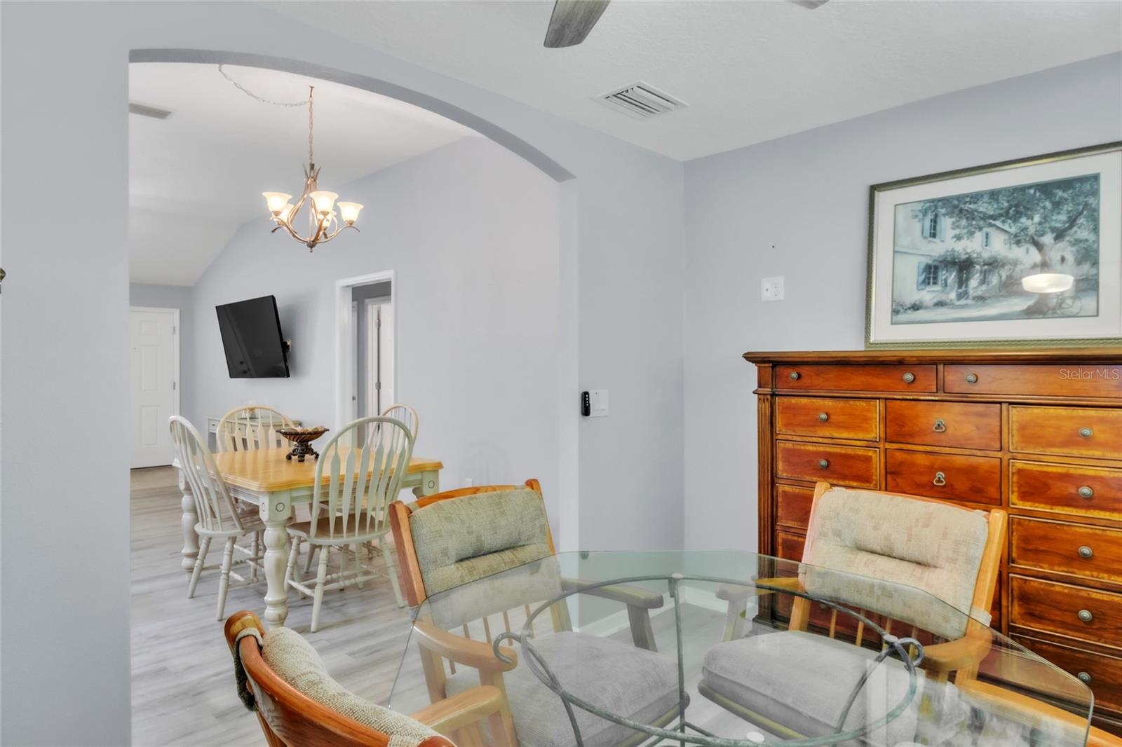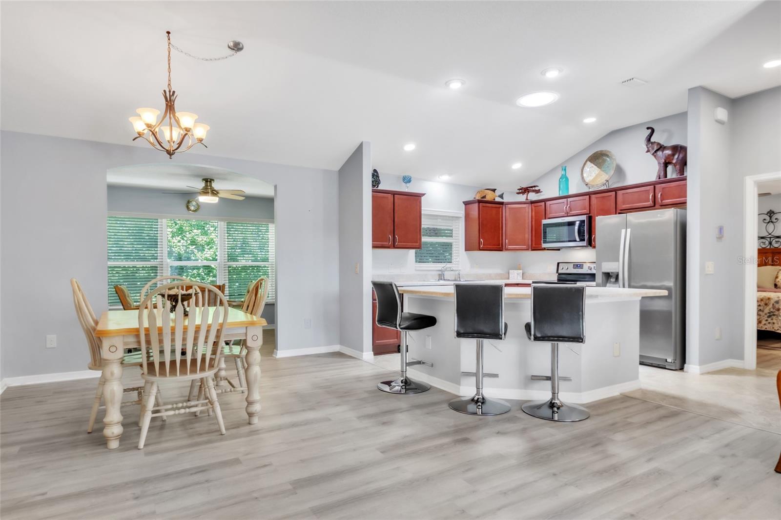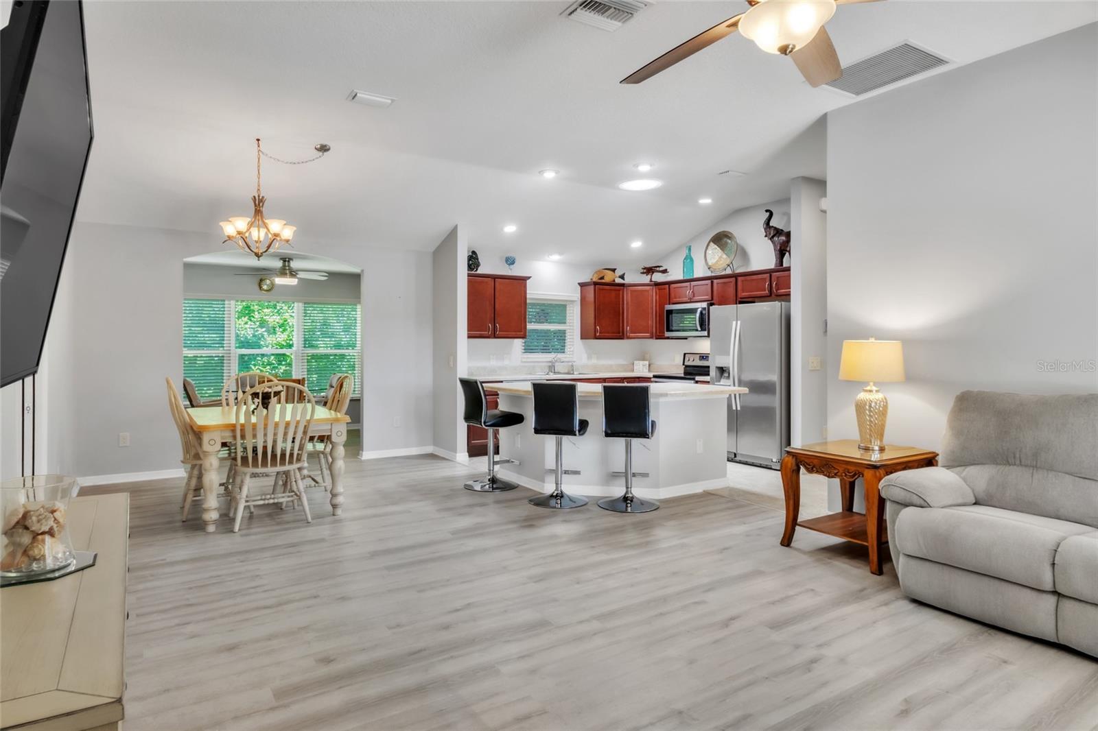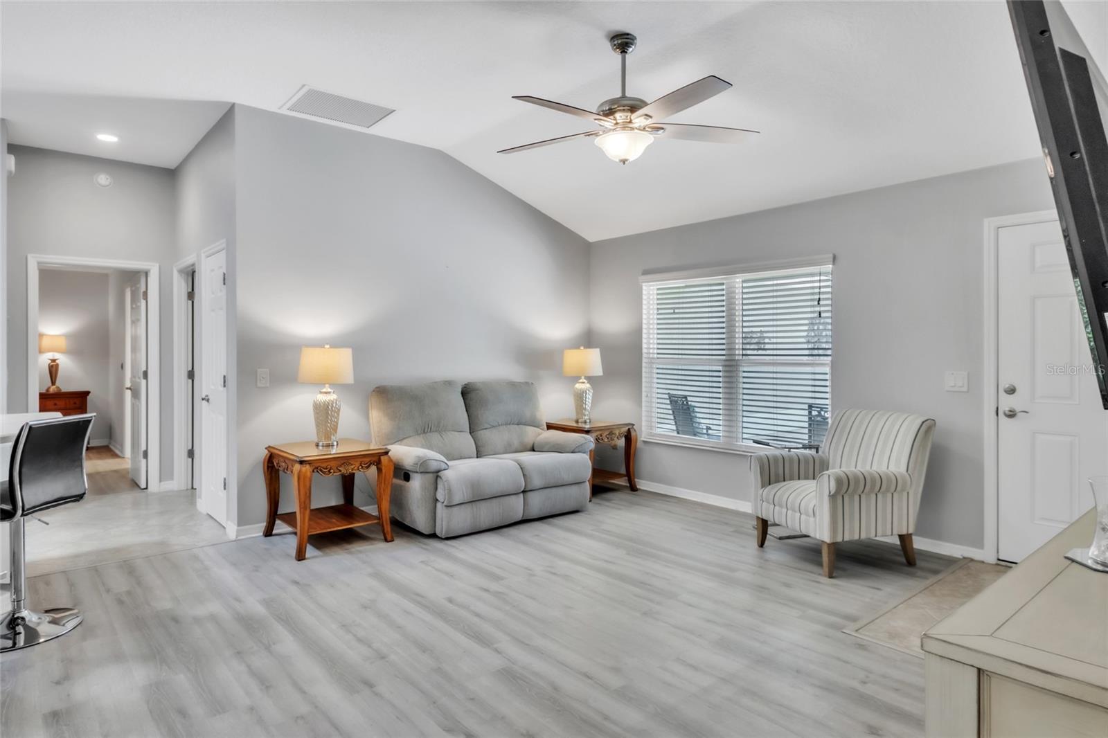 Sem vínculo. Casa de designer 3BR/2B Turn-Key em Spanish Springs! Bem -vindo à casa dos seus sonhos em Orange Blossom Gardens, localizado no coração da histórica área de Spanish Springs das aldeias, na Flórida. Este impressionante 1.599 pés quadrados. A antiga casa de modelos foi projetada para facilitar a vida em uma comunidade de mais de 55 anos. Apresentando um piso plano aberto, tetos de volume e uma cozinha espaçosa com uma ilha central, é perfeita para entreter os hóspedes. Relaxe no seu pátio coberto privado com vista para o paisagismo maduro sem vizinhos traseiros ou desfrute do convidativo pátio da frente pavimentada. A casa também inclui lavanderia dentro, além de uma lavadora e secadora por conveniência. Sem HOA e taxas baixas de comodidades, você vai adorar o passeio de carrinho de golfe fácil até a Espanish Springs Square, onde restaurantes, compras, entretenimento e instalações médicas estão ao seu alcance. Aproveite as abundantes comodidades da comunidade, incluindo campos de golfe, centro de recriações, piscinas e muito mais. Experimente o estilo de vida que você sempre quis! Viva sua melhor vida nas aldeias.
