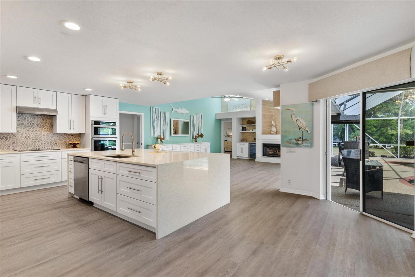 ROOM FOR EVERYBODY" GOLF FRONTAGE POOL HOME! Enjoy "Resort Style Living" feeling safe and secure 24/7 in this guard gated, sought after, all age Golf Community where luxury meets tranquility! Minutes from the Villages, residents have convenient access to world-class shopping, dining, and entertainment. This custom, newly remodeled home blends timeless elegance with Florida charm. Set on a beautifully elevated half-acre lot overlooking the 15th tee of O campo de golfe, oferece uma rara combinação de privacidade, espaço e vistas panorâmicas. Área de mistura de vida interna e externa sem problemas, uma sala de jantar formal é perfeita para reuniões de família e celebrações de férias, enquanto o escritório em casa adjacente-com bosques personalizados e espaço para a mesa-os invasores de invasão de água, com o que há de um pouco de aço. lareira, bar molhado embutido e conforto casual-um espaço ideal para entretenimento ou desenrolamento. Em uma forma de L ", fornecendo vistas e acesso à piscina de quase todos os quartos por meio de quatro conjuntos de portas deslizantes-inundando o interior com luz natural e criando um fluxo interno sem esforço.