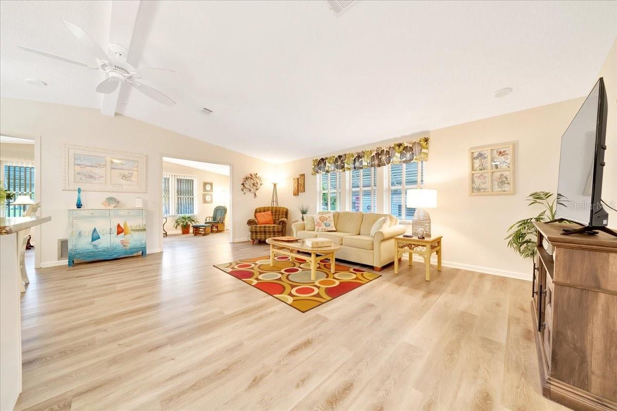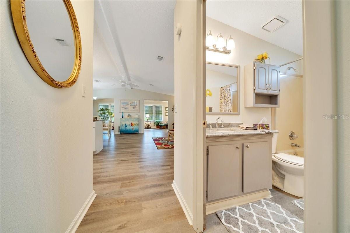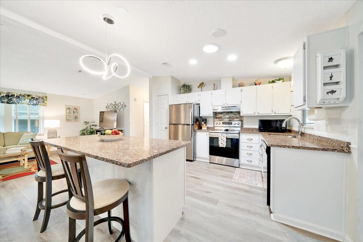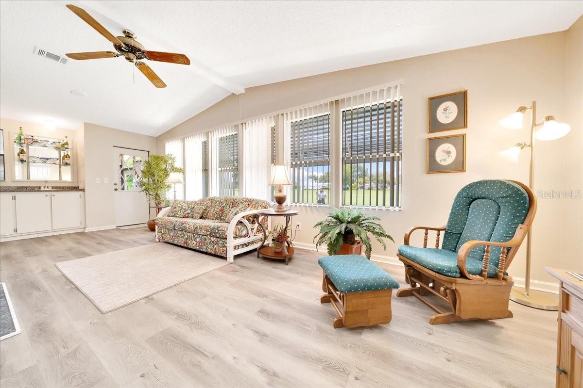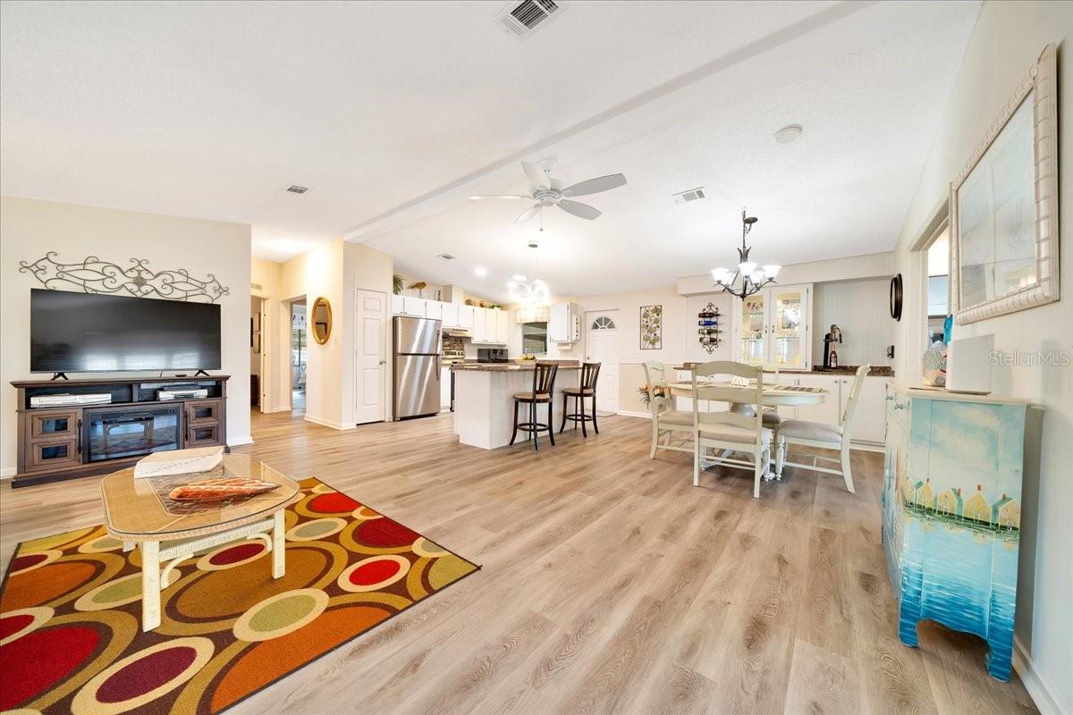 Bem-vindo a esta casa lindamente remodelada de 2 quartos e 2 banheiros no coração de Country Club Hills, nas aldeias, com vista para o 18º buraco do campo de golfe no topo da colina. Atualizado e remodelado com bom gosto, esta espaçosa casa apresenta pisos de vinil de luxo por toda parte, bancadas de quartzo e utensílios de aço inoxidável atualizados na cozinha, bancadas de granito e chuveiro primário atualizado e armários atualizados nos dois banheiros. Você vai adorar a sensação brilhante e aberta criada pelos tetos de knockdown abobadados na área de estar principal, tinta atualizada e luz natural que entra em dois tubos solares e uma clarabóia na suíte primária. O Den Flexible/Surra da Surra faz o escritório em casa perfeito, a sala de hobby ou o espaço adicional - COMPLETO COM VIELHAS DE Golfe. Saia para o recurso de destaque: um lanai com vista para o fairway, atualmente criado como um bar ou retiro de bônus, oferecendo o espaço final para relaxar ou entreter com um belo cenário. Os recursos adicionais incluem uma garagem de 2 carros de grandes dimensões, uma grande garagem para lavanderia/carrinho de golfe com espaço na oficina e a tranquilidade que vem com as principais atualizações do sistema: teto (2022), HVAC (2022) e aquecedor de água (2020). Esteja você procurando uma residência em tempo integral ou uma escapada sazonal, esta casa oferece conforto, conveniência e potencial de renda de aluguel. Ensanado entre a piscina do topo da colina e o clube de campo e a piscina de Blossom Hills de Orange Blossom! Não perca - escapou sua exibição particular hoje!