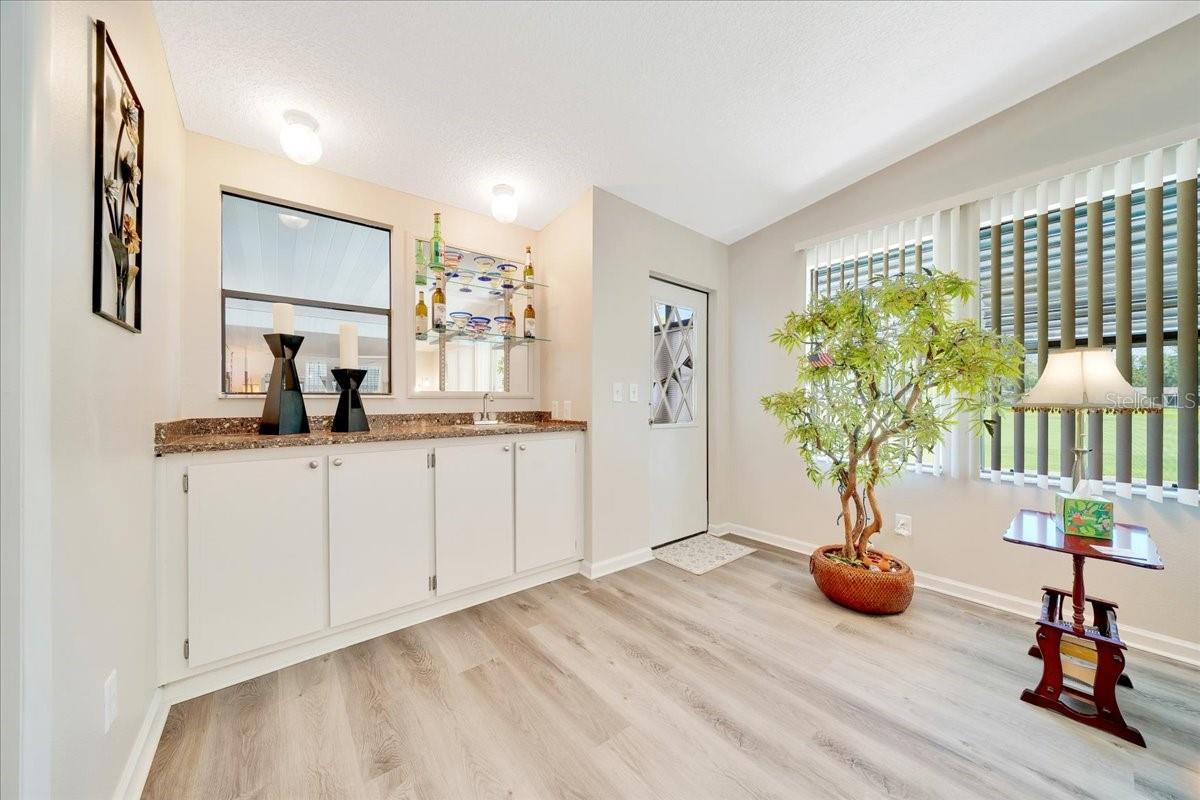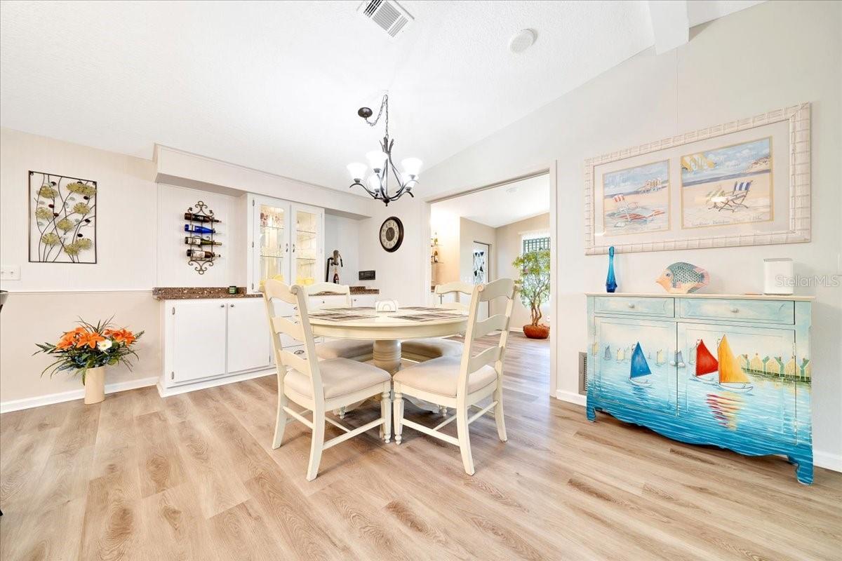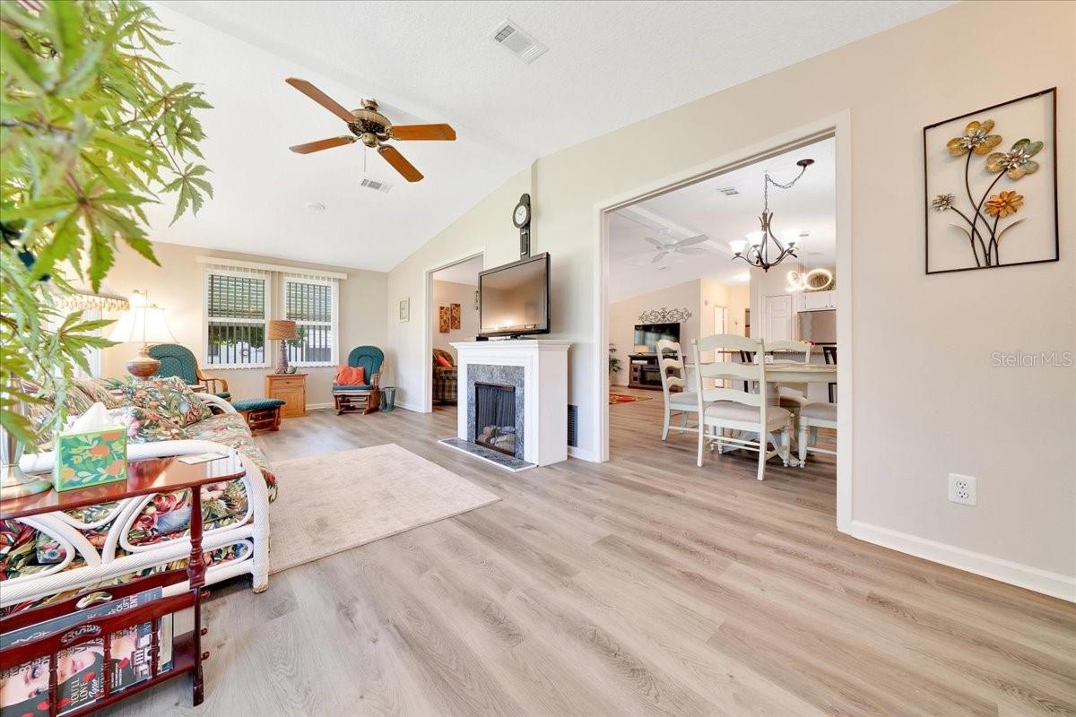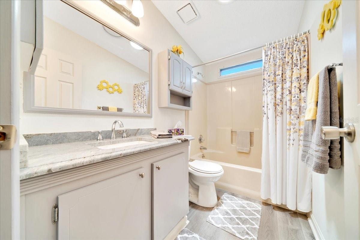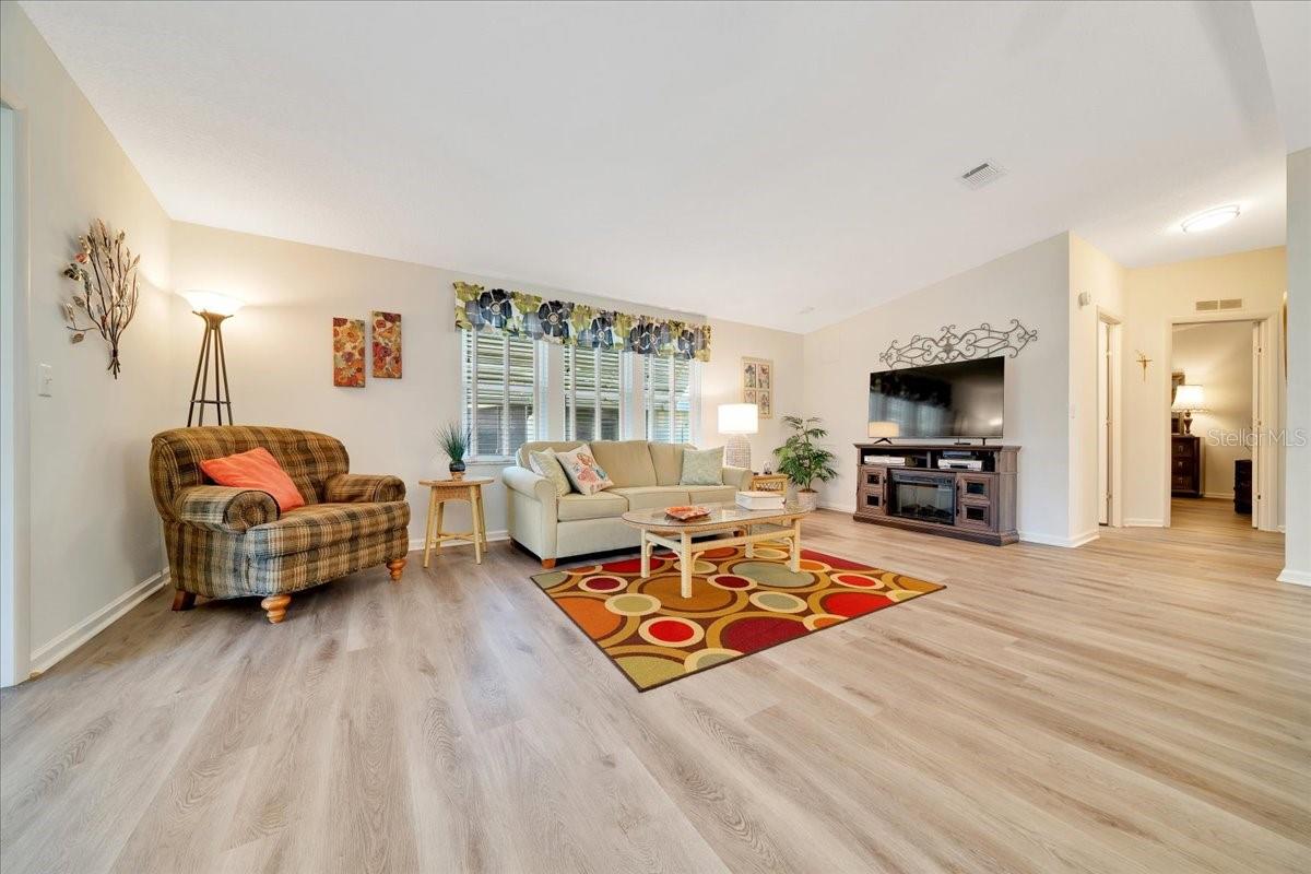 Bem-vindo a esta casa lindamente remodelada de 2 quartos e 2 banheiros no coração de Country Club Hills, nas aldeias, com vista para o 18º buraco do campo de golfe no topo da colina. Atualizado e remodelado com bom gosto, esta espaçosa casa apresenta pisos de vinil de luxo por toda parte, bancadas de quartzo e utensílios de aço inoxidável atualizados na cozinha, bancadas de granito e chuveiro primário atualizado e armários atualizados nos dois banheiros. Você vai adorar a sensação brilhante e aberta criada pelos tetos de knockdown abobadados na área de estar principal, tinta atualizada e luz natural que entra em dois tubos solares e uma clarabóia na suíte primária. O Den Flexible/Surra da Surra faz o escritório em casa perfeito, a sala de hobby ou o espaço adicional - COMPLETO COM VIELHAS DE Golfe. Saia para o recurso de destaque: um lanai com vista para o fairway, atualmente criado como um bar ou retiro de bônus, oferecendo o espaço final para relaxar ou entreter com um belo cenário. Os recursos adicionais incluem uma garagem de 2 carros de grandes dimensões, uma grande garagem para lavanderia/carrinho de golfe com espaço na oficina e a tranquilidade que vem com as principais atualizações do sistema: teto (2022), HVAC (2022) e aquecedor de água (2020). Esteja você procurando uma residência em tempo integral ou uma escapada sazonal, esta casa oferece conforto, conveniência e potencial de renda de aluguel. Ensanado entre a piscina do topo da colina e o clube de campo e a piscina de Blossom Hills de Orange Blossom! Não perca - escapou sua exibição particular hoje!