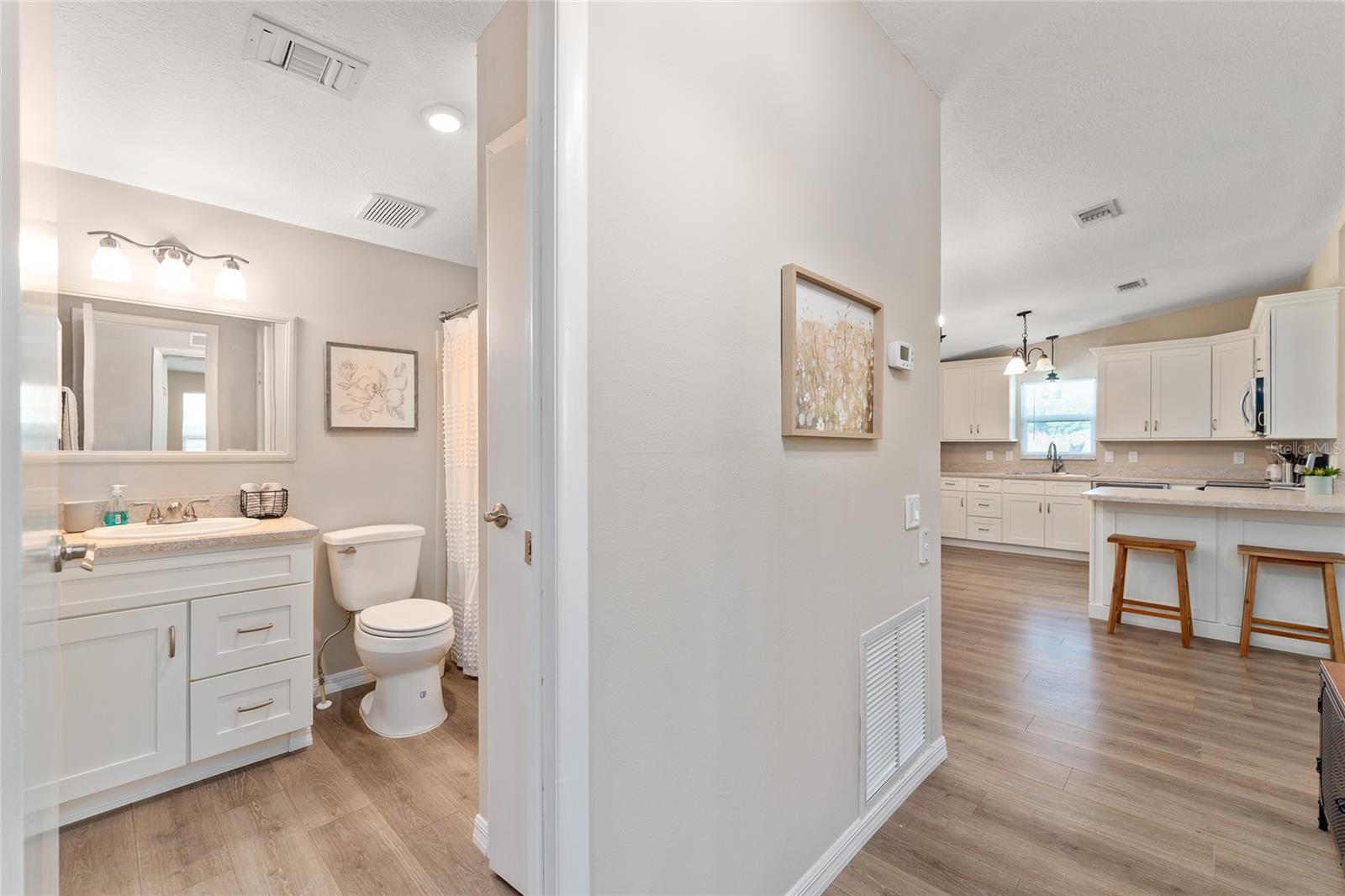 Lindamente remodelada Casa de chave em The Village of Country Club Hills. Bem -vindo a esta casa imaculada e totalmente remodelada, idealmente localizada no coração das aldeias - apenas a poucos passos da piscina e da estação postal. Situado em um lote lindamente bem cuidado, esta jóia pronta para mover-se oferece mais de 1.040 pés quadrados de espaço de vida cuidadosamente projetado com uma planta aberta altamente procurada. Etapa dentro e você imediatamente notará a sensação brilhante e arejada criada por tetos de knockdown abobadados e uma abundância de luz natural. The updated kitchen is a true highlight, featuring 36" soft-close upper cabinets, sleek newer stainless steel appliances, and an inviting layout perfect for entertaining.This charming home features 2 spacious bedrooms and 2 updated bathrooms, both boasting adult-height vanities and toilets for added comfort. The generous primary suite includes a walk-in closet to keep your space organized and clutter-free. Additional features include: 2021 Roof for peace of mind, 2016 A/C E o sistema de aquecimento, lavanderia/lavanderia com amplo armazenamento, garagem do carrinho de golfe anexada, lindamente exibida em laná-perfeita para o café da manhã ou relaxamento da noite. Living. E ele está sendo vendido completamente a mão-basta trazer sua mala, não perca esta oportunidade-shedule sua exibição particular hoje e comece a viver o estilo de vida que você sonha!