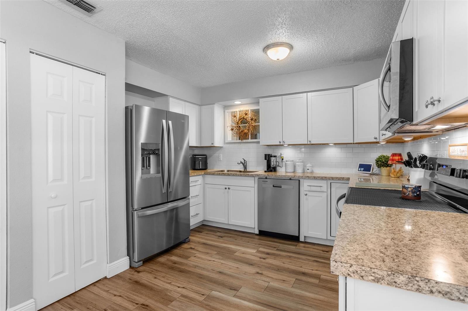 Pristinemente mantinha a casa de 4 quartos e 1 banheiro localizada em um beco sem saída na subdivisão de April Hills de Lady Lake. Esta casa vem com uma garantia de 13 meses! Esta casa imaculada oferece uma planta baixa, com pisos laminados encantadores na área de estar e uma bonita parede de destaque. A área de cozinha/jantar aberta possui novos utensílios de aço inoxidável, espaço abundante no armário, bem como uma grande despensa para armazenamento extra. Uma área de lavadora e secadora interna acrescenta conveniência extra. O quintal de grandes dimensões e cercado oferece muito espaço para reuniões ou animais de estimação e possui um galpão de armazenamento útil para inicializar. O A/C foi substituído em 2020. O aquecedor de água substituído em 2021. Esta casa é conveniente para Leesburg e todas as comodidades das aldeias.