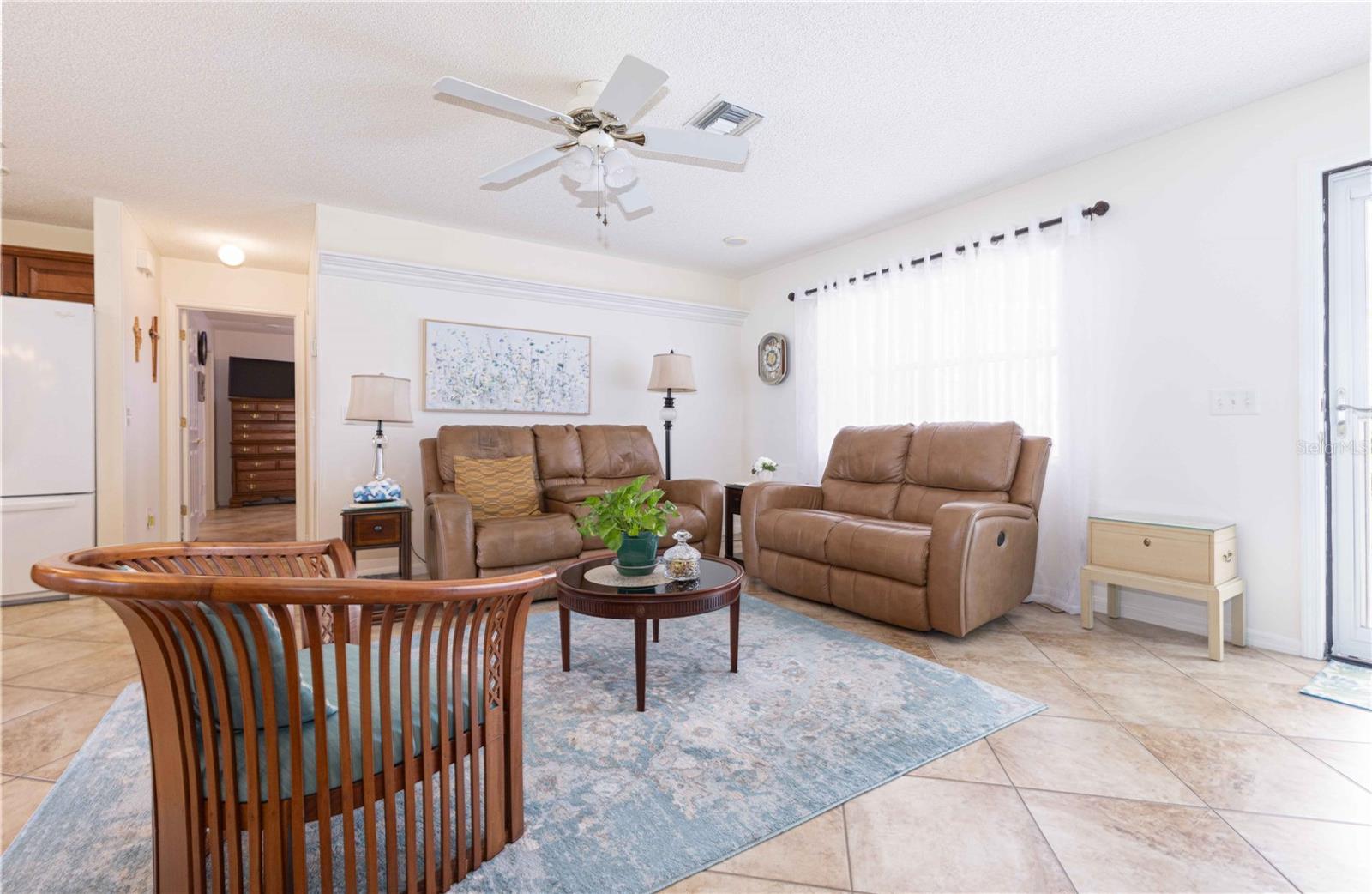 !!!SEM VÍNCULO!!!Entre nesta encantadora e meticulosamente mantida casa de 3 quartos e 2 banheiros situada no lado histórico das aldeias. Da varanda, você será recebido por vistas tranquilas do campo de golfe, emolduradas por árvores maduras que criam um cenário sereno. Perfeitamente posicionado a apenas um passeio de carrinho de golfe do Orange Blossom Hills Country Club e do Paradise Recreation Center, ele combina facilmente conveniência com estilo de vida. Você notará imediatamente as atualizações e cuidados atenciosos colocados nesta casa. O belo piso de cerâmica flui por todas as áreas de estar, combinado com acabamentos claros e frescos. A cozinha se destaca - lindos armários de madeira, bancadas de granito reluzentes e um elegante backsplash de azulejos acrescentam elegância e praticidade. Uma grande ilha central oferece o centro perfeito para entretenimento, preparação de refeições ou reuniões casuais. Ambos os banheiros foram renovados com bom gosto, oferecendo uma estética moderna e limpa. E com três quartos confortáveis, você tem flexibilidade para um home office, quarto de hóspedes ou espaço criativo. Do lado de fora, a varanda é o seu refúgio para relaxar ou se divertir - imagine um café da manhã ou coquetéis à noite com vista para o campo de golfe. A área de serviço está convenientemente escondida na despensa ao lado da garagem, mantendo as tarefas diárias fora de vista. Esta casa está pronta para morar - para começar a desfrutar das comodidades do The Villages desde o primeiro dia. Conforto, estilo e funcionalidade aguardam - agende hoje mesmo sua exibição privada e descubra o que torna esta casa tão especial.