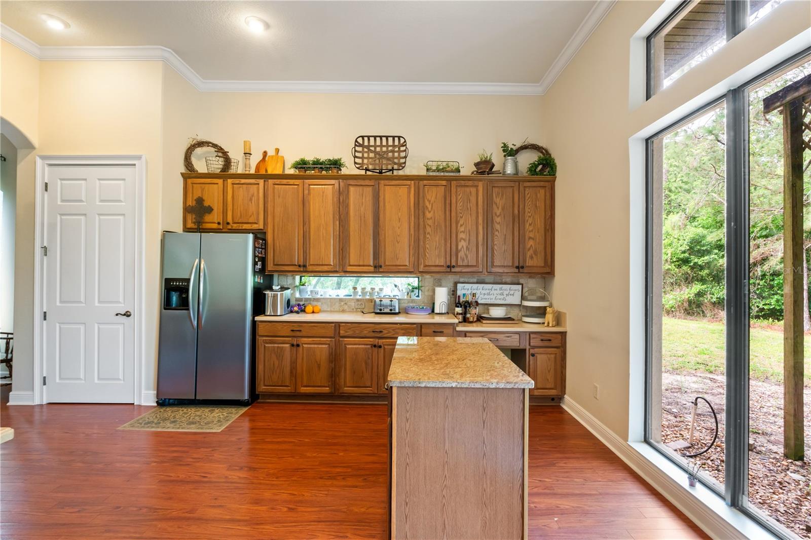 Casa espaçosa e bem conservada de 3 quartos + salão e 2,5 banheiros situada em um terreno privado de meio acre com vista para florestas serenas e um campo de golfe - sem casas em nenhum dos lados para privacidade excepcional. A partir do momento em que chegar, você apreciará a calçada de tijolos, a passarela e a charmosa entrada do pátio que leva a um amplo e acolhedor hall de entrada. No interior, a casa apresenta uma planta dividida cuidadosamente projetada, incluindo um banheiro secundário Jack-and-Jill e uma suíte principal de tamanho generoso com armários duplos. O banheiro principal oferece áreas de pia separadas para ele e ela, uma banheira de imersão relaxante e um box amplo. A cozinha está bem equipada com uma ilha, bancadas de superfície sólida, eletrodomésticos de aço inoxidável e uma conveniente área de mesa embutida, tudo abrindo para uma espaçosa sala de estar com tetos altos e sancas elegantes - perfeita para entretenimento ou para a vida cotidiana. Saia para desfrutar da ampla varanda de tijolos com uma área coberta com balcão estilo bar, armários e pia, e abertura para uma grande gaiola - ideal para reuniões ao ar livre enquanto desfruta de vistas tranquilas. Os destaques adicionais incluem uma garagem lateral para 2 carros e carrinho de golfe com escadas retráteis no sótão, uma lavanderia separada e piso cerâmico durável e laminado por toda parte - sem carpete em qualquer lugar. As principais atualizações incluem um novo telhado (2025), sistema HVAC (2017) e aquecedor de água (2021), oferecendo tranquilidade nos próximos anos. Esta casa combina espaço, privacidade e atualizações atenciosas - pronta para você morar e aproveitar!
