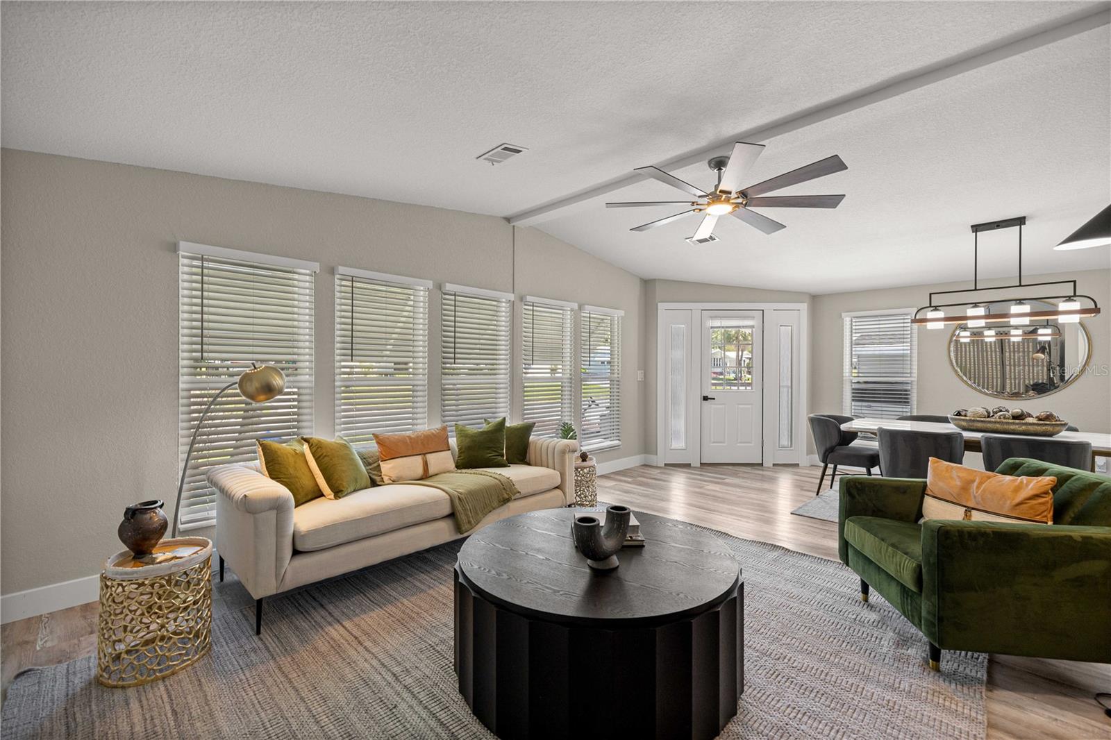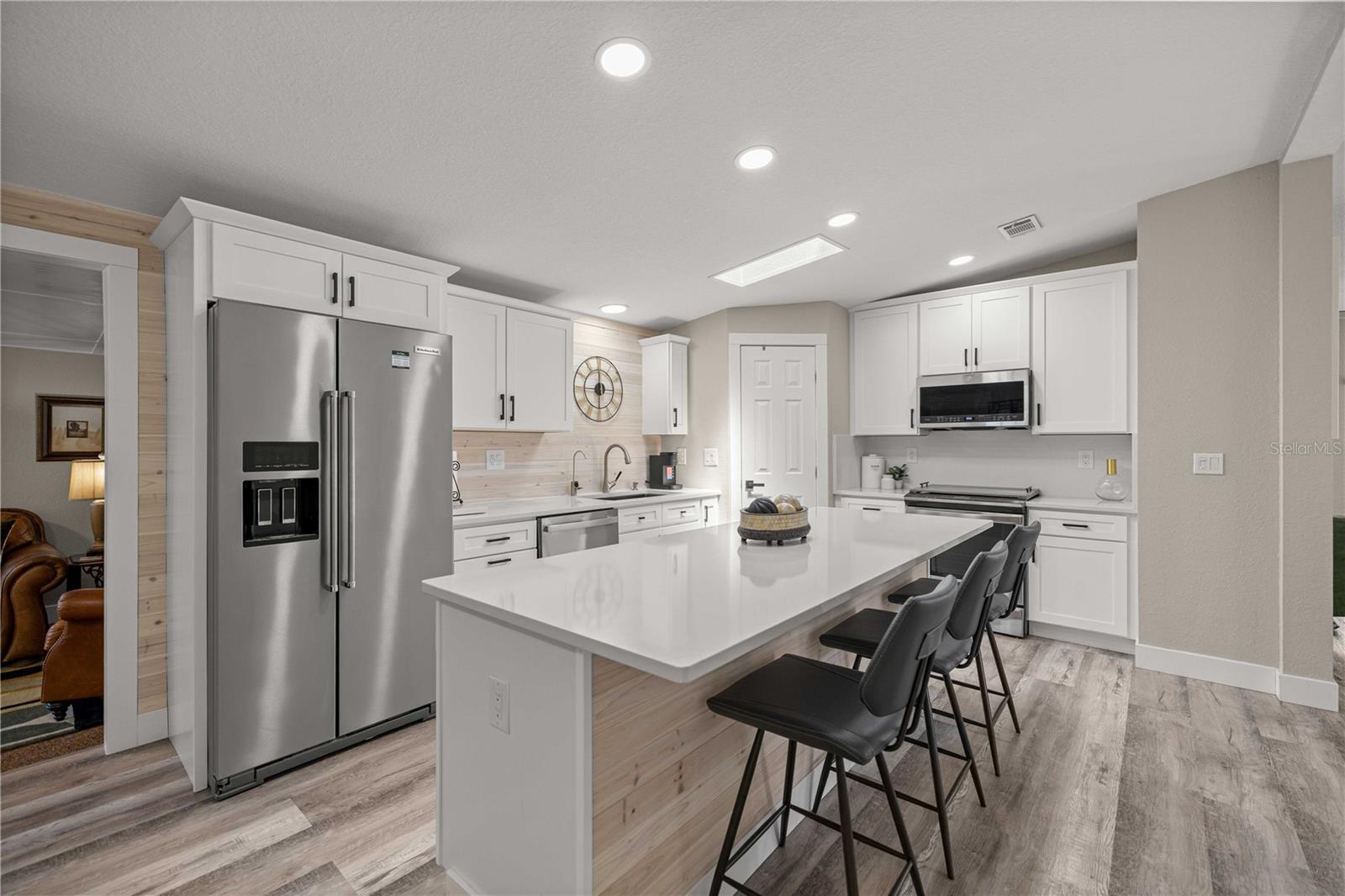CASA TOTALMENTE REFORMADA CHAVE NA MÃO ~ PRONTA PARA MUDAR! Esta deslumbrante casa de 2 quartos e 2 banheiros oferece 1.641 pés quadrados de área útil lindamente atualizada (2.628 no total) e está perfeitamente posicionada com vista para o par 5, 12º green do campo Orange Blossom Country Club. SEM VÍNCULO! Grandes atualizações já foram concluídas para sua tranquilidade, incluindo um sistema HVAC 2022, TELHADO 2017 e AQUECEDOR DE ÁGUA 2021. Entre para encontrar pisos LVP e pisos de pedra do rio Chattahoochee, tetos abobadados, claraboias e entrada de automóveis pintada. A cozinha atualizada apresenta novos armários de madeira, BANCADAS DE QUARTZO, eletrodomésticos 2025 GE Profile, Shiplap, portas de celeiro, sistema de osmose reversa e uma despensa - perfeita para a vida cotidiana e para entretenimento. Ambos os banheiros foram lindamente reformados com chuveiros de cerâmica do chão ao teto e portas de vidro atualizadas. A casa também inclui uma área de serviço interna para maior comodidade com uma lavadora/secadora multifuncional mais recente. Aproveite o espaço adicional ao sair em direção à varanda fechada, aprimorada com piso de pedra do rio Chattahoochee, criando um retiro interno e externo elegante e de baixa manutenção. Carrinho de golfe para quatro pessoas disponível para compra separada. Localizado nos desejáveis ORANGE BLOSSOM GARDENS, você está a apenas uma curta viagem de carrinho de golfe sobre a ponte até a Spanish Springs Town Square, oferecendo entretenimento noturno GRATUITO, compras, restaurantes e o melhor do estilo de vida de The Villages. Convenientemente perto da US Hwy 441/27, com fácil acesso a supermercados, restaurantes, cuidados médicos, piscinas, campos de golfe e pickleball.