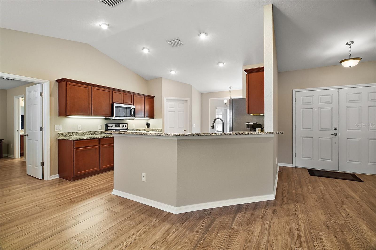 Bem -vindo ao 305 Woods Landing Drive em Lady Lady Lake, Flórida, onde atualizações atenciosas se encontram pacífica vivendo em um lote generoso cheio de árvores maduras, paisagismo aprimorado e potencial externo sem fim. Idealmente situado a poucos minutos das aldeias, esta casa lindamente mantida oferece uma mistura de conforto moderno e charme atemporal na Flórida. Quando você entra, você descobrirá pisos de ladrilhos de porcelana por toda parte, sem carpete em lugar nenhum. A tinta fresca (por dentro e por fora) cria um espaço brilhante e pronto para se mover. O layout de conceito aberto é aprimorado por tetos abobadados e uma abundância de luz natural, oferecendo um fluxo contínuo da área de estar para os espaços de jantar e cozinha. O coração da casa é a cozinha elegante, com bancadas em granito, armários amplos e assentos casuais, ideais para convidados diários de vida ou entretenimento. Uma planta piso de quartos divididos fornece privacidade, com a espaçosa suíte primária oferecendo um closet, vaidades duplas, uma banheira de imersão e um chuveiro separado de vidro. Saia do seu retiro privado exibido no pátio com uma banheira de hidromassagem com vista para um quintal totalmente cercado de vinil, perfeito para relaxar, jardinar ou brincar. Esteja você desfrutando de uma noite tranquila sob as estrelas ou hospedando um churrasco de fim de semana, este espaço está pronto para tudo. Destaques adicionais incluem uma unidade A/C mais recente, taxas baixas de HOA e acesso imbatível a golfe, lagos, compras, refeições e recreação. Seu estilo de vida atualizado na Flórida aguarda! Agende sua turnê hoje!