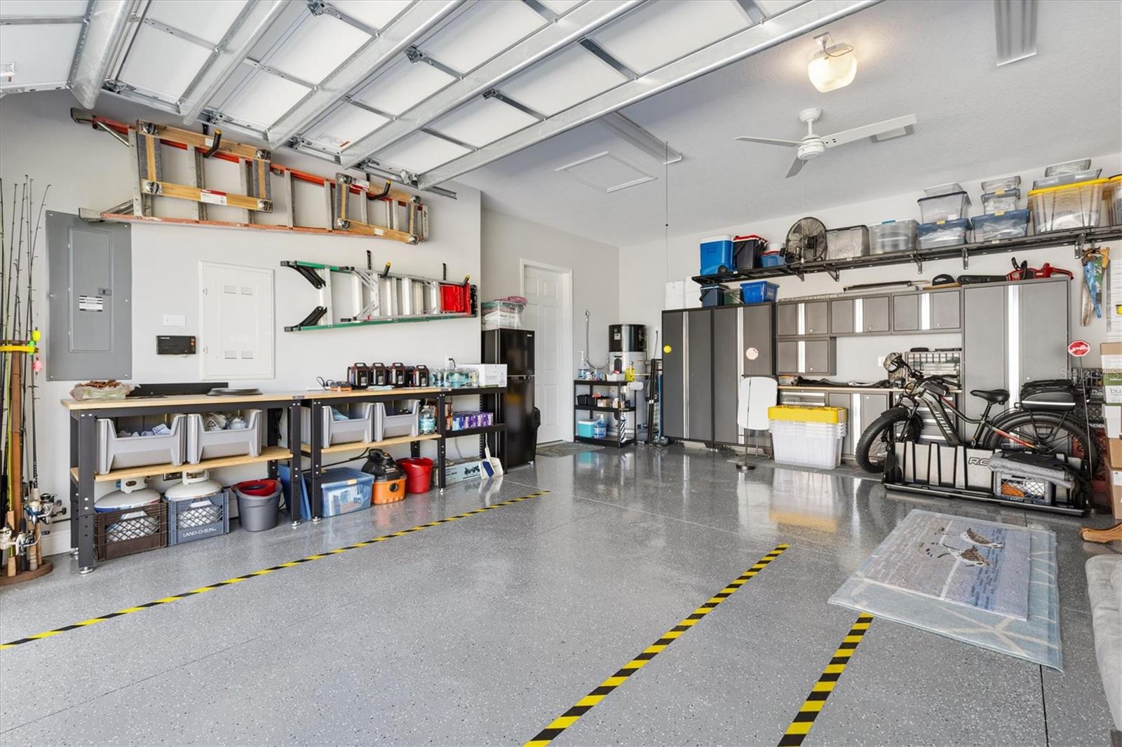 Uma ou mais fotos foram virtualmente encenadas. Descubra a combinação perfeita do charme de Key West e da sustentabilidade moderna nesta casa verde certificada pela Flórida, localizada no condomínio fechado e ecológico de Green Key Village. Projetada para eficiência energética, esta casa movida a energia solar com zero líquido inclui um tanque de propano enterrado de 500 galões alimentando um gerador para toda a casa, isolamento de espuma em spray e um ventilador de recuperação de energia para ar fresco contínuo. Desfrute de milhares de poupanças anuais de energia e da tranquilidade proporcionada pela energia de reserva para toda a casa. Entre nos tetos de 3 metros, sancas e um layout aberto e cheio de luz que parece espaçoso e acolhedor. A cozinha possui bancadas de quartzo Cambria, fogão de indução Wolf ventilado para fora, armários com fechamento suave, sistema de osmose reversa e pia profunda de bacia única, ideal para o cozinheiro moderno. A suíte principal oferece um retiro tranquilo com teto trevo, ventilador com luz/controle remoto, box amplo, embutidos, pias para ele e para ela, acabamentos neutros em Corian e janelas que banham o espaço com luz natural. Aproveite a vida na Flórida com uma varanda frontal recém-protegida (2023), varanda com tela e um pátio pavimentado com fogueira, perfeito para relaxar ou se divertir. Atualizações adicionais incluem uma nova lavadora e secadora (2023), persianas personalizadas que melhoram a estética costeira limpa da casa e um piso de garagem selado com epóxi. Green Key Village oferece comodidades em estilo resort: piscina para crianças, quadras de pickleball e basquete, parque para cães, horta comunitária, fogueira e eventos sociais ativos, tudo a poucos minutos dos restaurantes e entretenimento do The Villages, mas sem taxas de CDD ou multidões. Desfrute de uma vida sem esforço, milhares de economias anuais de energia, a tranquilidade que vem com a energia de reserva para toda a casa e o calor de uma comunidade que se sente em casa. agende seu passeio hoje mesmo!