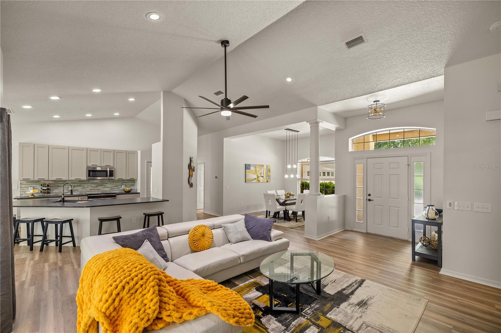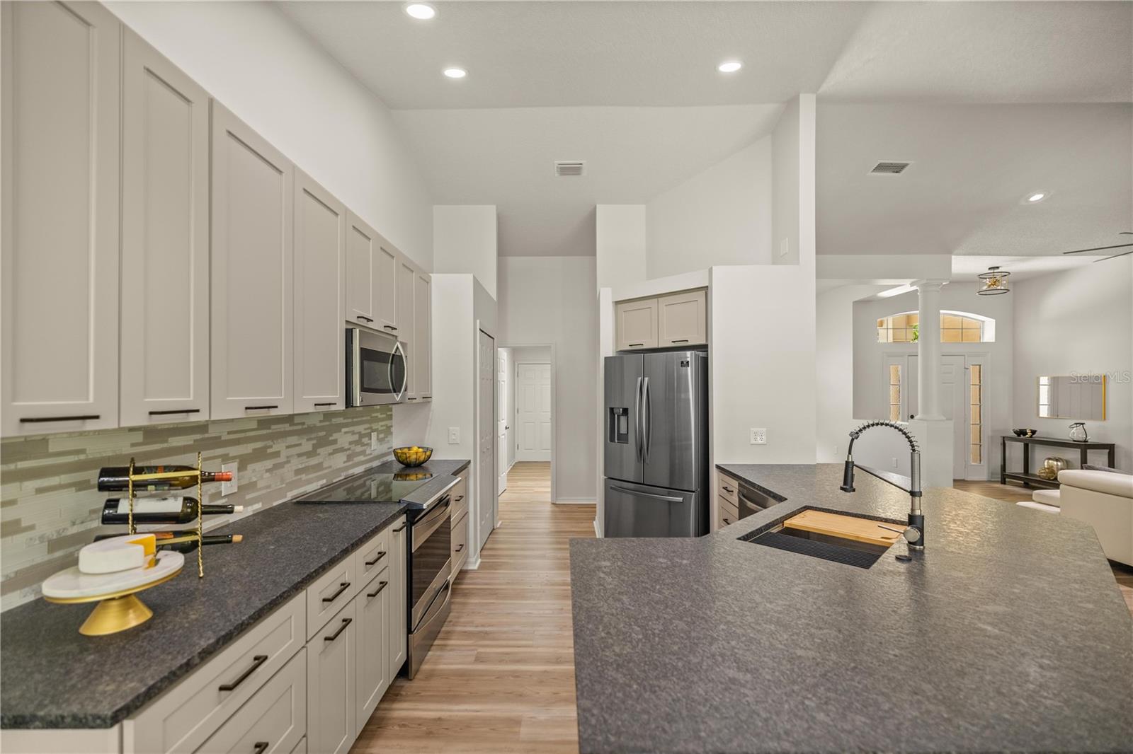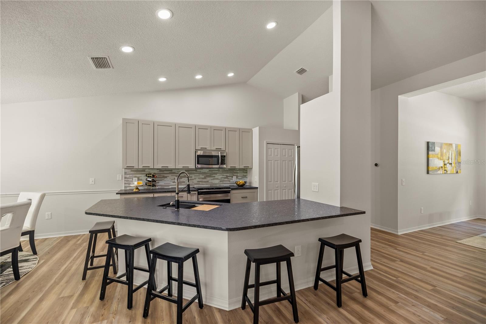 Imagine-se vivendo o sonho... Entre no seu espaço ideal na exclusiva e procurada comunidade de golfe de Harbour Hills! Esta requintada casa de 3 quartos e 2 banheiros fica em um terreno generoso de 0,28 acres com uma vista cativante do 3º buraco deste espetacular campo de golfe. Aproveite a recente reforma de US$ 100.000,00 que transformou esta propriedade de cima a baixo. Com 2.040 pés quadrados de área de estar cuidadosamente projetada, esta residência combina perfeitamente conforto e elegância. Ao entrar, seja recebido por tetos abobadados e um layout arejado que dá um tom caloroso e acolhedor. A cozinha moderna possui novos eletrodomésticos e impressionantes bancadas de granito, perfeitas para cozinhar e se divertir. A sala de jantar transita facilmente para a sala de estar, criando um espaço ideal para reuniões. A suíte master oferece um refúgio luxuoso com vistas amplas do campo de golfe, box amplo de azulejos, penteadeiras “para ele e para ela” e amplo closet. Os quartos adicionais são de tamanho generoso, proporcionando amplo espaço para familiares ou visitantes. Abrace o estilo de vida da Flórida no pátio coberto, ideal para relaxar enquanto aprecia o recurso aquático e aprecia a vista deslumbrante do campo de golfe. Com garagem ampla, tem espaço para 2 viaturas, carrinho de golfe e arrecadação. Vantagens adicionais incluem um novo telhado instalado em 2019, uma nova unidade de AC de 2023 e armazenamento extra na lavanderia. Esta casa realmente tem tudo! Não perca a chance de chamar de sua esta propriedade deslumbrante. Entre em contato hoje mesmo para agendar uma visita e transforme esta casa dos sonhos em sua nova casa!