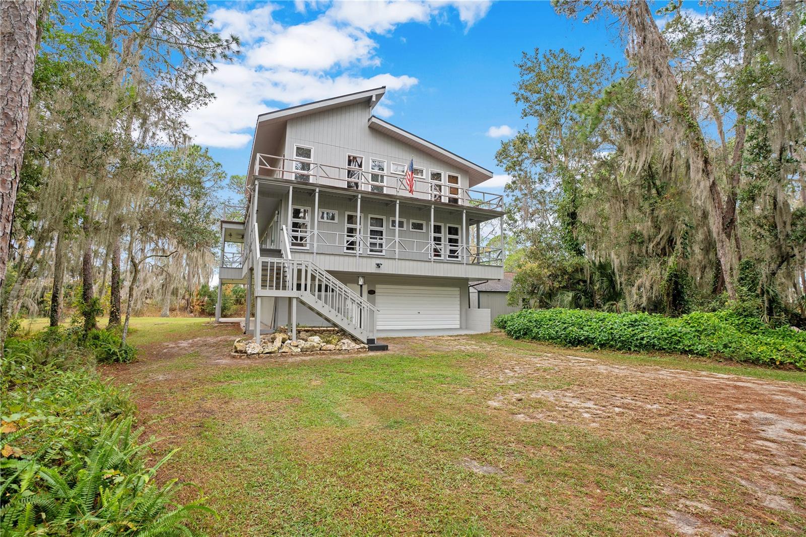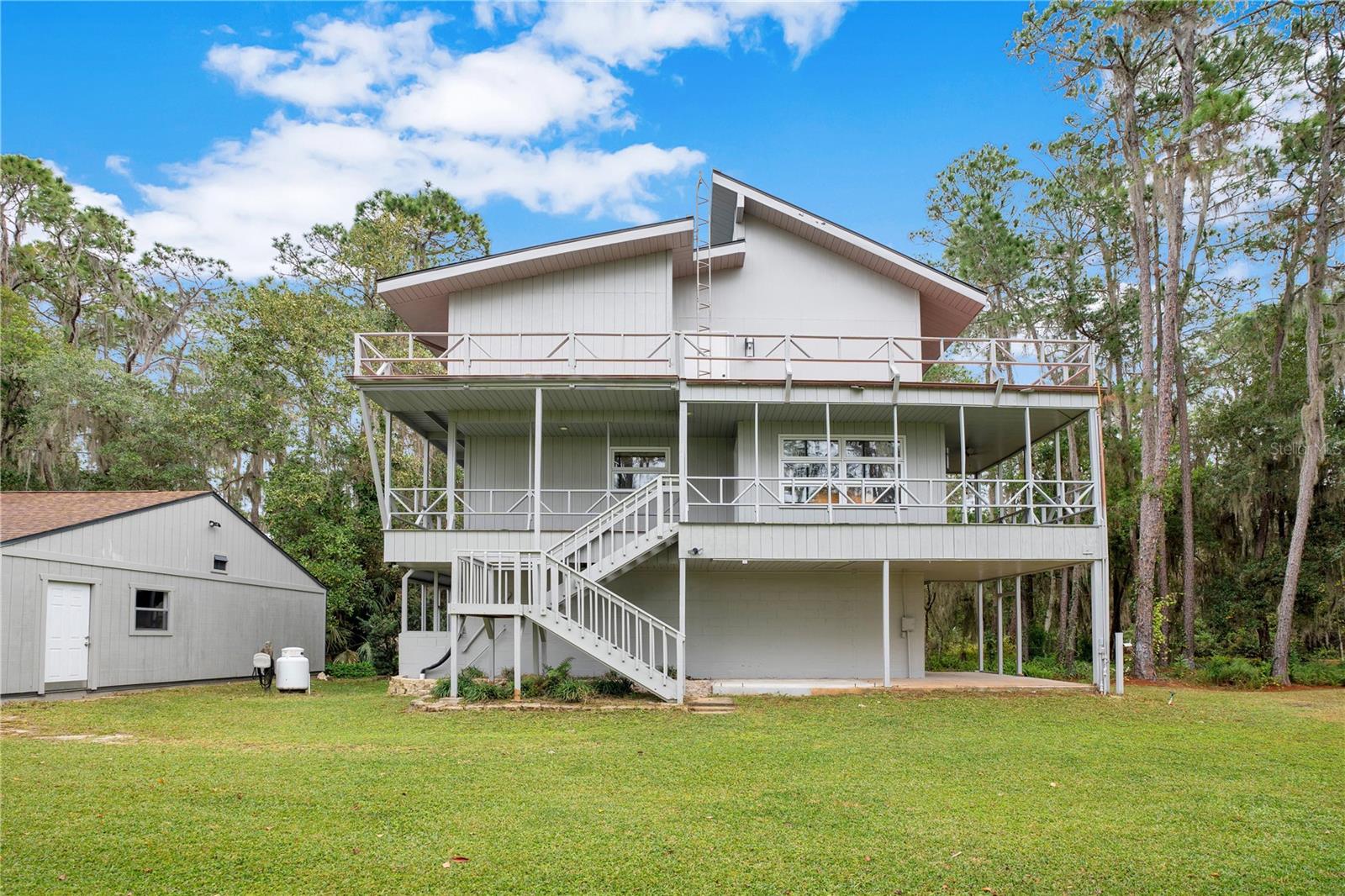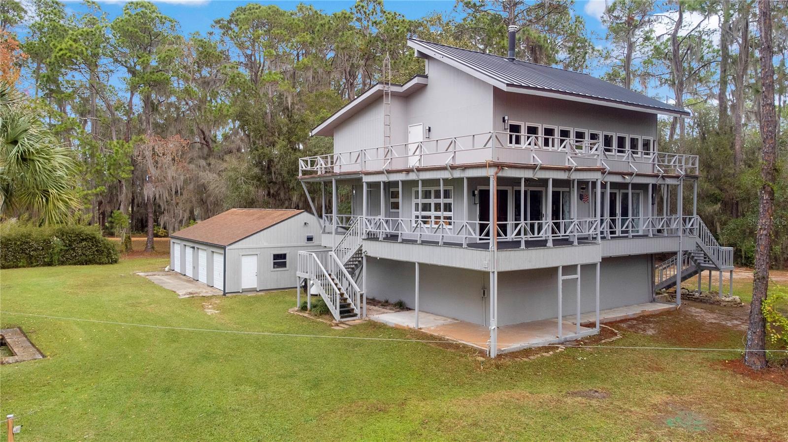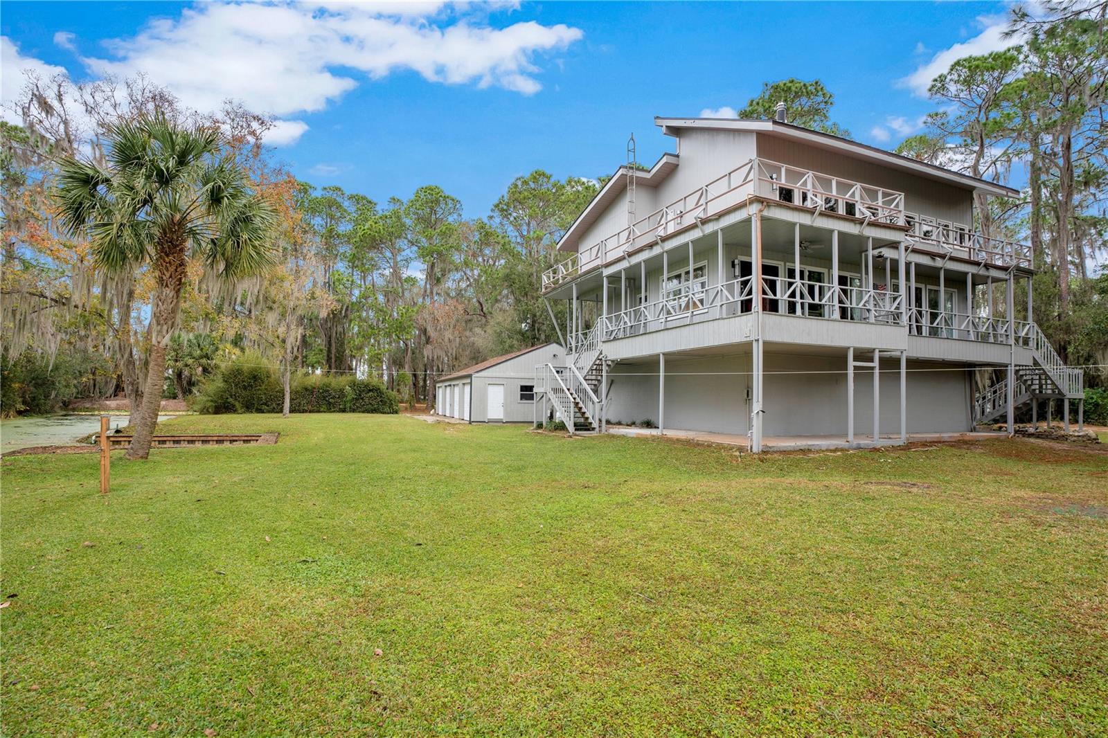 NOVO TELHADO COM CALHAS, NOVO AC, RE-FIGADO COM NOVOS PAINÉIS ELÉTRICOS, NOVA PINTURA EXTERIOR, ACESSO PRIVADO AO LAGO, DOCA PARA BARCOS, GARAGEM PARA 6 CARROS, APROXIMADAMENTE 2.800 PÉS QUADRADOS DE ESPAÇO E 1,38 ACRES DE ESPAÇO PARA SEU RV E/OU BARCO. Esta linda casa personalizada de quatro quartos e três banheiros com cais privativo e acesso direto à Cadeia de Lagos Harris é imperdível. Um verdadeiro retiro localizado em uma ilha privada fechada com poucas outras casas, e com seu primeiro andar de blocos de concreto e segundo e terceiro andares com estrutura de aço, foi construído para resistir aos mais violentos furacões da Flórida. O lote arborizado de 1,38 oferece um espaço tranquilo e privado com muito espaço para uma piscina. Com arquitetura contemporânea rústica e espaçosa e varandas duplas envolventes, sua nova casa oferece vistas deslumbrantes e infinitas possibilidades de entretenimento. No interior, você será cativado pela planta aberta iluminada pelo sol, onde altos tetos abobadados de madeira de dois andares e elegante piso de madeira preparam o cenário. Janelas amplas e paredes sofisticadas com detalhes em madeira emolduram um aconchegante fogão a lenha, convidando você a se aconchegar com um bom livro ou a ter uma conversa animada. O coração desta casa é a cozinha, onde o chef que há em si pode florescer. Retire-se para o quarto principal no andar superior, com amplo closet e um lindo banheiro privativo. O piso superior abriga um quarto adicional e uma moderna casa de banho completa. O piso principal alberga o terceiro quarto com bastante espaço de arrumação. Este quarto também seria um escritório doméstico perfeito. O nível inferior oferece um quarto e banheiro completo – ideal para uma suíte de sogros, suíte de hóspedes privada ou residência de última geração. Para o colecionador de carros clássicos ou amadores, uma garagem individual para quatro carros e uma garagem anexa para dois carros - para um total de 6 vagas de garagem - oferecem espaço generoso para estacionamento, seus projetos e armazenamento. Traga seu trailer e barco; há muito espaço para ambos. A apenas 91 km do centro de Orlando e a poucos passos de The Villages, esta casa mágica oferece o equilíbrio perfeito entre vida serena no lago e acesso conveniente a lojas, restaurantes, entretenimento e escolas. Mencionamos as baixas taxas HOA? O que você está esperando, venha hoje mesmo conhecer esta casa e se apaixonar.