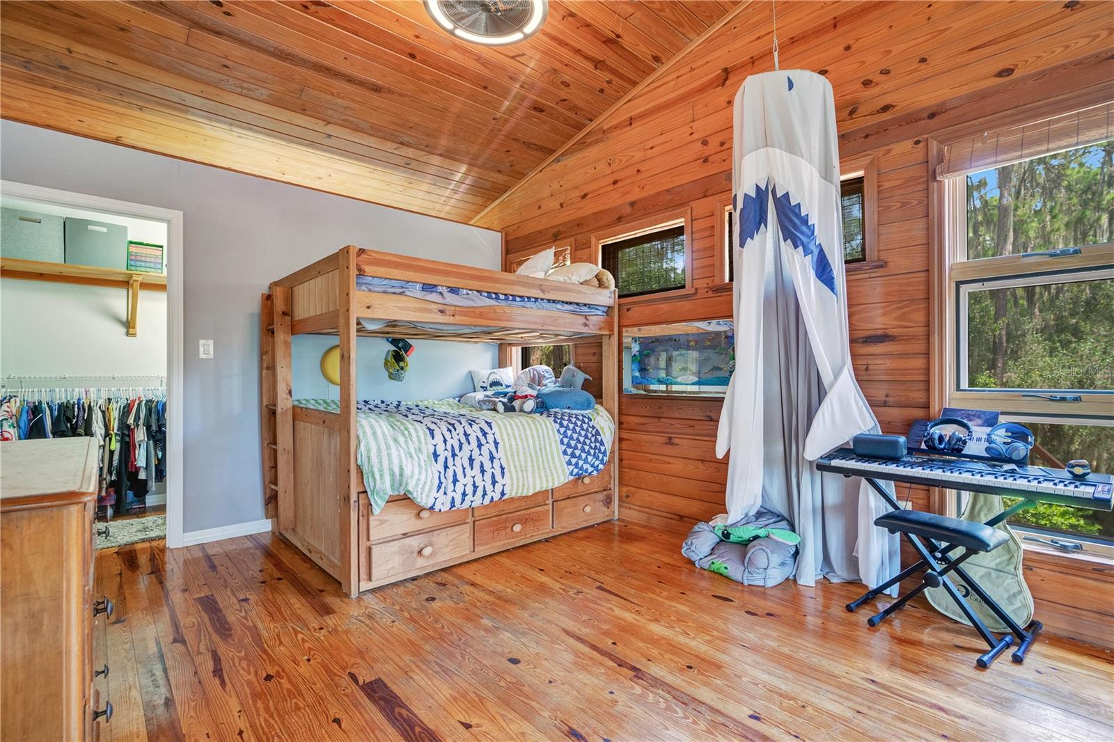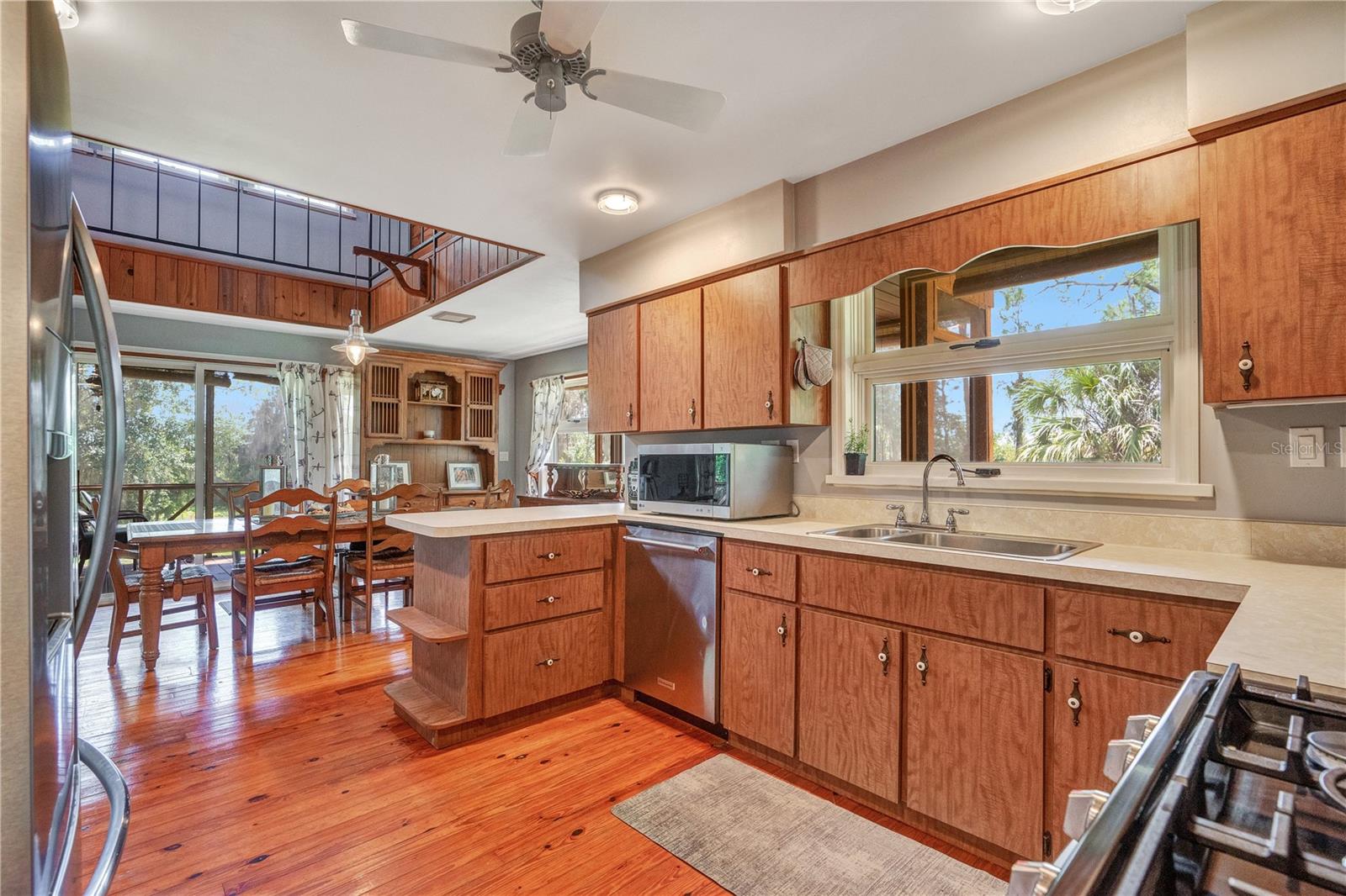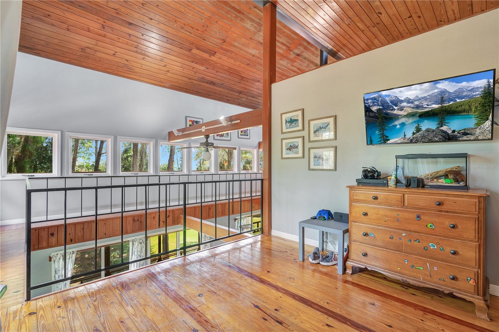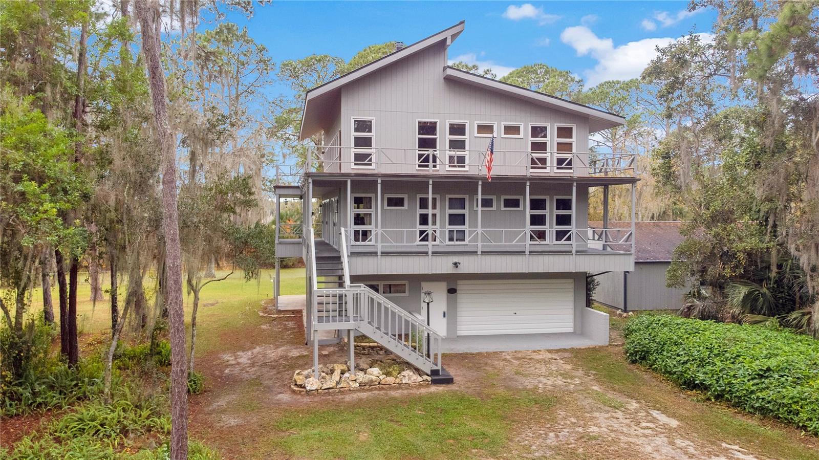 NOVO TELHADO COM CALHAS, NOVO AC, RE-FIGADO COM NOVOS PAINÉIS ELÉTRICOS, NOVA PINTURA EXTERIOR, ACESSO PRIVADO AO LAGO, DOCA PARA BARCOS, GARAGEM PARA 6 CARROS, APROXIMADAMENTE 2.800 PÉS QUADRADOS DE ESPAÇO E 1,38 ACRES DE ESPAÇO PARA SEU RV E/OU BARCO. Esta linda casa personalizada de quatro quartos e três banheiros com cais privativo e acesso direto à Cadeia de Lagos Harris é imperdível. Um verdadeiro retiro localizado em uma ilha privada fechada com poucas outras casas, e com seu primeiro andar de blocos de concreto e segundo e terceiro andares com estrutura de aço, foi construído para resistir aos mais violentos furacões da Flórida. O lote arborizado de 1,38 oferece um espaço tranquilo e privado com muito espaço para uma piscina. Com arquitetura contemporânea rústica e espaçosa e varandas duplas envolventes, sua nova casa oferece vistas deslumbrantes e infinitas possibilidades de entretenimento. No interior, você será cativado pela planta aberta iluminada pelo sol, onde altos tetos abobadados de madeira de dois andares e elegante piso de madeira preparam o cenário. Janelas amplas e paredes sofisticadas com detalhes em madeira emolduram um aconchegante fogão a lenha, convidando você a se aconchegar com um bom livro ou a ter uma conversa animada. O coração desta casa é a cozinha, onde o chef que há em si pode florescer. Retire-se para o quarto principal no andar superior, com amplo closet e um lindo banheiro privativo. O piso superior abriga um quarto adicional e uma moderna casa de banho completa. O piso principal alberga o terceiro quarto com bastante espaço de arrumação. Este quarto também seria um escritório doméstico perfeito. O nível inferior oferece um quarto e banheiro completo – ideal para uma suíte de sogros, suíte de hóspedes privada ou residência de última geração. Para o colecionador de carros clássicos ou amadores, uma garagem individual para quatro carros e uma garagem anexa para dois carros - para um total de 6 vagas de garagem - oferecem espaço generoso para estacionamento, seus projetos e armazenamento. Traga seu trailer e barco; há muito espaço para ambos. A apenas 91 km do centro de Orlando e a poucos passos de The Villages, esta casa mágica oferece o equilíbrio perfeito entre vida serena no lago e acesso conveniente a lojas, restaurantes, entretenimento e escolas. Mencionamos as baixas taxas HOA? O que você está esperando, venha hoje mesmo conhecer esta casa e se apaixonar.