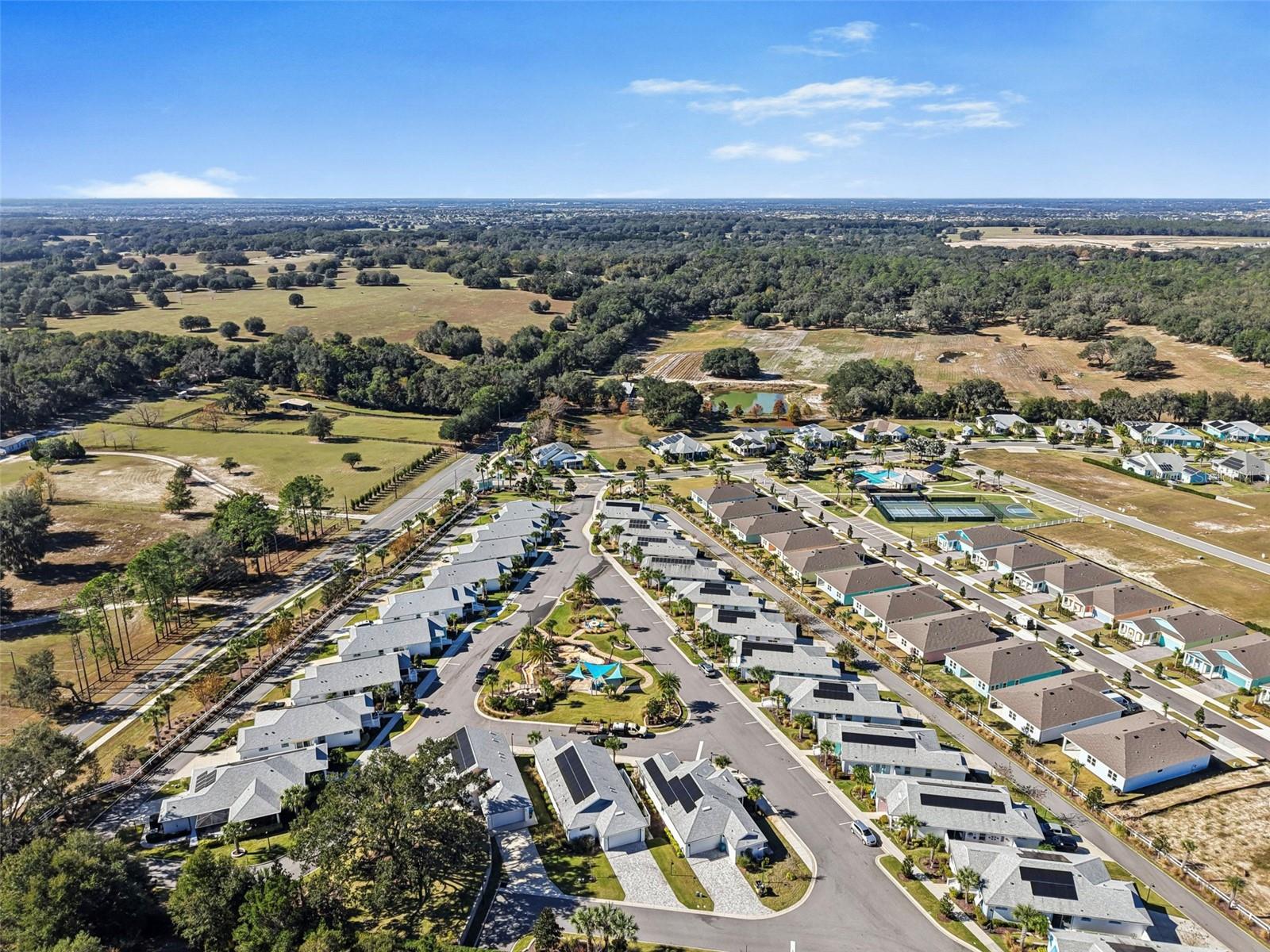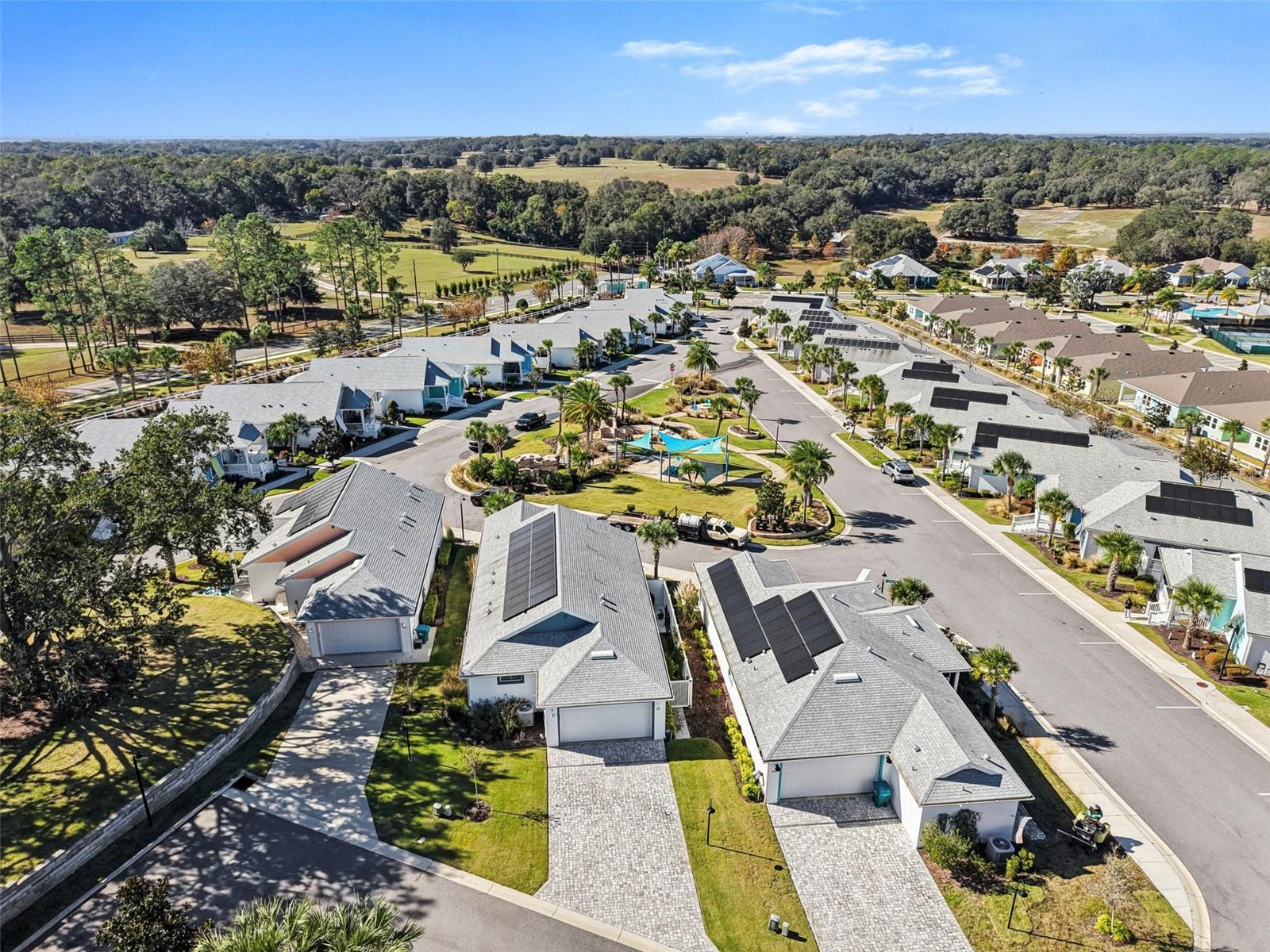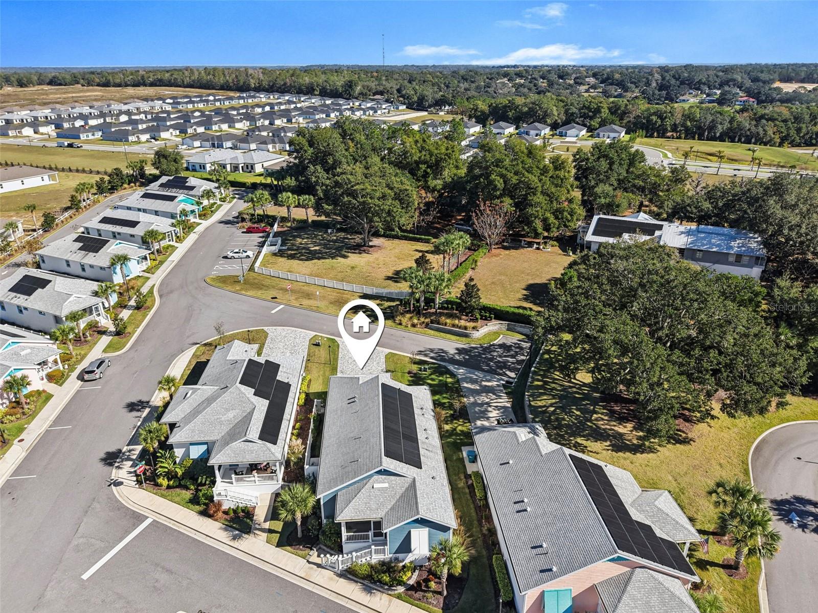 Bem-vindo ao Green Key Village, uma comunidade com eficiência energética inspirada em Key West, no coração de Lady Lake, que oferece SEM CDD, BAIXO HOA, painéis solares próprios e contas de energia elétrica médias incrivelmente baixas de aproximadamente US$ 35 a US$ 40/mês. Este modelo Islamorada excepcional de 3 quartos e 2 banheiros está localizado na área exclusiva 55+ e oferece aproximadamente US$ 25.000 em upgrades de alta qualidade, uma garagem estendida e uma suíte principal estendida. Posicionada em um dos lotes mais desejáveis do bairro, a casa fica bem acima da rua e oferece vistas panorâmicas do parque e um cenário deslumbrante do pôr do sol a partir da varanda frontal. A vista, o ambiente e a estrutura geral desta casa são verdadeiramente incomparáveis. Construída pensando na durabilidade e longevidade, a casa oferece construção em bloco com aço reforçado, estuque aplicado diretamente no bloco sem substrato de madeira, paredes internas com vigas de aço, isolamento de espuma, portão de garagem isolado, telhas de 40 anos e painéis solares, proporcionando excelente eficiência energética e tranquilidade. No interior, uma planta luminosa e aberta apresenta uma espaçosa sala de estar destacada por um teto em caixotões e vigas que serve como um ponto focal arquitetônico impressionante. As áreas de cozinha, jantar e estar fluem perfeitamente juntas, criando um layout ideal para entretenimento e vida cotidiana. A cozinha oferece um grande balcão para café da manhã que também funciona como estação de preparação, amplos armários, bancadas de quartzo, luminárias Kohler, eletrodomésticos Energy Star e exaustor de cozinha com ventilação externa. A despensa adjacente inclui despensa, armários personalizados acima da lavadora e secadora e espaço para freezer. Um novo refrigerador LG de contra-profundidade foi instalado em 2025. A suíte principal possui um closet e um banheiro privativo lindamente atualizado com chuveiro em estilo romano, parede com mosaico de mármore, piso de chuveiro hexagonal em mármore de Carrara e azulejos de mármore de 2' x 4' nos pisos e paredes com cadeira em mármore de Carrara. Dois quartos adicionais são de tamanho generoso, com amplo espaço no armário, e um inclui uma mesa embutida, tornando-o perfeito para uso como quarto, escritório ou escritório doméstico. O segundo banheiro foi reformado com porcelanato mármore brasileiro de 2' x 4' no piso e nas paredes com grade para cadeiras em mármore Carrara. Melhorias internas adicionais incluem piso laminado à prova d'água por toda parte, armários em estilo shaker, uma parede com acabamento em porcelanato de mármore de 2 'x 4', um backsplash de mosaico de cozinha e venezianas de madeira de tília com peitoris decorativos em todas as janelas. A calçada de tijolos e o exterior bem cuidado completam o apelo do meio-fio. O alpendre frontal e a entrada nivelada da garagem sem degraus proporcionam conforto e comodidade. Sem lotes restantes disponíveis na área de 55+ de Green Key Village, esta é uma rara oportunidade de possuir uma casa que combina construção excepcional, custos de serviços públicos ultrabaixos, atualizações cuidadosas e vistas inesquecíveis. Os residentes também desfrutam de eventos sociais programados regularmente e patrocinados pela HOA, projetados para promover a comunidade, a conexão e um estilo de vida ativo com outros proprietários.
