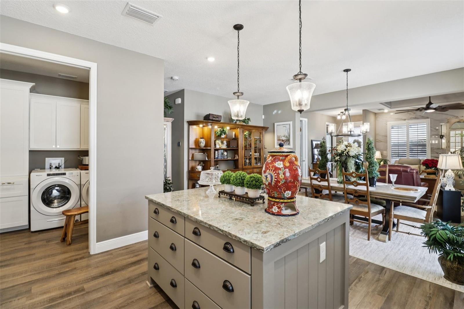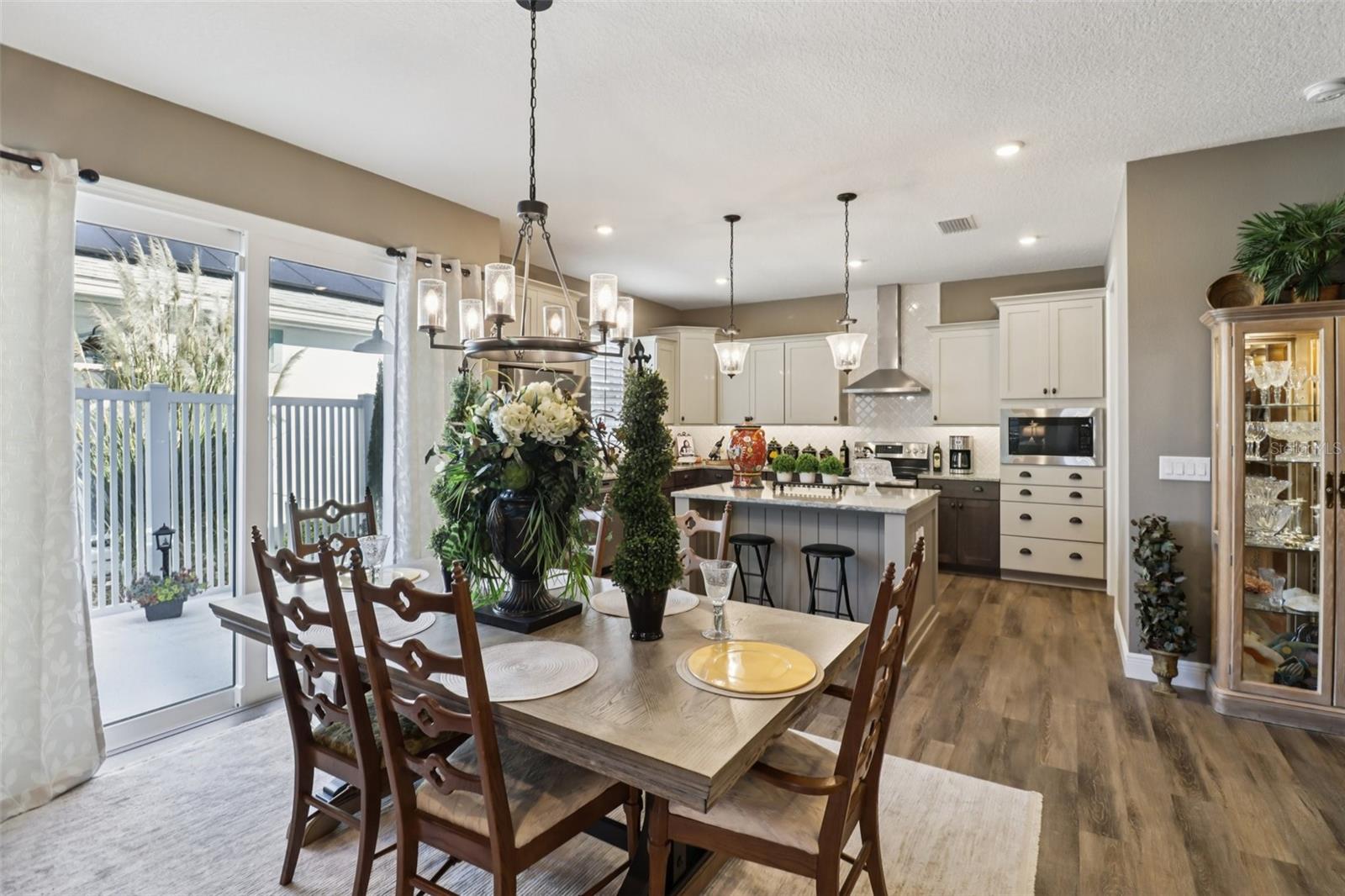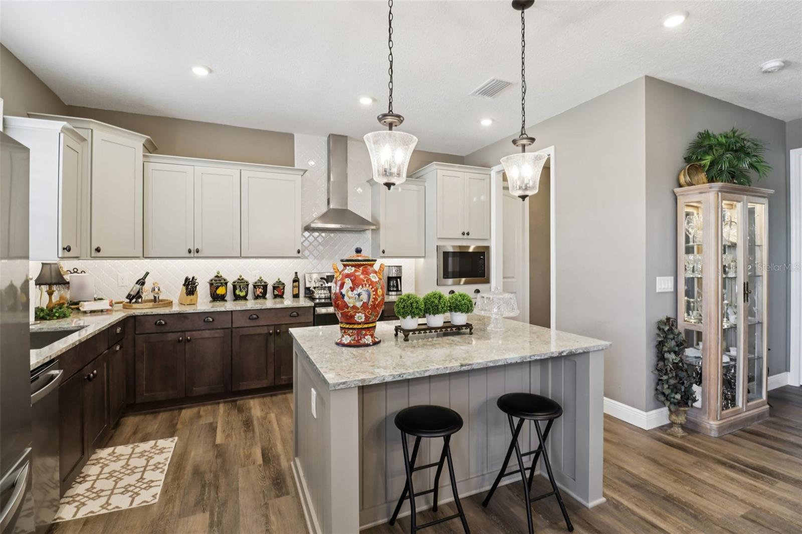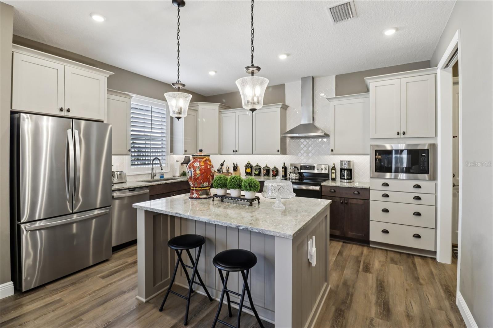 Bem-vindo ao Green Key Village, uma comunidade com eficiência energética inspirada em Key West, no coração de Lady Lake, que oferece SEM CDD, BAIXO HOA, painéis solares próprios e contas de energia elétrica médias incrivelmente baixas de aproximadamente US$ 35 a US$ 40/mês. Este modelo Islamorada excepcional de 3 quartos e 2 banheiros está localizado na área exclusiva 55+ e oferece aproximadamente US$ 25.000 em upgrades de alta qualidade, uma garagem estendida e uma suíte principal estendida. Posicionada em um dos lotes mais desejáveis do bairro, a casa fica bem acima da rua e oferece vistas panorâmicas do parque e um cenário deslumbrante do pôr do sol a partir da varanda frontal. A vista, o ambiente e a estrutura geral desta casa são verdadeiramente incomparáveis. Construída pensando na durabilidade e longevidade, a casa oferece construção em bloco com aço reforçado, estuque aplicado diretamente no bloco sem substrato de madeira, paredes internas com vigas de aço, isolamento de espuma, portão de garagem isolado, telhas de 40 anos e painéis solares, proporcionando excelente eficiência energética e tranquilidade. No interior, uma planta luminosa e aberta apresenta uma espaçosa sala de estar destacada por um teto em caixotões e vigas que serve como um ponto focal arquitetônico impressionante. As áreas de cozinha, jantar e estar fluem perfeitamente juntas, criando um layout ideal para entretenimento e vida cotidiana. A cozinha oferece um grande balcão para café da manhã que também funciona como estação de preparação, amplos armários, bancadas de quartzo, luminárias Kohler, eletrodomésticos Energy Star e exaustor de cozinha com ventilação externa. A despensa adjacente inclui despensa, armários personalizados acima da lavadora e secadora e espaço para freezer. Um novo refrigerador LG de contra-profundidade foi instalado em 2025. A suíte principal possui um closet e um banheiro privativo lindamente atualizado com chuveiro em estilo romano, parede com mosaico de mármore, piso de chuveiro hexagonal em mármore de Carrara e azulejos de mármore de 2' x 4' nos pisos e paredes com cadeira em mármore de Carrara. Dois quartos adicionais são de tamanho generoso, com amplo espaço no armário, e um inclui uma mesa embutida, tornando-o perfeito para uso como quarto, escritório ou escritório doméstico. O segundo banheiro foi reformado com porcelanato mármore brasileiro de 2' x 4' no piso e nas paredes com grade para cadeiras em mármore Carrara. Melhorias internas adicionais incluem piso laminado à prova d'água por toda parte, armários em estilo shaker, uma parede com acabamento em porcelanato de mármore de 2 'x 4', um backsplash de mosaico de cozinha e venezianas de madeira de tília com peitoris decorativos em todas as janelas. A calçada de tijolos e o exterior bem cuidado completam o apelo do meio-fio. O alpendre frontal e a entrada nivelada da garagem sem degraus proporcionam conforto e comodidade. Sem lotes restantes disponíveis na área de 55+ de Green Key Village, esta é uma rara oportunidade de possuir uma casa que combina construção excepcional, custos de serviços públicos ultrabaixos, atualizações cuidadosas e vistas inesquecíveis. Os residentes também desfrutam de eventos sociais programados regularmente e patrocinados pela HOA, projetados para promover a comunidade, a conexão e um estilo de vida ativo com outros proprietários.