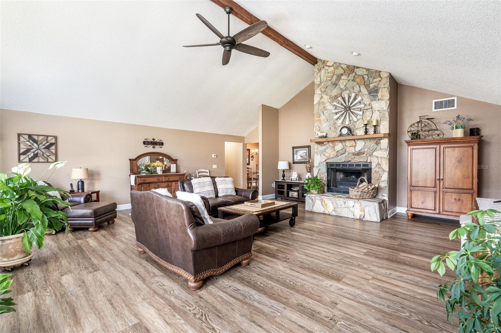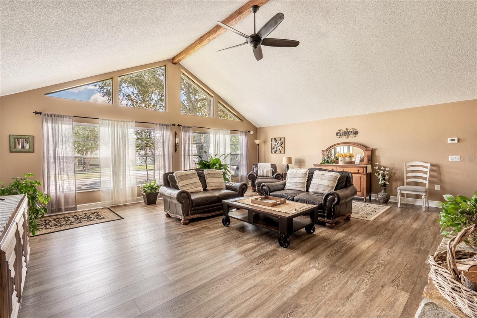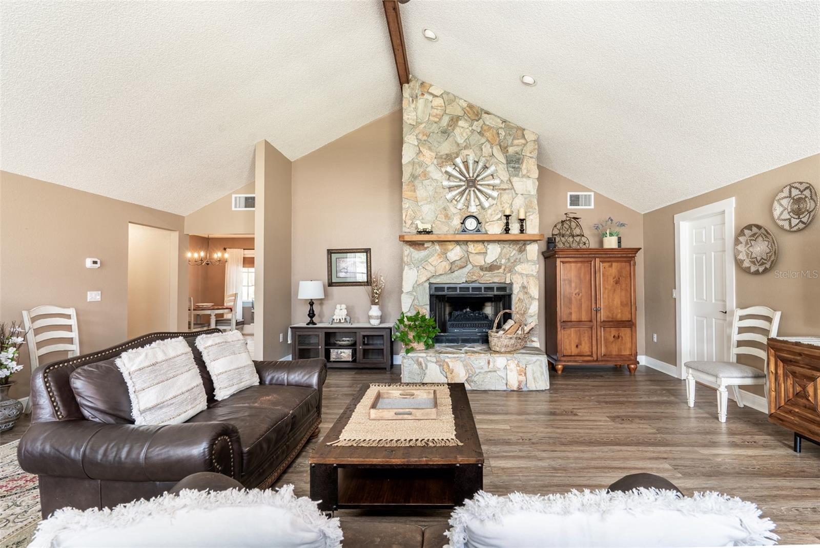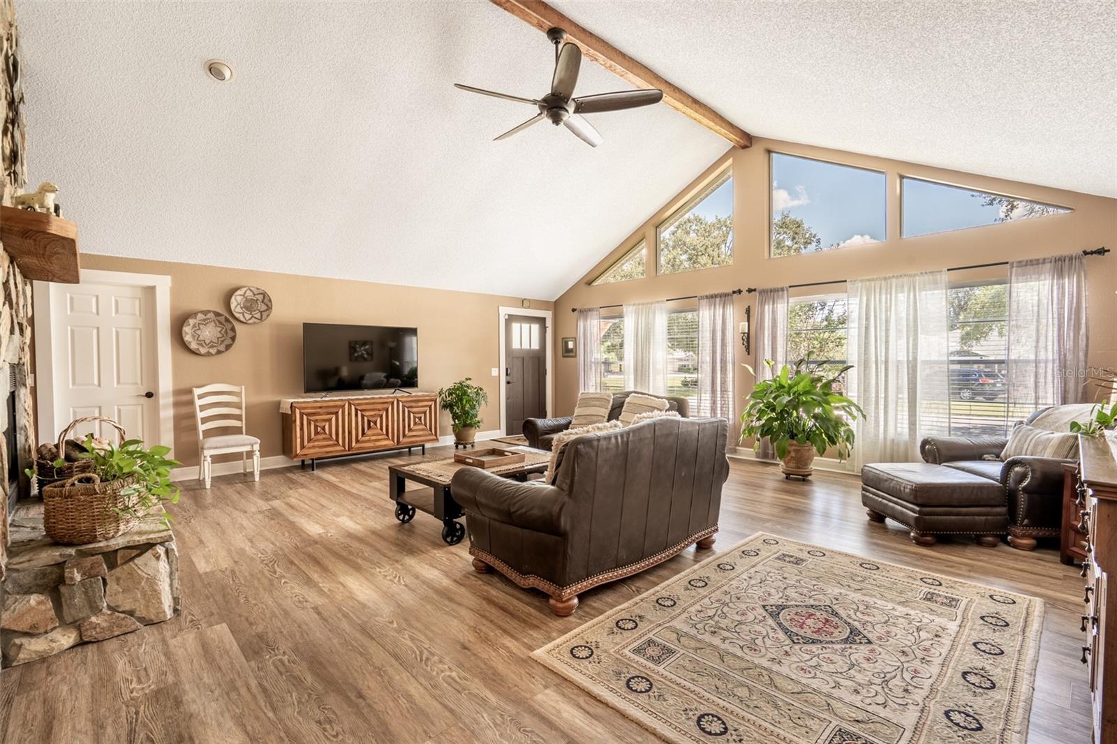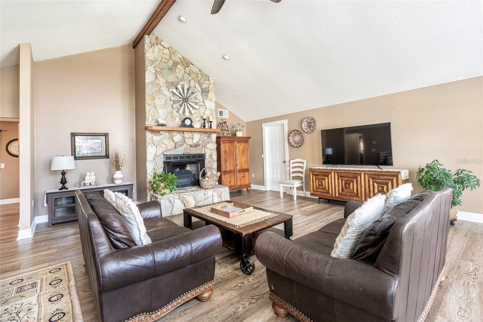 Bem-vindo à 120 Hainesport Drive, uma casa espaçosa em um terreno de mais de um quarto de acre com uma longa entrada de automóveis e bastante apelo ao meio-fio. No interior, a sala apresenta janelas altas do chão ao teto e uma bela lareira de pedra, enchendo o espaço de luz natural e charme. O piso de vinil durável flui por todas as áreas de estar principais, e a cozinha oferece armários abundantes para todas as suas necessidades. A suíte master é um verdadeiro refúgio com penteadeiras individuais, enquanto dois quartos adicionais possuem closets. Portas francesas duplas na sala de jantar levam à varanda, com vista para um grande quintal totalmente cercado, completo com galpão de armazenamento. Grandes atualizações trazem tranquilidade com um sistema AC totalmente novo e um telhado substituído em 2020. Aproveite a conveniência de estar a uma curta caminhada de uma rampa para barcos e doca no Lago Haines. Além disso, você está a poucos minutos de lojas de antiguidades, trilhas pitorescas, parques temáticos de classe mundial e muito mais. Esta casa combina perfeitamente conforto, funcionalidade e o melhor da vida na Flórida!