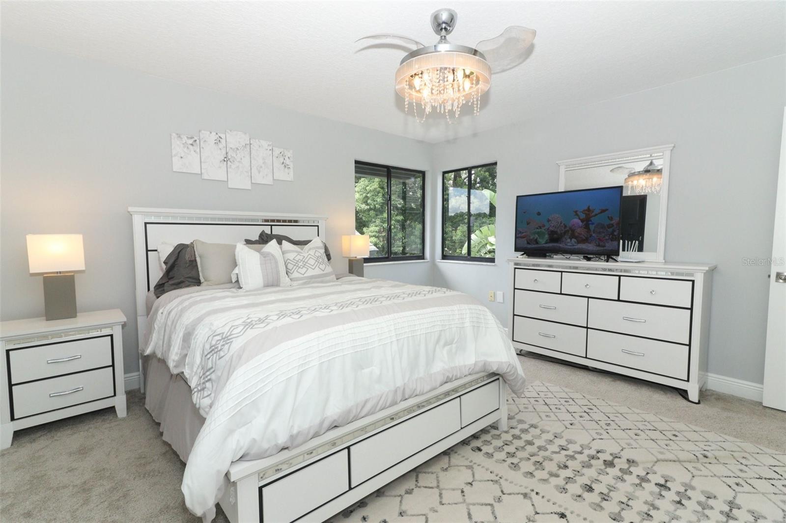 Bem-vindo a esta casa lindamente remodelada de dois quartos e dois banheiros, localizada no coração do Lago Mary. Esta deslumbrante propriedade passou por uma reforma completa em 2020, garantindo que tudo esteja moderno e atualizado. Ao entrar, você apreciará o novo piso que flui por toda a planta aberta, acentuado pelos altos tetos da catedral. A espaçosa sala de estar, completa com uma lareira acolhedora, é perfeita para relaxar e se divertir. A cozinha gourmet apresenta armários novos, bancadas elegantes e todos os eletrodomésticos mais recentes, tornando-a uma delícia para o chef. Ambos os banheiros foram atualizados com bom gosto, proporcionando um ambiente fresco e convidativo. No andar de baixo, você encontrará um quarto confortável e um banheiro completo, enquanto a suíte master no andar de cima possui um amplo closet e uma lavanderia interna, completa com lavadora e secadora incluídas para sua conveniência. Saia para desfrutar do quintal sereno com um pátio coberto, ideal para reuniões ao ar livre ou noites tranquilas. As atualizações adicionais concluídas em 2020 incluem um novo telhado, novo ar condicionado, encanamento atualizado, sistemas elétricos e acessórios em toda a casa. Esta propriedade é uma mistura perfeita de vida moderna e conforto - não perca a chance de torná-la sua!
