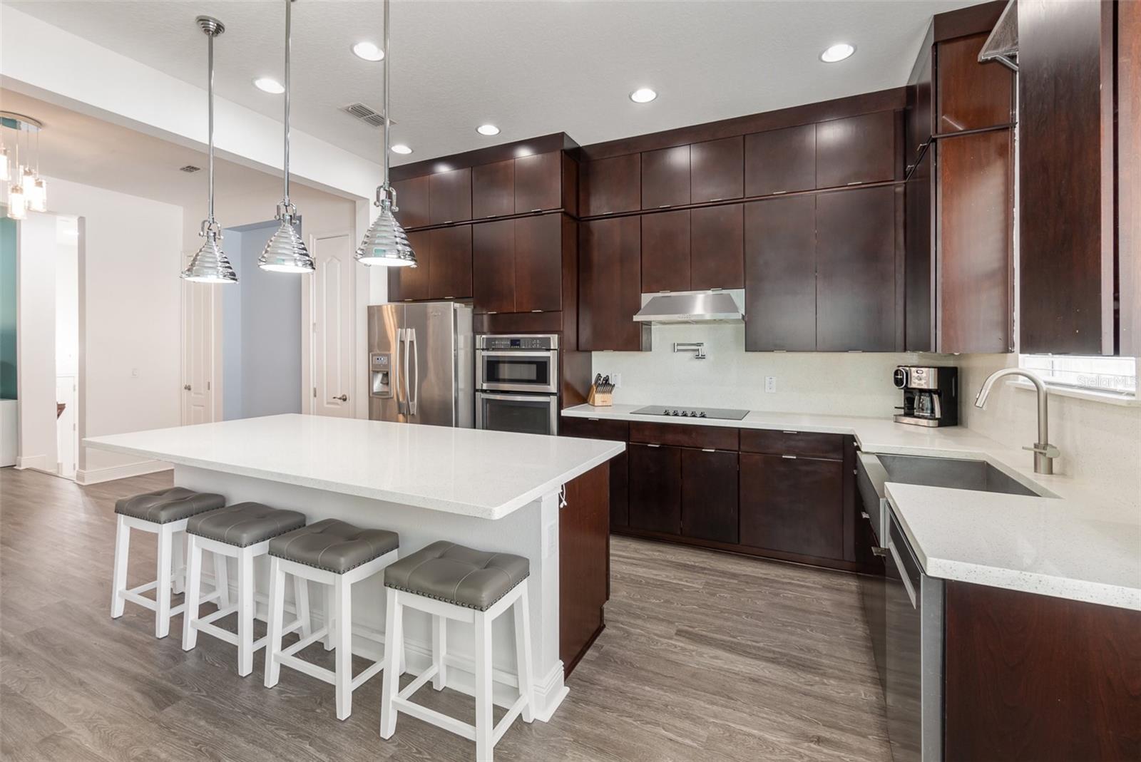 Bem-vindo a este condomínio bem conservado de 4 quartos e 3,5 banheiros com uma garagem de 2 carros, localizada na altamente procurada comunidade de fontes de Fountain, em Lake Mary. Com três andares, este Townhome oferece espaços versáteis, começando com o pátio privado do primeiro andar que leva a uma entrada separada. Esse nível inclui um quarto espaçoso com um closet, um banheiro completo e acesso direto à garagem, tornando-o uma suíte ideal, escritório ou retiro privado para um colega de quarto. Ao entrar na área de estar principal no segundo andar, você será recebido por uma cozinha ultra moderna com armários elegantes, bancadas de quartzo e utensílios de aço inoxidável. Um preenchimento conveniente de panela acima do novo fogão e uma elegante pia da fazenda completam a cozinha deste chef. A sala de estar adjacente se abre para uma varanda coberta, perfeita para relaxar ou jantar ao ar livre. Um convidado meio banheiro completa o layout do segundo andar. No terceiro nível, você encontrará a suíte master, com um chuveiro personalizado, vaidade dupla com bancadas de quartzo e um espaçoso closet. O armário de lavanderia, com uma lavadora e secadora incluída, está convenientemente localizado no corredor que leva ao terceiro e quarto quartos, que compartilham o terceiro banheiro completo. Atualizações recentes a esta casa incluem tinta fresca, tapete novo, uma nova máquina de lavar louça, fogão e abridor de portas de garagem, além de termostatos ninhos em cada andar e alto-falantes do Sonos no teto. O exterior também foi recentemente revitalizado com nova estuque e tinta fresca e novo paisagismo. Fountain Parke é uma comunidade verdadeiramente única, com arquitetura no estilo mediterrâneo, cercada por árvores exuberantes e ambientes serenos. Os moradores desfrutam de segurança de 24 horas, uma piscina e spa em estilo resort, quadras de tênis, um clube, fitness center, parque de cães cercados, verduras e um playground. Idealmente localizado perto de restaurantes, compras, SR 417 e I-4, esta casa oferece conveniência e acesso a um estilo de vida vibrante, tudo dentro das zonas escolares do Condado de Seminole. Não perca a chance de experimentar luxo e conforto - agende sua exibição hoje e faça desta propriedade excepcional sua nova casa!