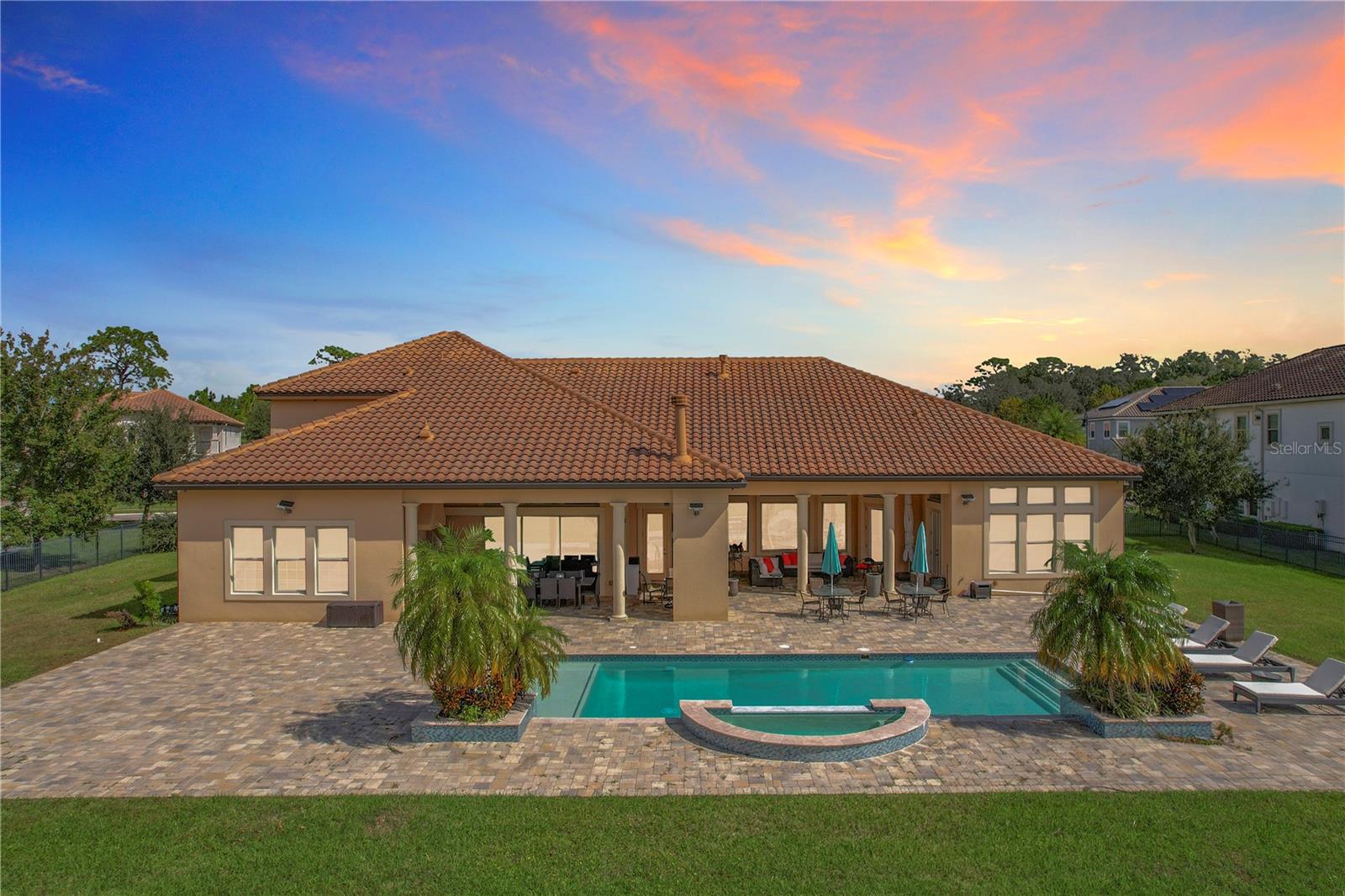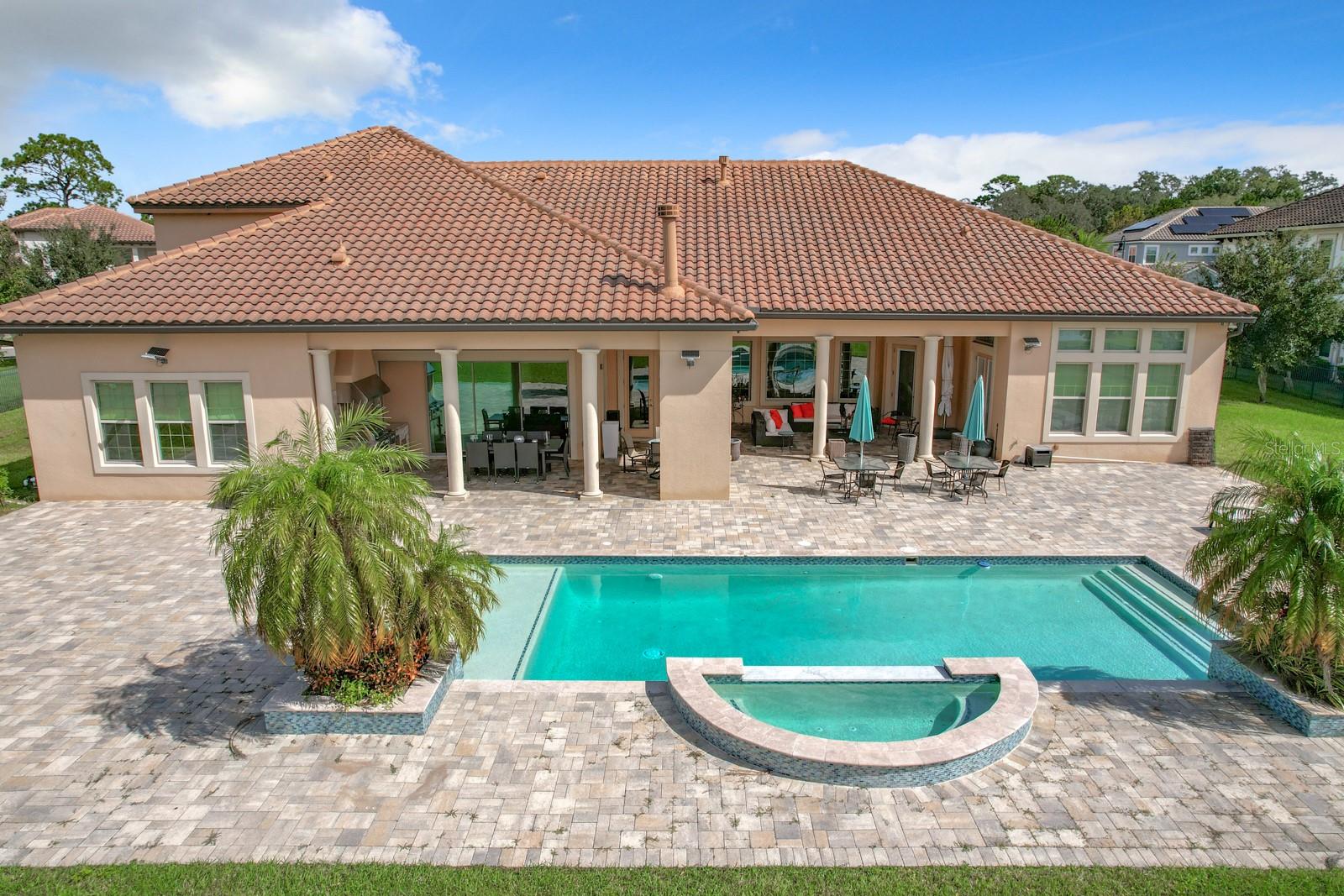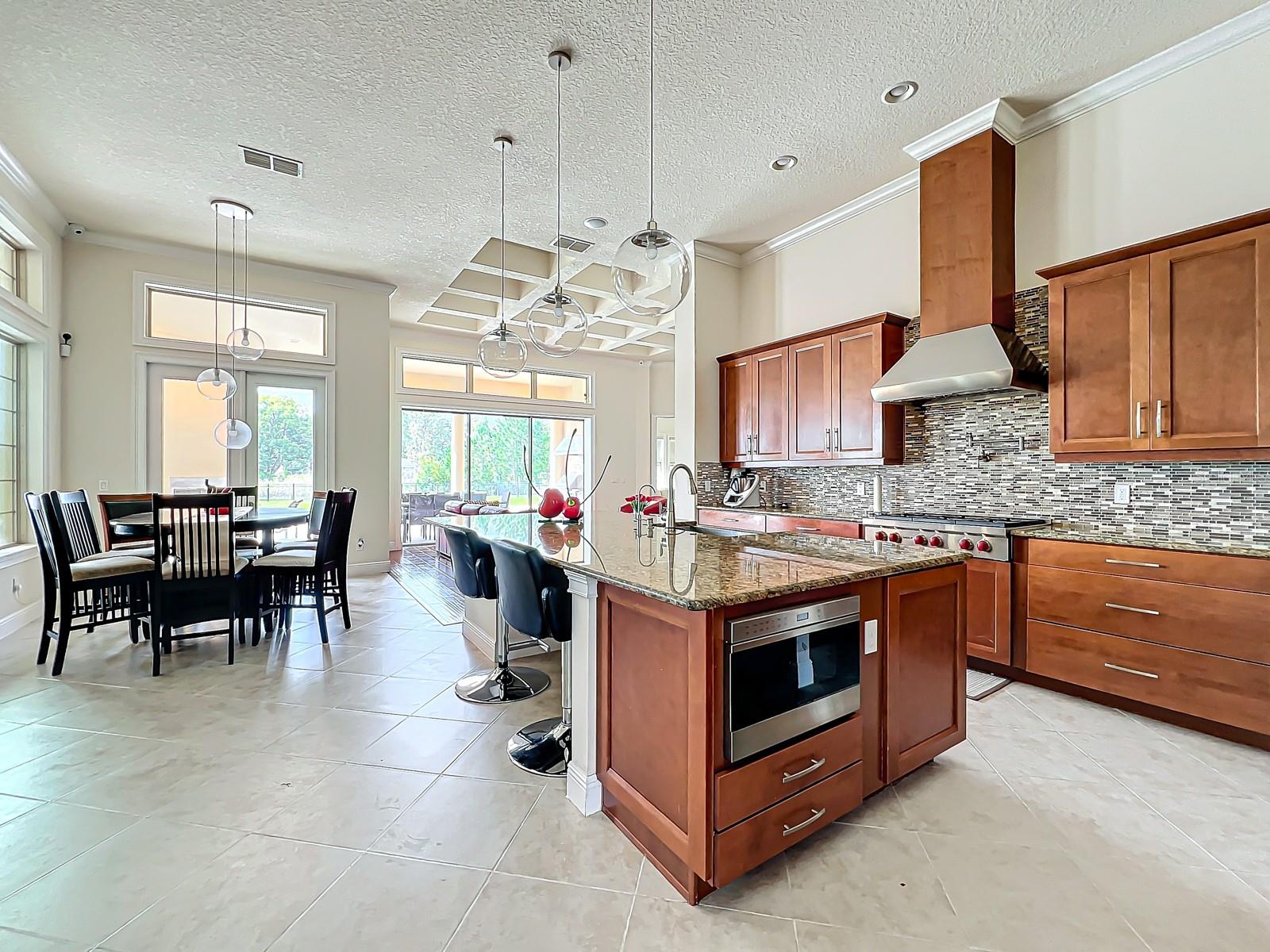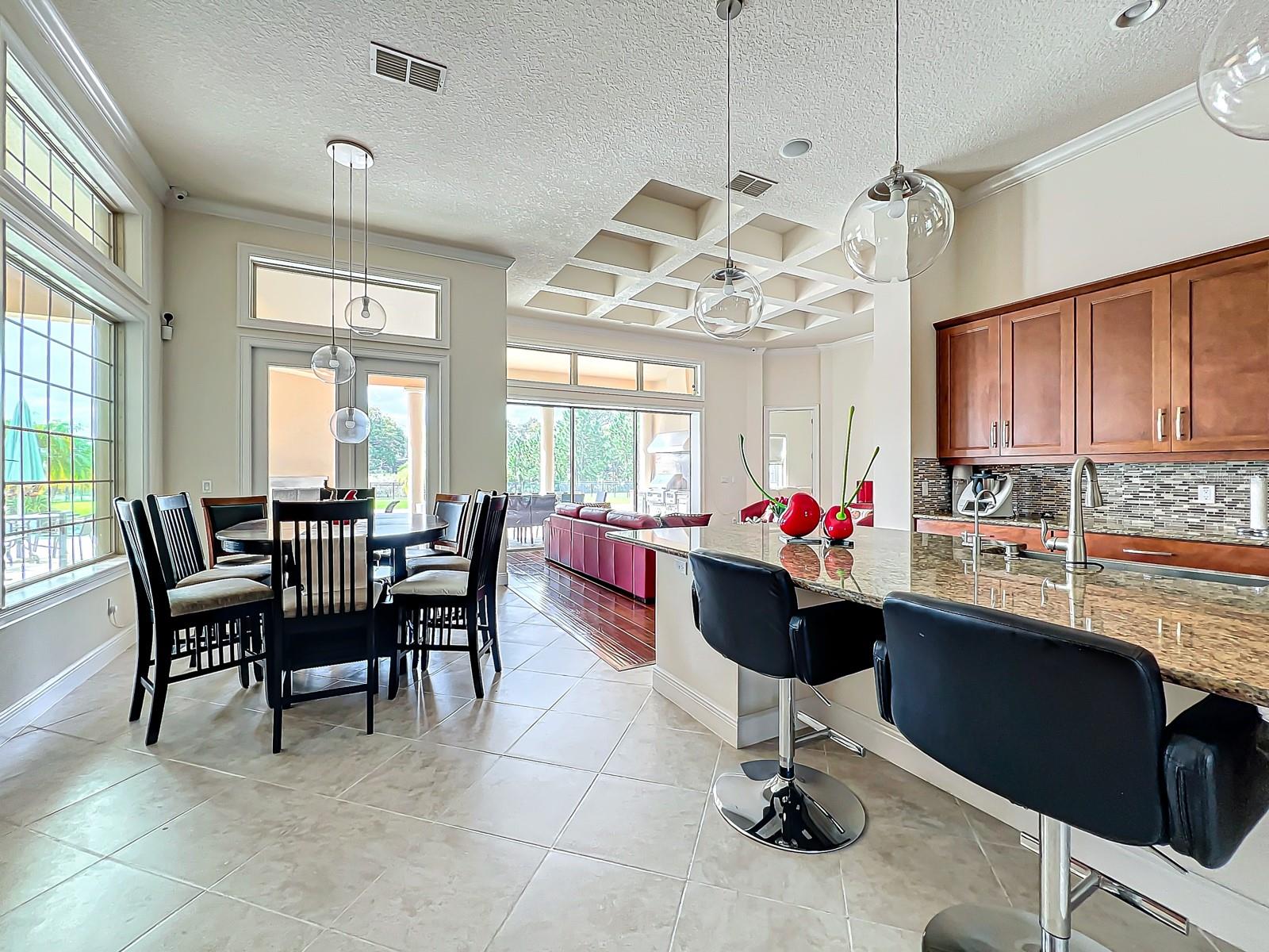 Descubra elegância e sofisticação incomparáveis com este modelo Pesaro de dois andares de tirar o fôlego, graciosamente situado no elegante condomínio fechado de Steeple Chase em Lake Mary, Flórida. Esta extraordinária residência de 5.118 pés quadrados apresenta uma ampla planta aberta que abrange cinco quartos de tamanho generoso e cinco banheiros luxuosos, integrando perfeitamente espaços formais e casuais, incluindo uma sala de estar refinada, área de jantar elegante e um escritório versátil. As possibilidades de entretenimento são infinitas, com uma sala de jogos dedicada e um home theater envolvente, perfeito para realizar encontros inesquecíveis. Ao entrar, você ficará encantado com os tetos altos de 11 pés no hall de entrada e nas áreas de estar, enquanto a sala de jantar formal apresenta um impressionante teto de 16 pés, banhado por luz natural. O coração desta casa é uma espetacular cozinha aberta que flui facilmente para uma espaçosa sala familiar. Os entusiastas da culinária se deleitarão com acabamentos premium, incluindo bancadas de granito requintadas, armários de madeira maciça personalizados, eletrodomésticos Sub-Zero de última geração, um prático enchimento de panelas, um exaustor ventilado e um fogão a gás Wolf - tudo centrado em torno de um ilha enorme que convida a família e amigos para se reunirem. Saia para o seu paraíso privado ao ar livre, completo com uma varanda lindamente coberta, ideal para entretenimento. Desfrute de vistas deslumbrantes da piscina e spa em estilo resort, complementadas por vistas serenas do lago e pela tranquilidade de nenhum vizinho traseiro. Para o chef ao ar livre, uma churrasqueira de última geração com exaustor, pia e geladeira para bebidas aprimora sua experiência de jantar ao ar livre. Esta magnífica casa está idealmente localizada em uma área procurada, conhecida por suas escolas de primeira linha e pela proximidade de clubes de golfe e tênis de classe mundial, restaurantes sofisticados, lojas e instalações de saúde. Com acesso conveniente à I-4, 417 e 429, bem como entrada privada para a Trilha do Condado de Seminole, esta propriedade simboliza luxo e conveniência. Não perca a oportunidade de experimentar o auge da vida sofisticada - agende hoje mesmo sua exibição privada!