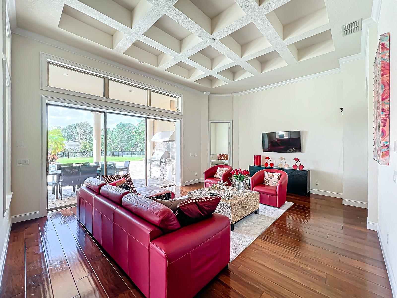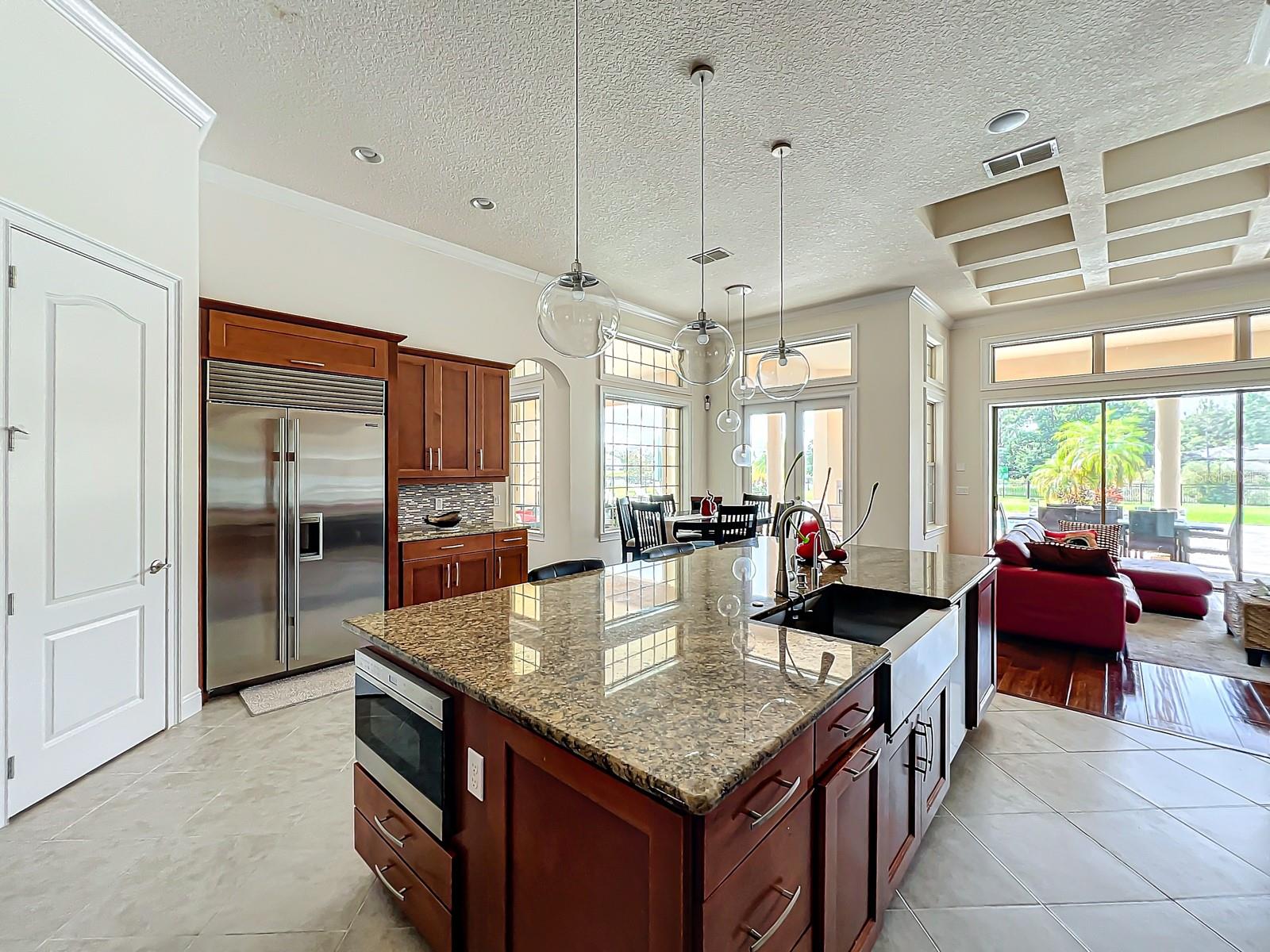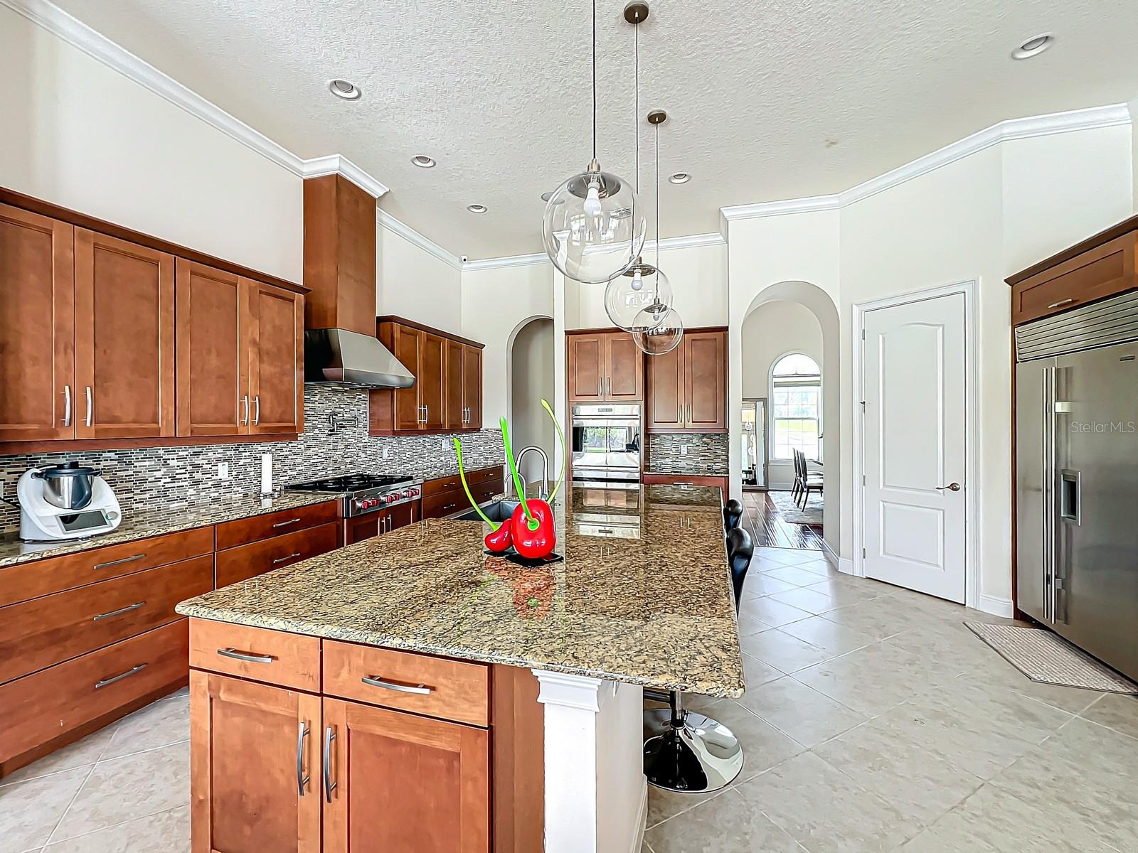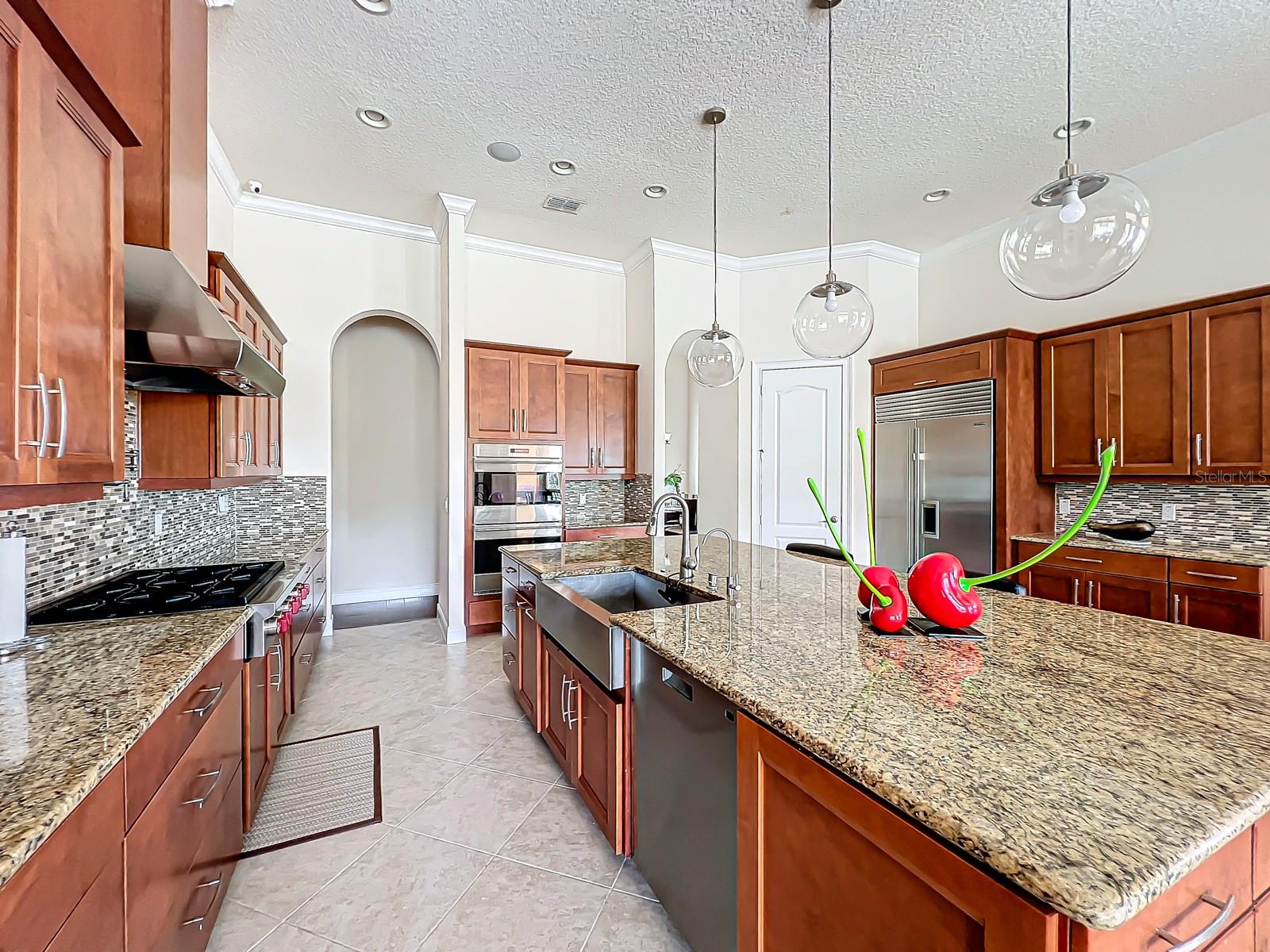 Descubra elegância e sofisticação incomparáveis com este modelo Pesaro de dois andares de tirar o fôlego, graciosamente situado no elegante condomínio fechado de Steeple Chase em Lake Mary, Flórida. Esta extraordinária residência de 5.118 pés quadrados apresenta uma ampla planta aberta que abrange cinco quartos de tamanho generoso e cinco banheiros luxuosos, integrando perfeitamente espaços formais e casuais, incluindo uma sala de estar refinada, área de jantar elegante e um escritório versátil. As possibilidades de entretenimento são infinitas, com uma sala de jogos dedicada e um home theater envolvente, perfeito para realizar encontros inesquecíveis. Ao entrar, você ficará encantado com os tetos altos de 11 pés no hall de entrada e nas áreas de estar, enquanto a sala de jantar formal apresenta um impressionante teto de 16 pés, banhado por luz natural. O coração desta casa é uma espetacular cozinha aberta que flui facilmente para uma espaçosa sala familiar. Os entusiastas da culinária se deleitarão com acabamentos premium, incluindo bancadas de granito requintadas, armários de madeira maciça personalizados, eletrodomésticos Sub-Zero de última geração, um prático enchimento de panelas, um exaustor ventilado e um fogão a gás Wolf - tudo centrado em torno de um ilha enorme que convida a família e amigos para se reunirem. Saia para o seu paraíso privado ao ar livre, completo com uma varanda lindamente coberta, ideal para entretenimento. Desfrute de vistas deslumbrantes da piscina e spa em estilo resort, complementadas por vistas serenas do lago e pela tranquilidade de nenhum vizinho traseiro. Para o chef ao ar livre, uma churrasqueira de última geração com exaustor, pia e geladeira para bebidas aprimora sua experiência de jantar ao ar livre. Esta magnífica casa está idealmente localizada em uma área procurada, conhecida por suas escolas de primeira linha e pela proximidade de clubes de golfe e tênis de classe mundial, restaurantes sofisticados, lojas e instalações de saúde. Com acesso conveniente à I-4, 417 e 429, bem como entrada privada para a Trilha do Condado de Seminole, esta propriedade simboliza luxo e conveniência. Não perca a oportunidade de experimentar o auge da vida sofisticada - agende hoje mesmo sua exibição privada!