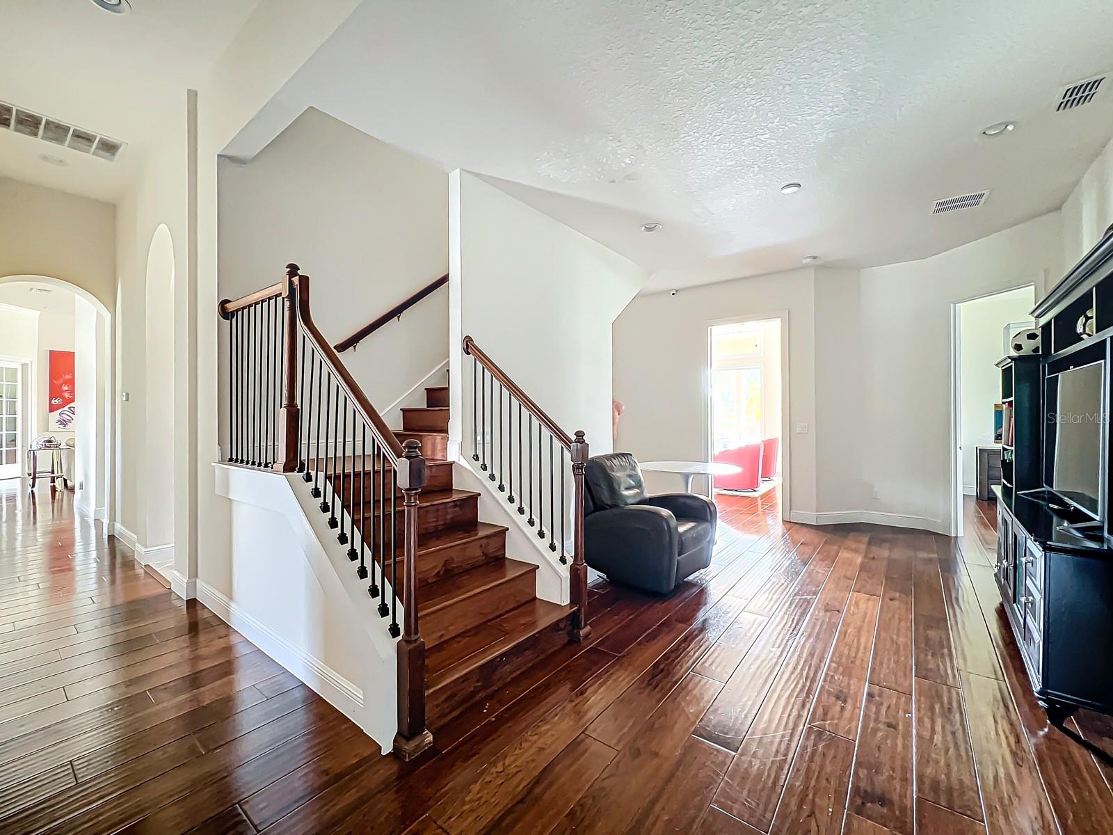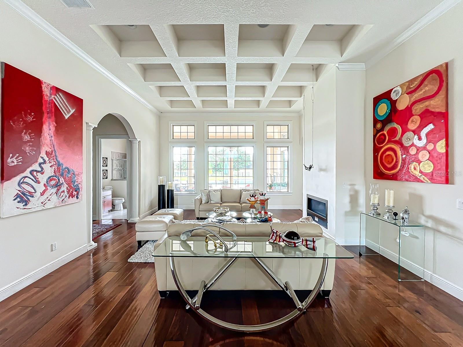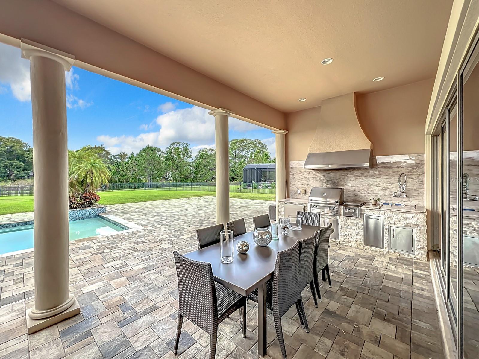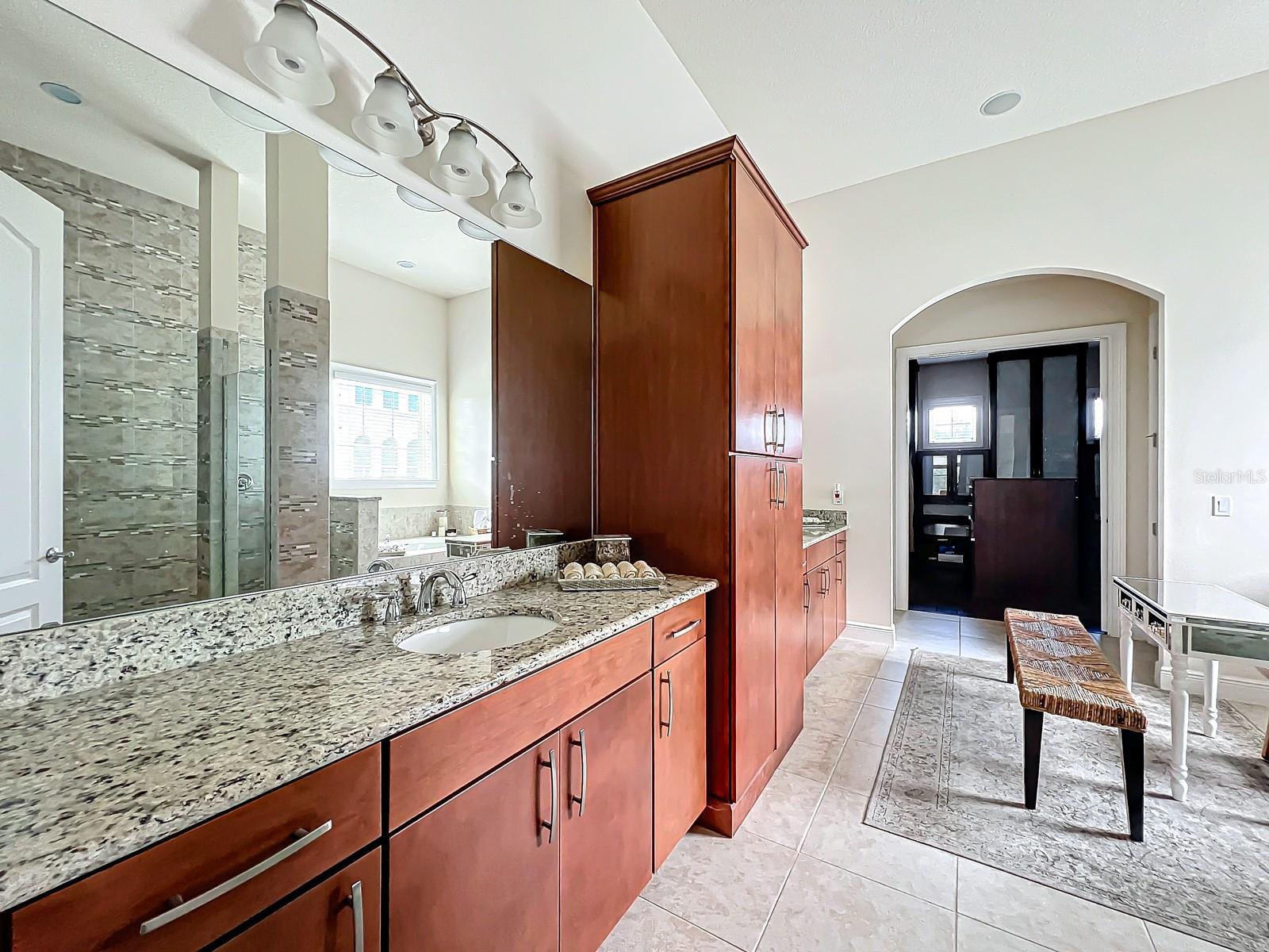 Descubra elegância e sofisticação incomparáveis com este modelo Pesaro de dois andares de tirar o fôlego, graciosamente situado no elegante condomínio fechado de Steeple Chase em Lake Mary, Flórida. Esta extraordinária residência de 5.118 pés quadrados apresenta uma ampla planta aberta que abrange cinco quartos de tamanho generoso e cinco banheiros luxuosos, integrando perfeitamente espaços formais e casuais, incluindo uma sala de estar refinada, área de jantar elegante e um escritório versátil. As possibilidades de entretenimento são infinitas, com uma sala de jogos dedicada e um home theater envolvente, perfeito para realizar encontros inesquecíveis. Ao entrar, você ficará encantado com os tetos altos de 11 pés no hall de entrada e nas áreas de estar, enquanto a sala de jantar formal apresenta um impressionante teto de 16 pés, banhado por luz natural. O coração desta casa é uma espetacular cozinha aberta que flui facilmente para uma espaçosa sala familiar. Os entusiastas da culinária se deleitarão com acabamentos premium, incluindo bancadas de granito requintadas, armários de madeira maciça personalizados, eletrodomésticos Sub-Zero de última geração, um prático enchimento de panelas, um exaustor ventilado e um fogão a gás Wolf - tudo centrado em torno de um ilha enorme que convida a família e amigos para se reunirem. Saia para o seu paraíso privado ao ar livre, completo com uma varanda lindamente coberta, ideal para entretenimento. Desfrute de vistas deslumbrantes da piscina e spa em estilo resort, complementadas por vistas serenas do lago e pela tranquilidade de nenhum vizinho traseiro. Para o chef ao ar livre, uma churrasqueira de última geração com exaustor, pia e geladeira para bebidas aprimora sua experiência de jantar ao ar livre. Esta magnífica casa está idealmente localizada em uma área procurada, conhecida por suas escolas de primeira linha e pela proximidade de clubes de golfe e tênis de classe mundial, restaurantes sofisticados, lojas e instalações de saúde. Com acesso conveniente à I-4, 417 e 429, bem como entrada privada para a Trilha do Condado de Seminole, esta propriedade simboliza luxo e conveniência. Não perca a oportunidade de experimentar o auge da vida sofisticada - agende hoje mesmo sua exibição privada!