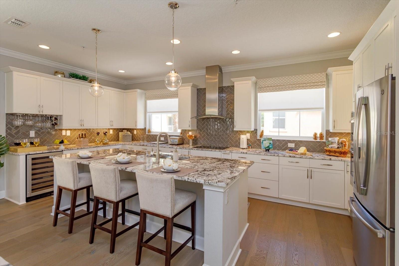 Esta impressionante unidade final, ex-modelo Model Townhome no condomínio fechado de Grande Oaks em Heathrow, é totalmente mobiliado com decoração de designer personalizada-todos incluídos! A planta “magnólia” procurada oferece 3 quartos, 3,5 banheiros, além de um deno/escritório versátil facilmente conversível para um quarto quarto. O primeiro nível possui um pátio privado de pavimentador, banho completo com chuveiro de azulejos do chão ao teto e elegante piso de madeira de madeira de cerâmica. No andar de cima, os pisos de madeira ricos levam você à cozinha de um chef, equipada com uma fogão de indução, geladeira de vinho, forno embutido, armários de agitadores brancos, bancadas de granito e uma enorme ilha perfeita para entretenimento. A cozinha flui perfeitamente para uma espaçosa área de estar e jantar e abre para uma grande varanda com piscina serena e vista para o lago. O terceiro andar mostra a luxuosa suíte do proprietário com um teto de bandeja, varanda privada, armário digno de sonho e banheiro parecido com um spa com vaidades duplas, balcões de granito e um chuveiro lindamente azulejo. Dois quartos adicionais, um segundo banheiro completo e um armário de lavanderia com armários embutidos completam o último andar. Desfrute de comodidades comunitárias como um clube, piscina em estilo resort, fitness center, parque tot e cabo básico-todos incluídos no HOA. Localizado a poucos minutos da I-4, 417 e 429, e a uma curta caminhada de jantar, compras e entretenimento no Colonial Town Park. A praia fica a apenas 45 minutos! As atualizações adicionais incluem moldagem por coroa, iluminação embutida, grades de ferro forjado, luminárias e ventiladores atualizados, sistema de vácuo central e uma garagem de dois carros com acabamento epóxi. Esta é uma propriedade excepcional em uma das áreas mais desejáveis do Condado de Seminole - não deixe escapar!